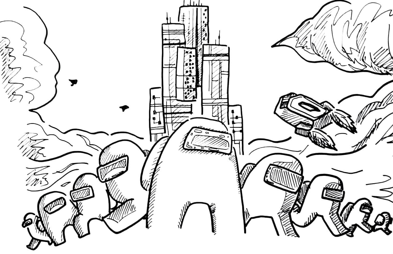 На нашем сайте Вы совершенно бесплатно можете скачать и распечатать раскраску Амонг Ас в хорошем качестве. Амонг Ас это великолепная ролевая игра, где множество игроков со всего мира могут схлестнуться в смертельной схватке на борту космического корабля. Астронавты и предатели, поделенные случайным образом на две команды, будут сражаться за захват транспорта, состязаясь в головоломках. В процессе раскрашивания улучается мозговая деятельность ребенка и развивается моторика рук.