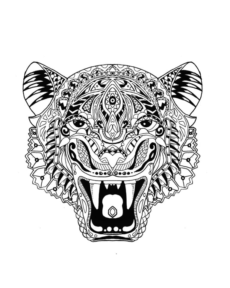 Тигр (Panthera tigris), самый крупный представитель семейства кошачьих (Felidae), соперничал только со Львом (Panthera leo) по силе и свирепости. Тигр находится под угрозой исчезновения на всем своем ареале, который простирается от российского Дальнего Востока через части Северной Кореи, Китая, Индии и Юго-Восточной Азии до индонезийского острова Суматра. Индийский, или Бенгальский, тигр (П. тигр tigris) является самым многочисленным и составляет около половины всей популяции тигра. Самцы крупнее самок и могут достигать высоты плеч около 1 метра и длины около 2,2 метра, исключая хвост около 1 метра; вес составляет 160-230 кг (350-500 фунтов), а тигры с юга меньше, чем тигры с севера. На этой странице Вы можете бесплатно скачать и распечатать раскраску тигр антистресс.