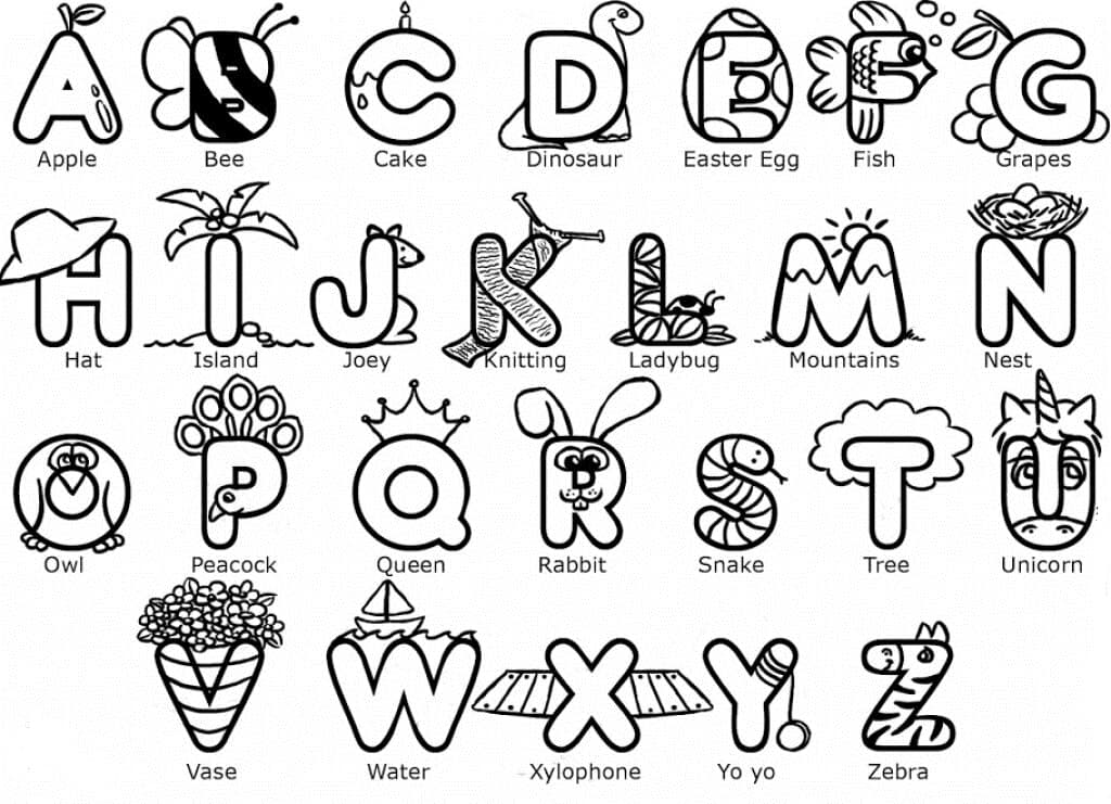 Английский алфавит состоит из двадцати шести букв, которые находятся на этой странице. При помощи раскраски ребенок без труда, в форме игры сможет выучить буквы английского алфавита и почувствует себя настоящим художником. Тут собраны обычные буквы, с узорами и картинками, различных форм и с мультяшными персонажами. На нашем сайте Вы совершенно бесплатно можете скачать и распечатать раскраску английского алфавита в хорошем качестве. С её помощью можно оформить баннер или стенд, а так же создать аппликацию.