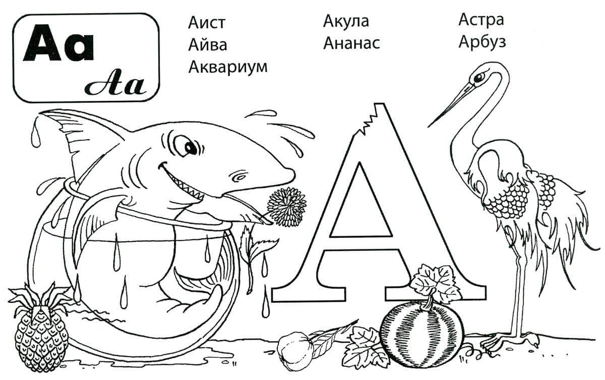 Буква А расположилась на первом месте в русском алфавите. С неё начинаются такие популярные слова, как: акула, аист, аквариум, ангел и многие другие. При помощи раскраски ребенок с легкостью может запомнить, как выглядит буква А и почувствует себя настоящим художником. Наиболее скачиваемые изображения этой категории: большая зубастая акула, аист стоящий на одной лапе в воде, аквариум с рыбками, астроном с большой подзорной трубой и арбуз. На нашем сайте Вы совершенно бесплатно можете скачать и распечатать раскраску буквы А в хорошем качестве.