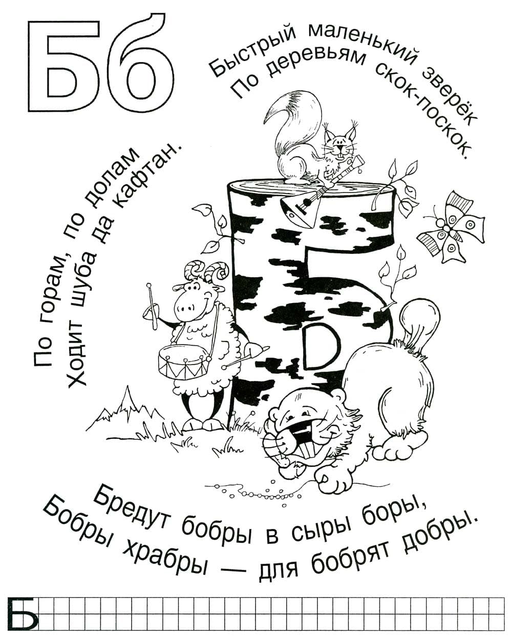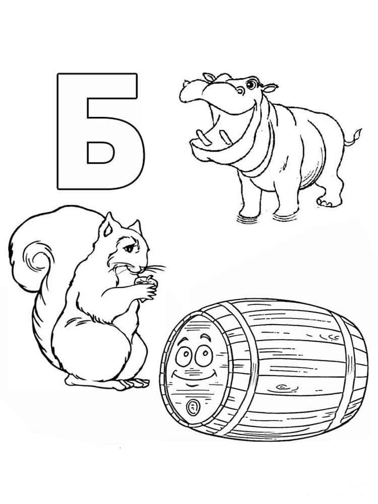 Буква Б занимает второе место, среди всех букв русского алфавита, перед ней стоит только одна буква А. С неё начинаются такие популярные слова как: баран, бегемот, богатырь, бабочка, белка и другие. При помощи раскраски ребенок сможет с легкостью запомнить как выглядит буква Б, а так же весело проведет время. Наиболее скачиваемые картинки этой рубрики: баба яга в ступе, большой богатырь с мечом, маленькая белочка, мальчик играет в баскетбол, бегемот с бабочками и большой бык с барабаном. На нашем сайте Вы совершенно бесплатно можете скачать и распечатать раскраску буквы Б в хорошем качестве.
