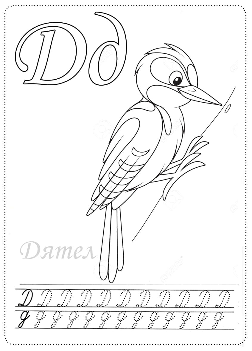 Буква Д занимает пятое место среди всех букв русского алфавита. С неё начинаются следующие всем известные слова: дерево, дом, деревня, дровосек, двор, дача и многие другие. С помощью раскраски ребенок сможет без труда запомнить, как выглядит буква Д, а так же рисование положительно влияет на развитие мозга ребенка. Самыми популярными картинками данного раздела являются: дятел в шляпе сиди на дереве с узорами, красивый дельфин, кирпичный домик с окном и динозавр с рогами. На нашем сайте Вы совершенно бесплатно можете скачать и распечатать раскраску буквы Д в хорошем качестве.