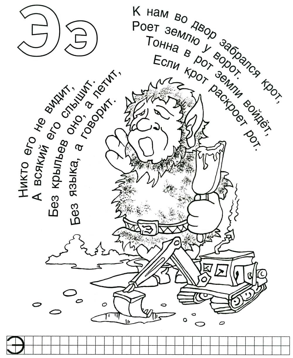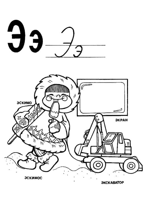 Буква Э в русском алфавите является тридцать первой по счету, после неё стоят только две буквы Ю и Я. На букву Э начинаются многие красивые имена: Эдуард, Эмма, Эвелина, Эльвира, Эльдар и другие. При помощи раскраски ребенок с легкостью сможет выучить букву и запомнить её визуально. Наиболее скачиваемые картинки из данного раздела: красивый экскаватор, маленький эльф, большой страус Эму и раскраска со словом "Электричество". На нашем сайте Вы совершенно бесплатно можете скачать и распечатать раскраску буквы Э.