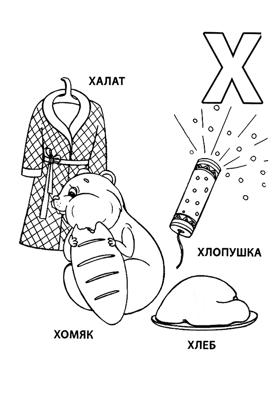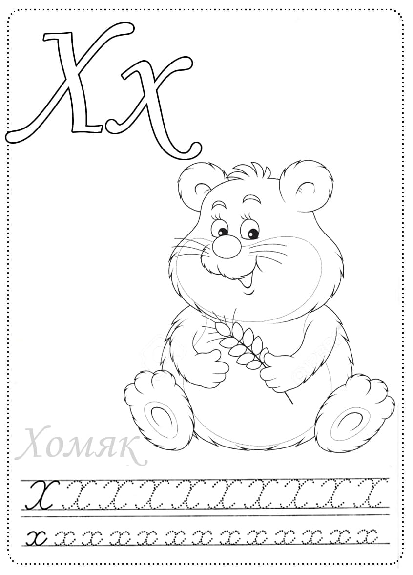 Буква Х - по счету занимает двадцать третье место в русском алфавите. С буквы Х начинаются многие, всем известные слова, такие как: хлеб, холод, халва, хомяк, хрен и многие другие. Раскрашивая эту букву, Ваш ребенок без труда запомнит как она выглядит, а сам процесс рисования оказывает положительный эффект на развитие мозга. Самые скачиваемые изображения данной рубрики: маленький хомячок с бантиком на голове, старик Хоттабыч с большими усами и в шикарном халате, а так же хрюшка в луже. На нашем сайте Вы абсолютно бесплатно можете скачать и распечатать раскраску буквы Х в хорошем качестве.
