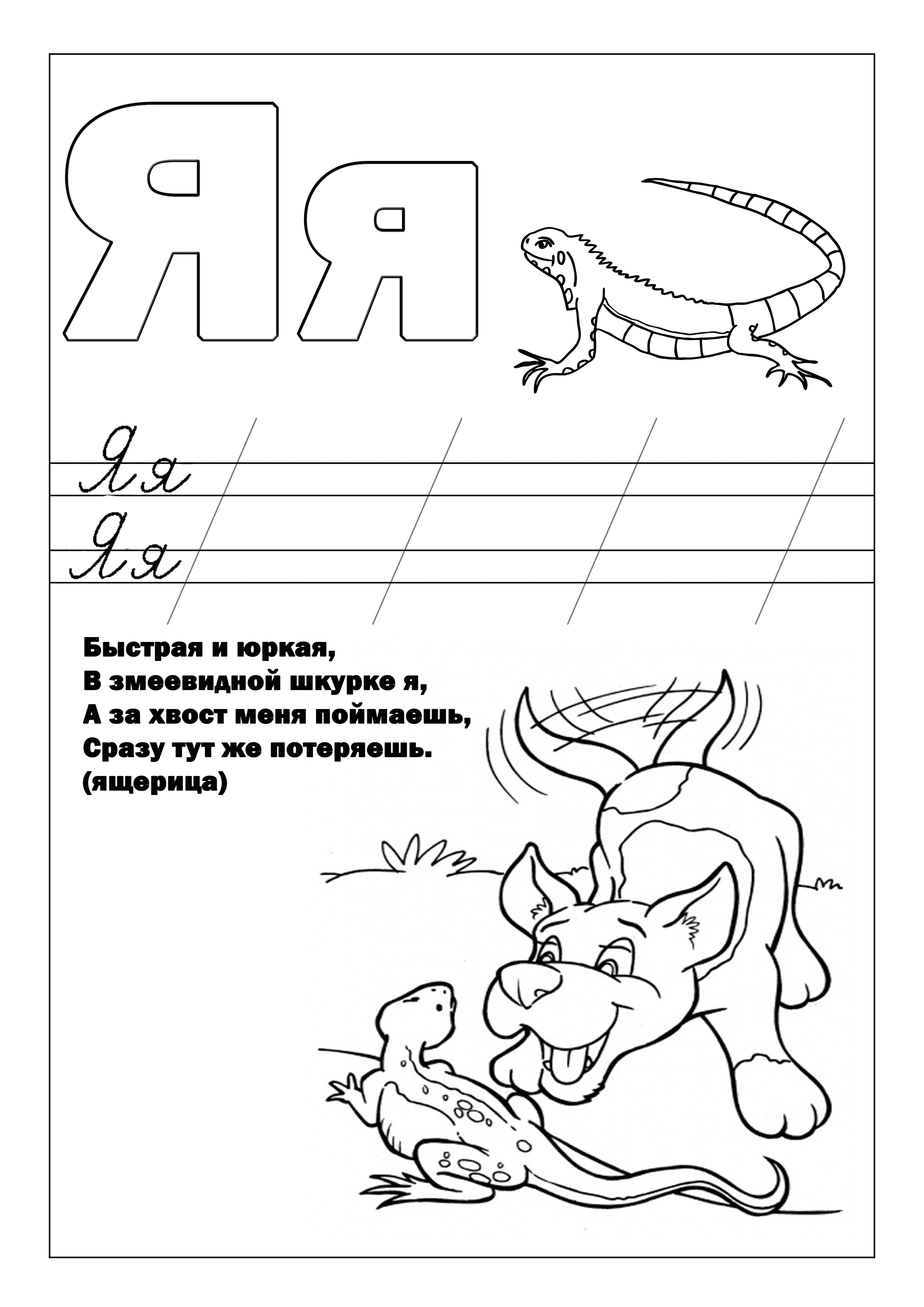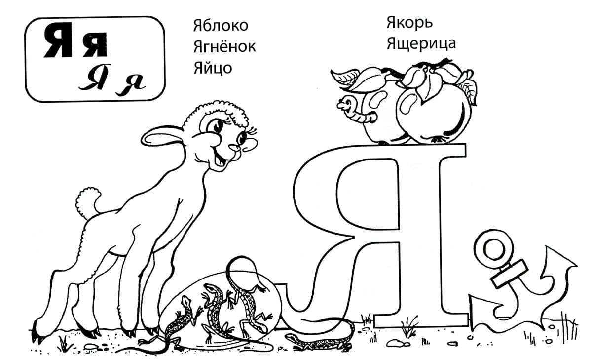Буква Я - это последняя буква русского алфавита. На букву Я начинаются такие слова, как: яблоко, ягода, страна Япония, город Ялта, солнечная Ямайка и многое другое. При помощи раскраски ребенок сможет с легкостью запомнить последнюю букву алфавита и почувствовать себя настоящим художником. На этой странице мы собрали раскраски, название которых содержит в себе букву Я, это красивый маленький ягуар, большой хищный ястреб, милый ягненок и ящерицу. На нашем сайте Вы совершенно бесплатно можете скачать и распечатать раскраску буквы Я в хорошем качестве.