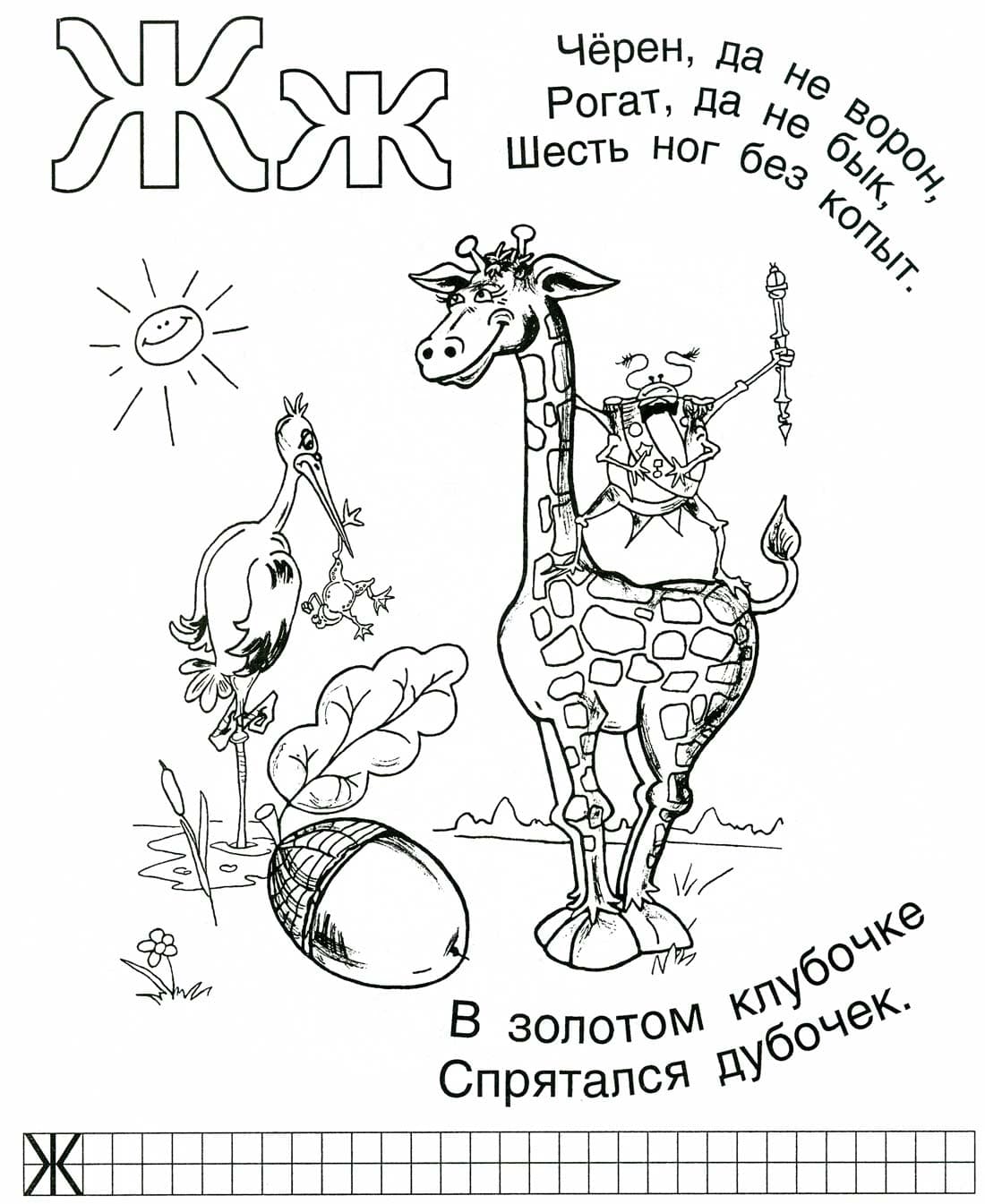 Буква Ж занимает восьмое место в русском алфавите. На эту букву начинаются многие популярные слова, например: жираф, живот, жук, жаба, жаркое и многие другие. При помощи раскраски ребенок без труда сможет запомнить как выглядит буква Ж и почувствует себя настоящим художником. Наиболее скачиваемыми изображениями данной рубрики являются: большой пятнистый жираф, маленький красивый жук и желуди с листьями. На нашем сайте Вы совершенно бесплатно можете скачать и распечатать раскраску буквы Ж в хорошем качестве.