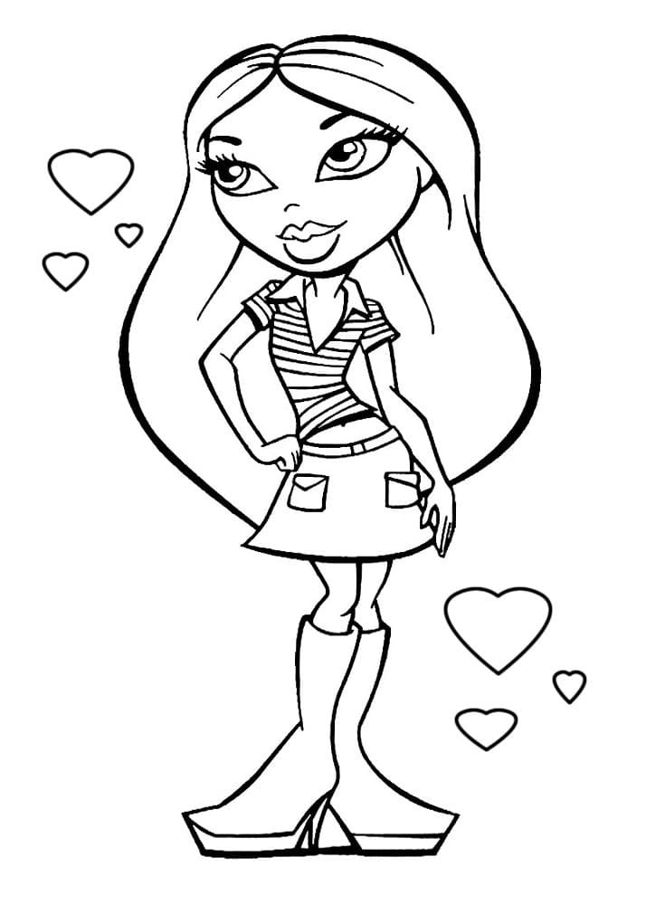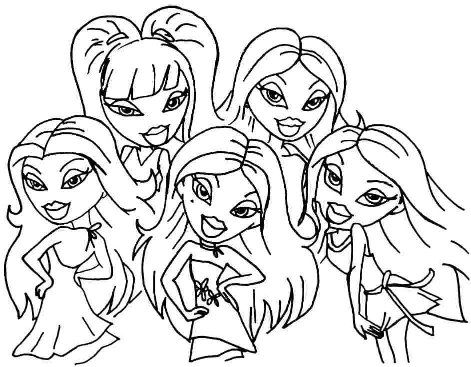На нашем сайте Вы можете скачать и распечатать раскраску Братц в хорошем качестве, абсолютно бесплатно. Лучшие подружки Хлоя, Саша, Жасмин и Джейд не умеют скучать, они постоянно попадают в интересные истории. Девочки любят петь, отлично разбираются в моде и не дают спуску тем, кто ведет себя грубо по отношению к окружающим. В момент раскрашивания улучшается мозговая деятельность ребенка и развивается моторика рук.