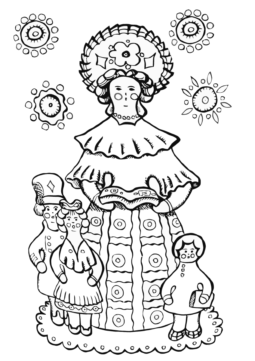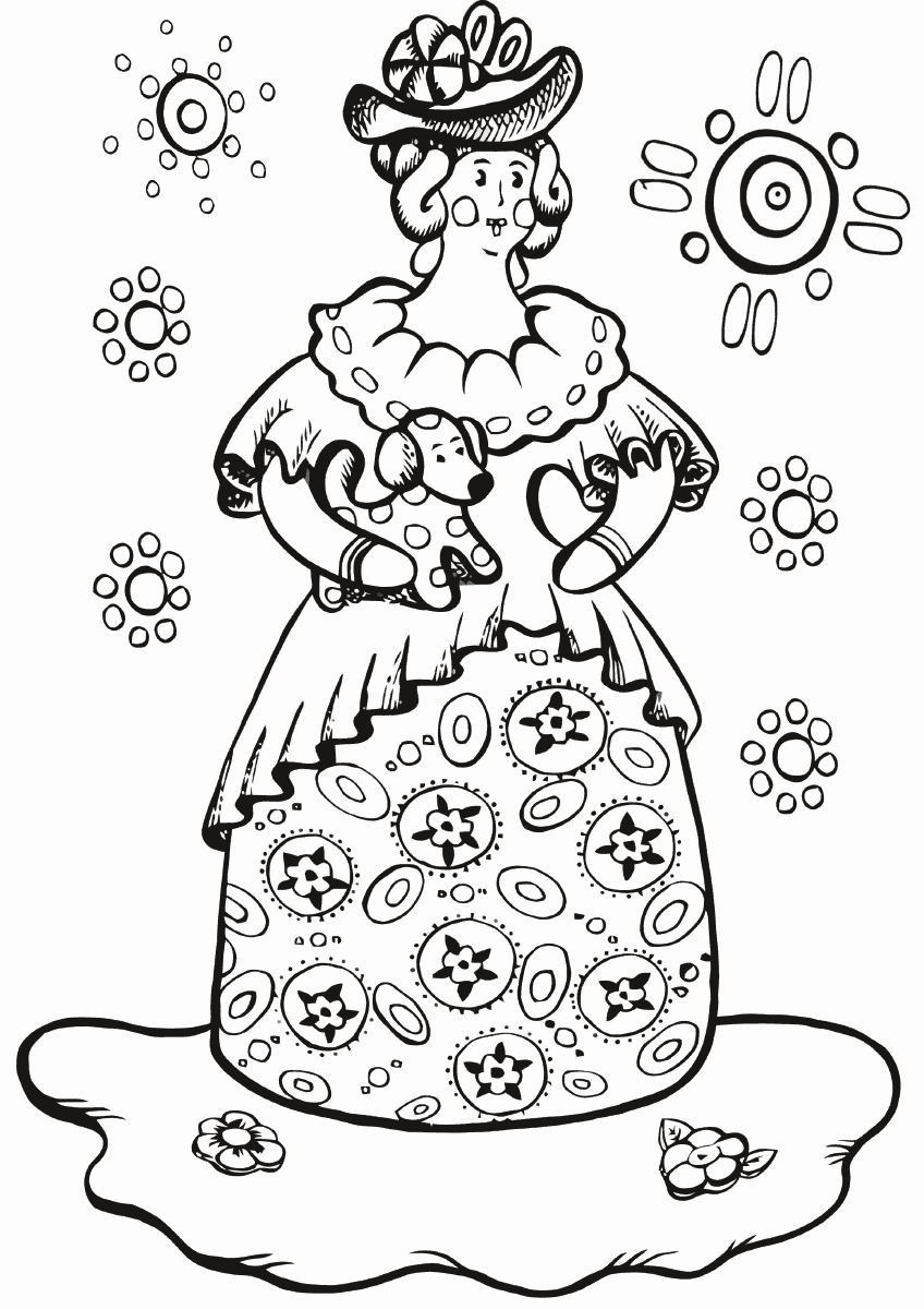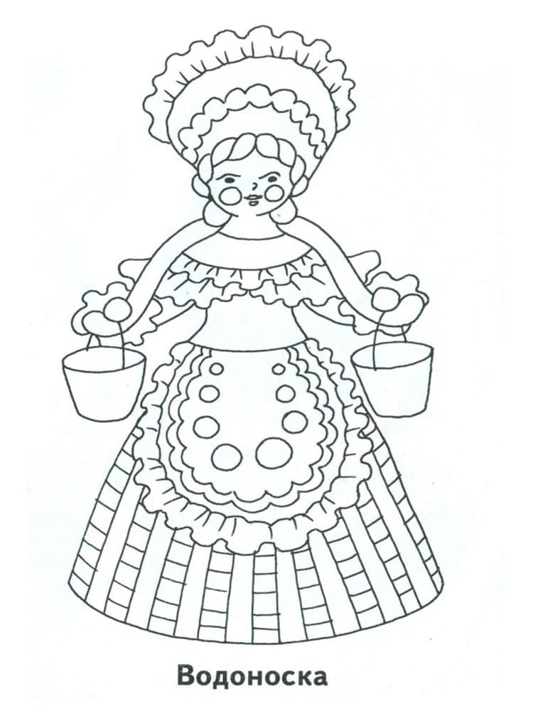 Любую раскраску можно распечатать бесплатно "Раскраска Дымковская барышня". Категория: