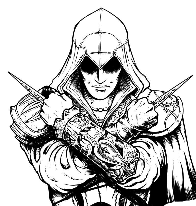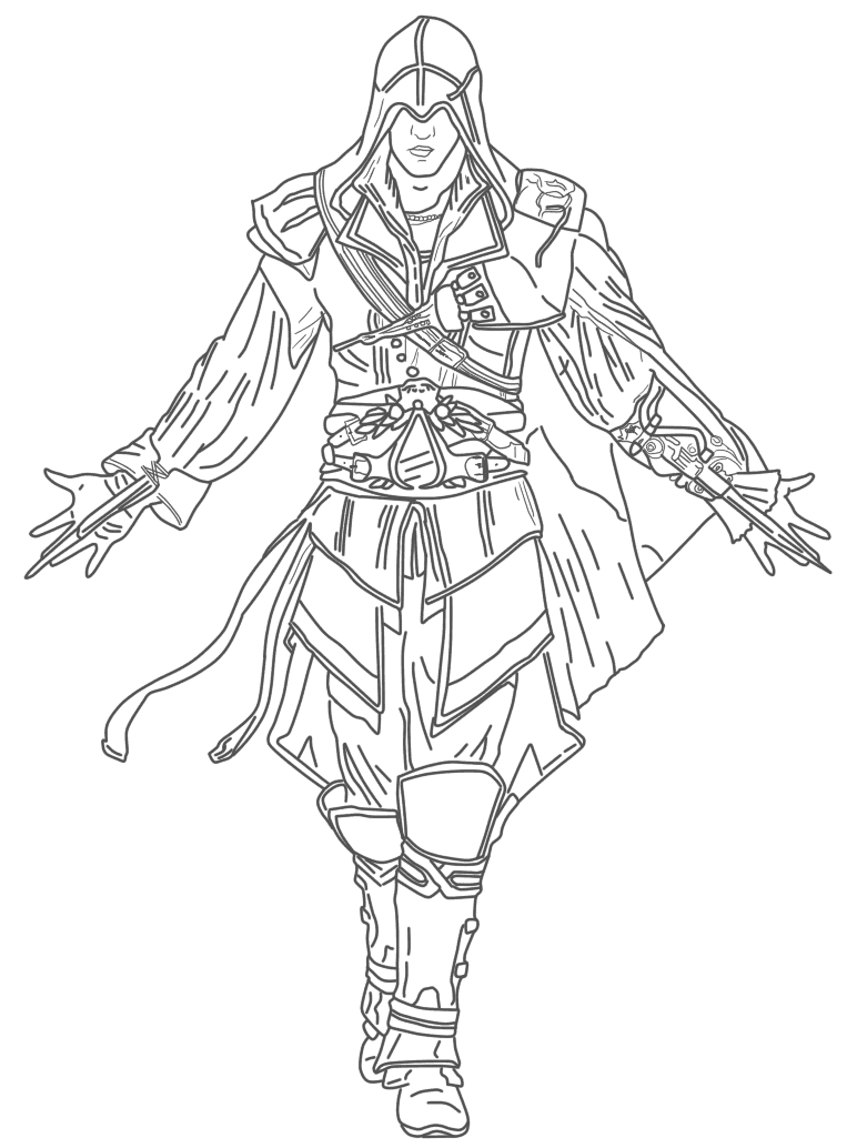 На нашем сайте Вы абсолютно бесплатно можете скачать и распечатать раскраску Ассасин в хорошем качестве. Ассасинами называют наёмных убийц с Ближнего Востока. Согласно с мифами и легендами, это тайная секта, укрытая глубоко в горах. Для них нет границ или невозможных задач, а по сказаньям их жертвами становились даже первые люди государства. На самом деле такое общество существовало, но они больше были заинтересованы искусством войны, а убийства за деньги их мало интересовали. В процессе раскрашивания улучшается мозговая деятельность и развивается моторика рук.
