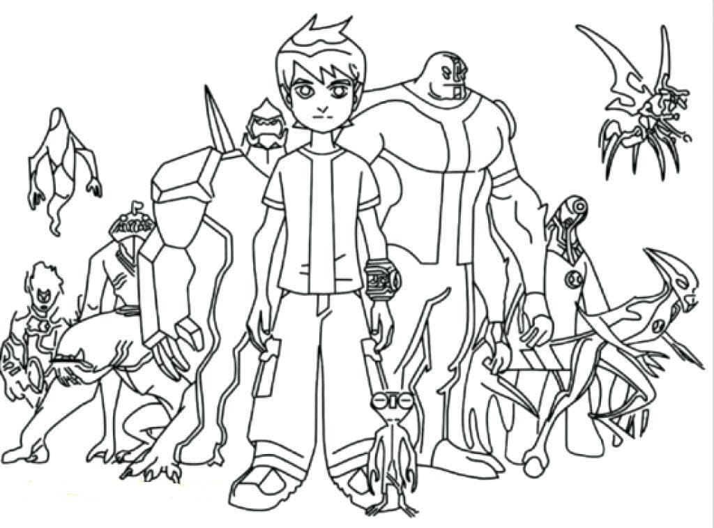 На нашем сайте Вы совершенно бесплатно можете скачать и распечатать раскраску Бен Тен в хорошем качестве. Бен Тен это известный мультипликационный сериал про приключения подростков в фантастических мирах и борьбе с инопланетными пришельцами. Первые серии стали появляться в далёком 2005 году, но изготовление продолжается до сих пор. Также создатели анонсировали несколько сезонов, наполненных новыми событиями и возможный выпуск полнометражного фильма. В момент раскрашивания развивается моторика рук и улучшается мозговая деятельность ребенка.