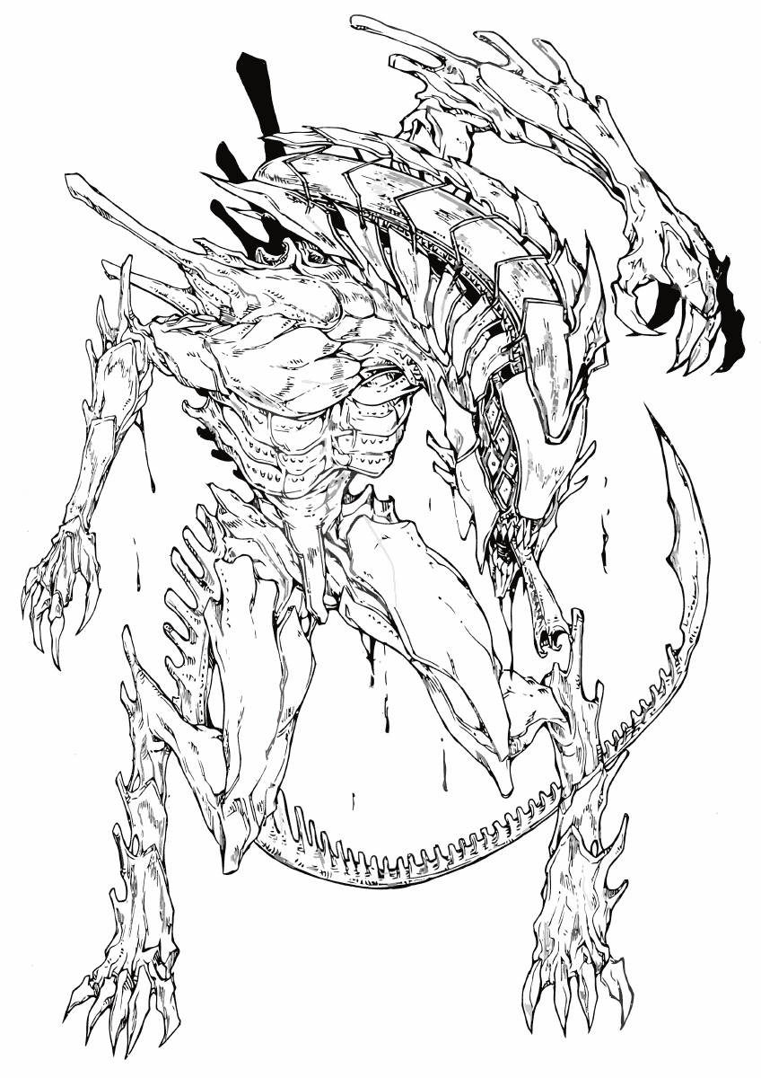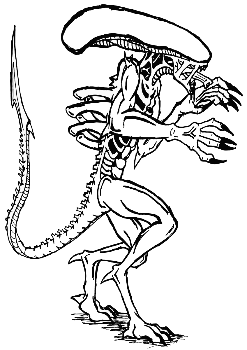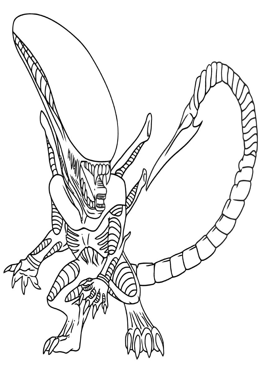 На нашем сайте Вы совершенно бесплатно можете скачать и распечатать раскраску Чужой в хорошем качестве. Чужой это страшный инопланетный организм, так называемый ксеноморф. Он имеет кислоту вместо крови, быстр, хитёр, легко прячется в тенях и убивает своих жертв. Эти существа имеют организацию, подобную земным муравьям, хотя обладают разумом. Они имеют королеву, солдат и рабочих особей, между которыми обязанности распределяются очень чётко. В момент раскрашивания улучшается мозговая деятельность ребенка и развивается моторика рук.