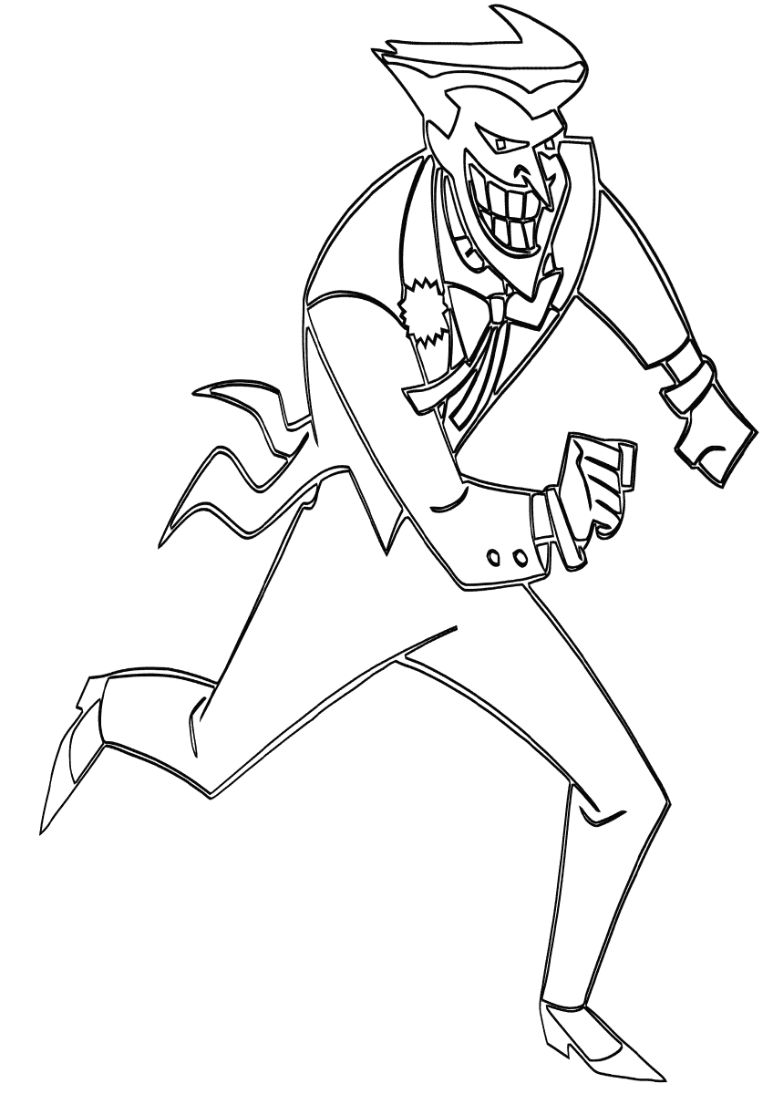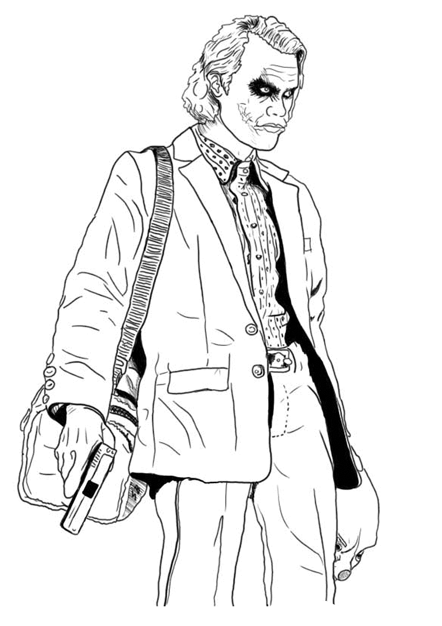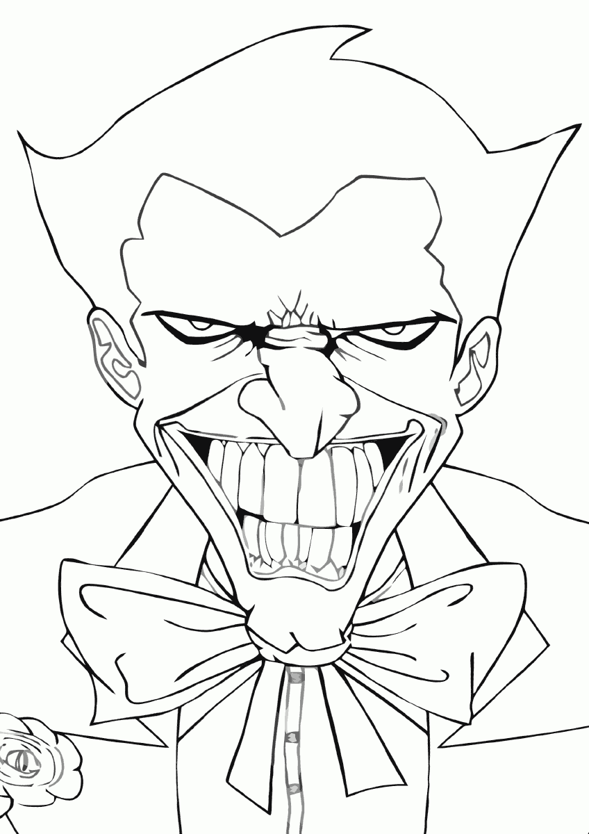 На нашем сайте Вы совершенно бесплатно можете скачать и распечатать раскраску Джокер в хорошем качестве. Джокер это один из главных злодеев американских комиксов, вечный противник Бэтмена. На самом деле он хитрый и изощренный преступник, пользующийся силами большой команды единомышленников и техническими средствами. Он хочет захватить господство над городом Готэм, попутно борясь с другими боссами мафии. Он изображается как безумец и мудрец одновременно, носит странный макияж и большие шрамы на щеках. В процессе раскрашивания развивается моторика рук и улучшается мозговая деятельность ребенка.