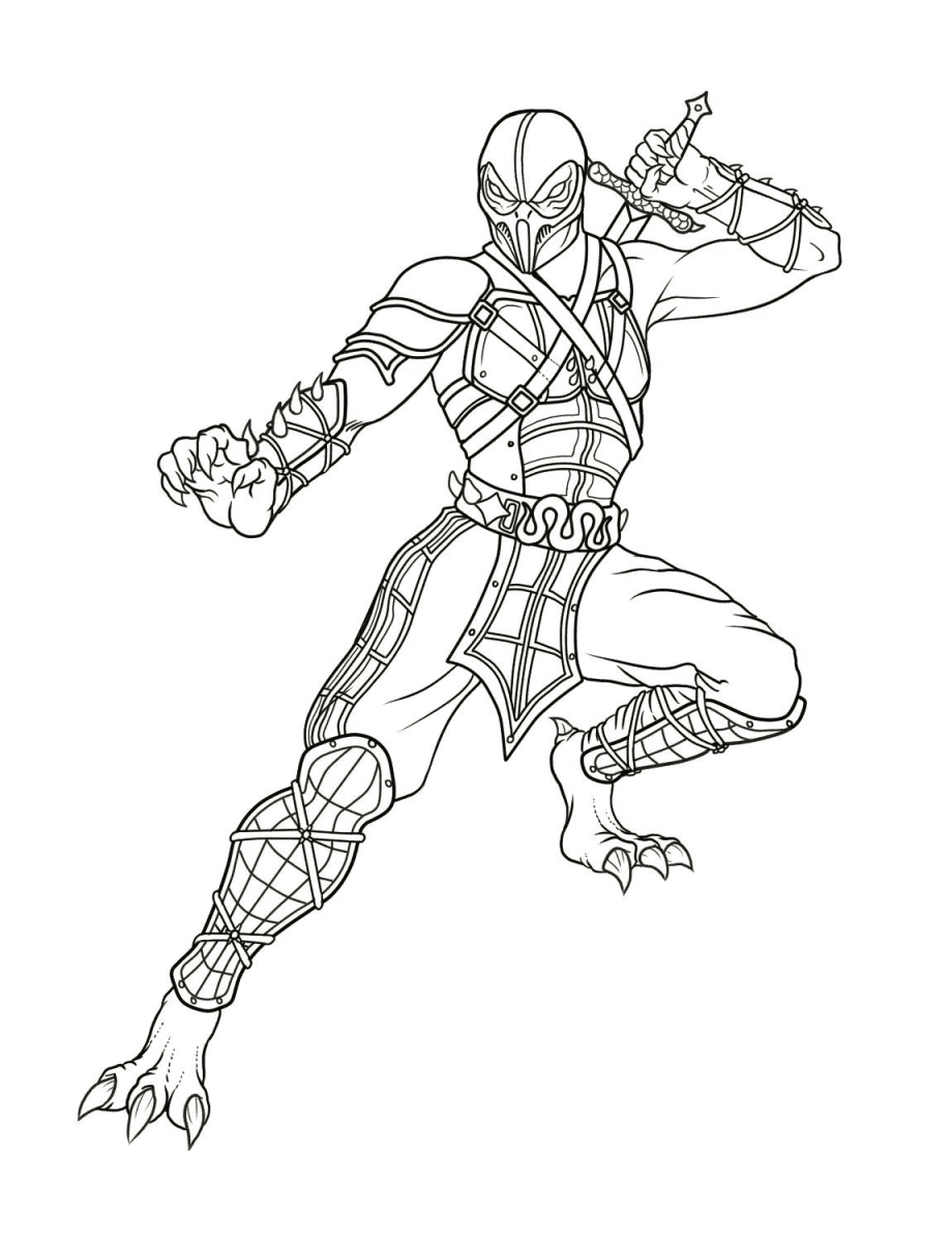 На нашем сайте Вы совершенно бесплатно можете скачать и распечатать раскраску Мортал Комбат в хорошем качестве. Мортал Комбат это смертельная битва, поединок между лучшими бойцами из разных миров. Они часто используют различные сверхъестественные способности и приёмы классических боевых искусств. Этот сюжет стал настолько захватывающим, что он лёг в основу серии игр в жанре файтинг. Также по мотивам был снят фильм в 1980-хх годах, пользующийся большой популярностью. В момент раскрашивания развивается моторика рук и улучшается мозговая деятельность ребенка.