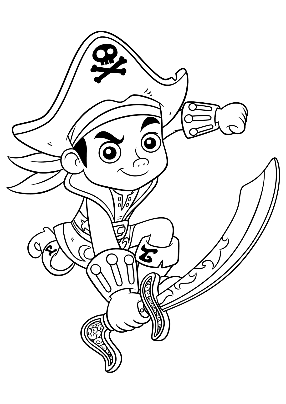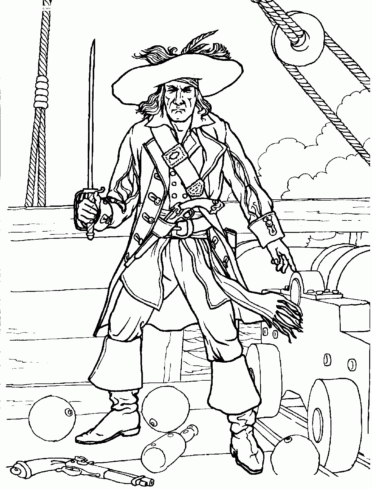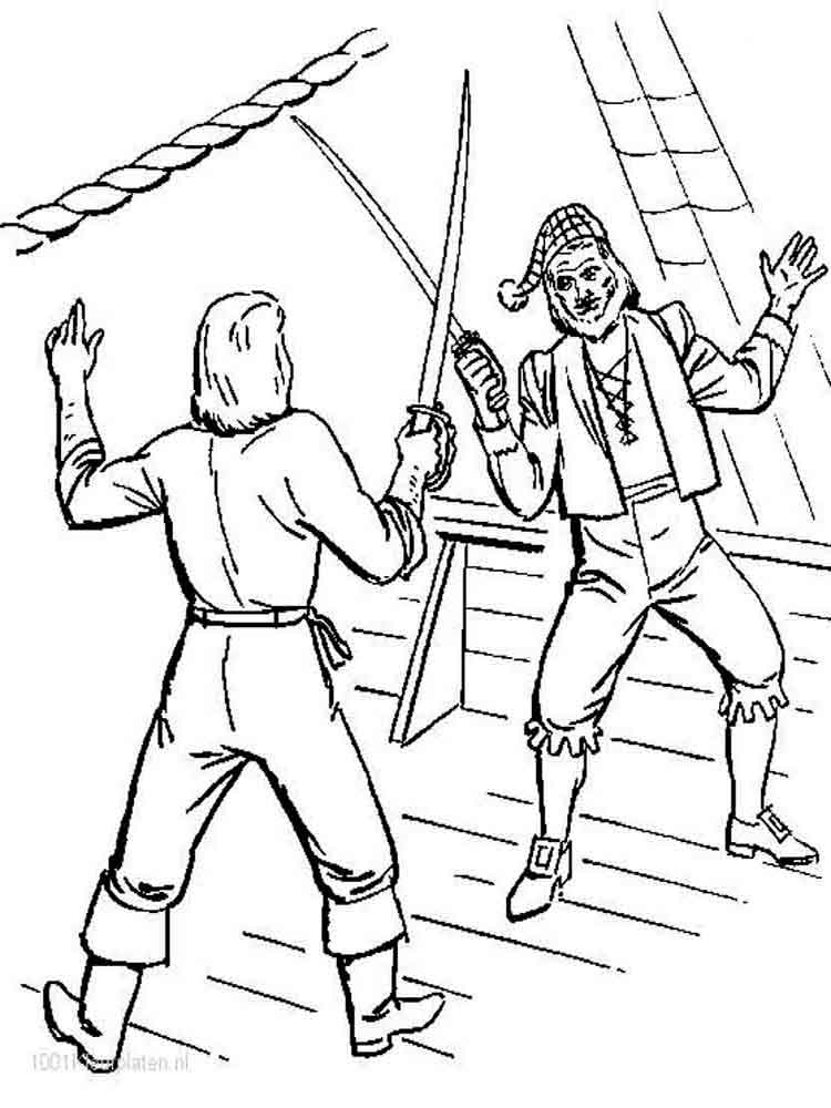 Пираты-это преступники, которые нападают на корабли в море. Самые знаменитые пираты бороздили моря с конца 1500—х до начала 1800-х гг. общим символом пиратства был веселый Роджер-черный флаг с белым черепом и скрещенными костями. Представление, которое люди имеют о пиратах, пришло из книг и фильмов. Они рассказывают о жизни, полной приключений и зарытых сокровищ. Эти истории-смесь фактов и вымысла. Например, есть много красочных историй о персонажах по имени капитан Кидд и Черная Борода. Истории в основном выдуманы, но герои были настоящими людьми, и они были пиратами. На нашем сайте Вы совершенно бесплатно можете скачать и распечатать раскраску пират в хорошем качестве.