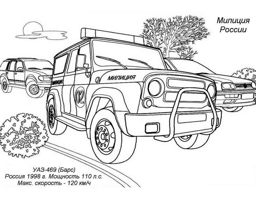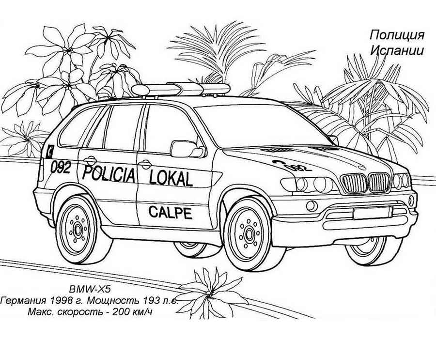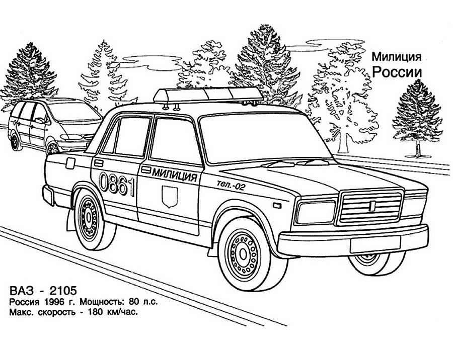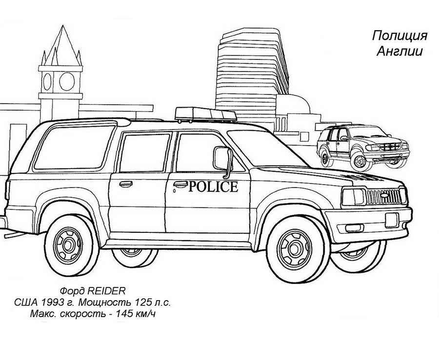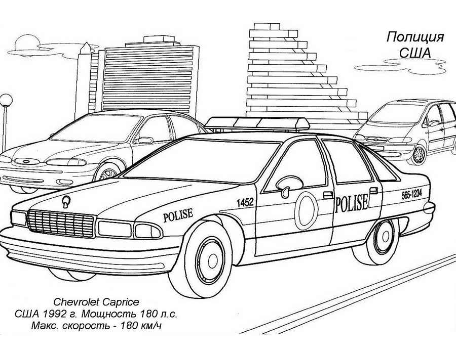 Любую раскраску можно распечатать бесплатно "Раскраска Полицейская машина". Категория: