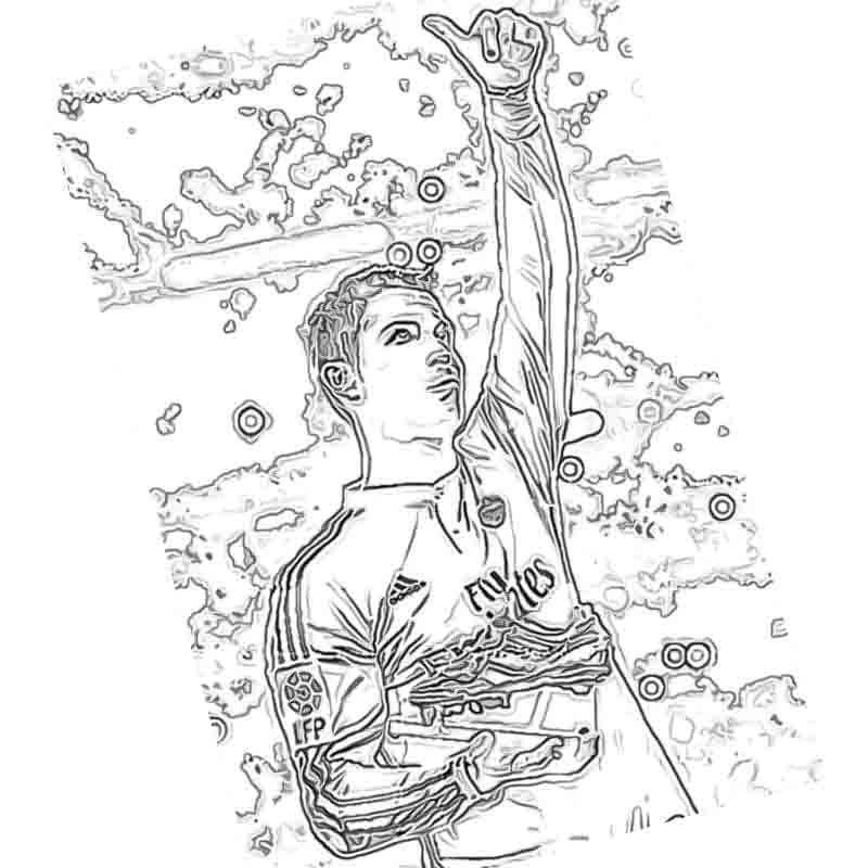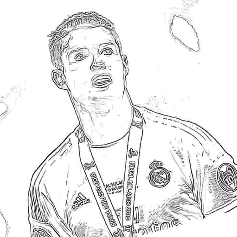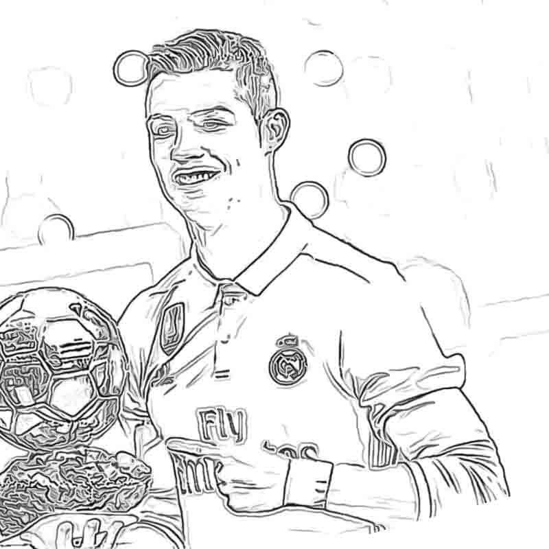 На нашем сайте Вы совершенно бесплатно можете скачать и распечатать раскраску Криштиану Роналду в хорошем качестве. Криштиану Роналду это знаменитый португальский футболист, обладающий одной из лучших техник владения мячом в мире. Он может выжать гол из ситуации, где даже эксперты не видят опасности для ворот противника. Помимо своих способностей, он обладает красивой внешностью и высоким ростом, поэтому его часто приглашают в качестве модели для рекламы. В процессе раскрашивания развивается моторика рук и улучшается мозговая деятельность ребенка.