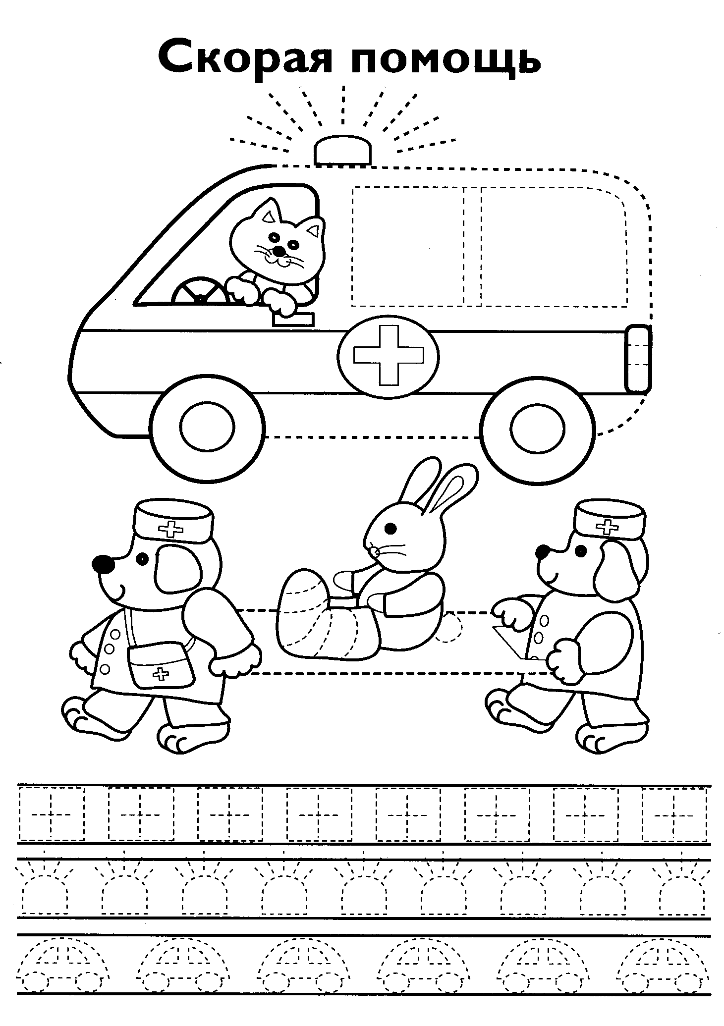 Любую раскраску можно распечатать бесплатно "Раскраска Скорая помощь". Категория:
