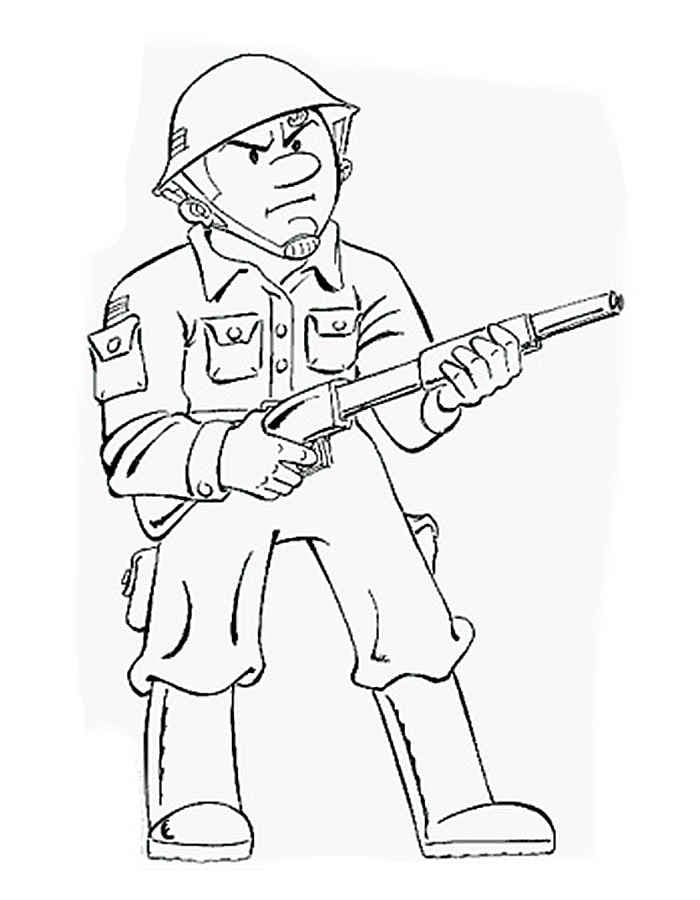 Солдат - это член армии. Военные, или вооруженные силы, защищают землю, море и воздушное пространство страны от иностранного вторжения. Вооруженные силы разделены в соответствии с этими подразделениями. Армия защищает Землю, флот-море, а военно-воздушные силы-воздушное пространство. В некоторых странах есть морская пехота, но морские пехотинцы являются частью Военно-морского флота. У солдат одна задача-защищать свою страну. Однако существует множество различных способов сделать это. Если страна находится в состоянии войны, многие солдаты сражаются в бою. Они используют оружие и технологии, чтобы помочь победить врага. В мирное время солдаты всегда готовы к любой опасности или угрозе для своей страны. В дополнение к боевой подготовке, каждый род войск предлагает подготовку для сотен различных рабочих мест. Эти рабочие места могут быть в таких областях, как машиностроение, медицина, компьютеры или финансы. На нашем сайте Вы совершенно бесплатно можете скачать и распечатать раскраску солдат в хорошем качестве.