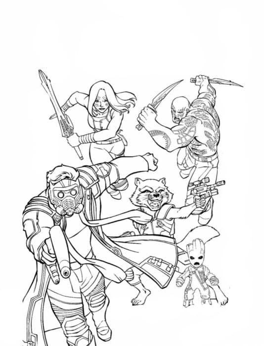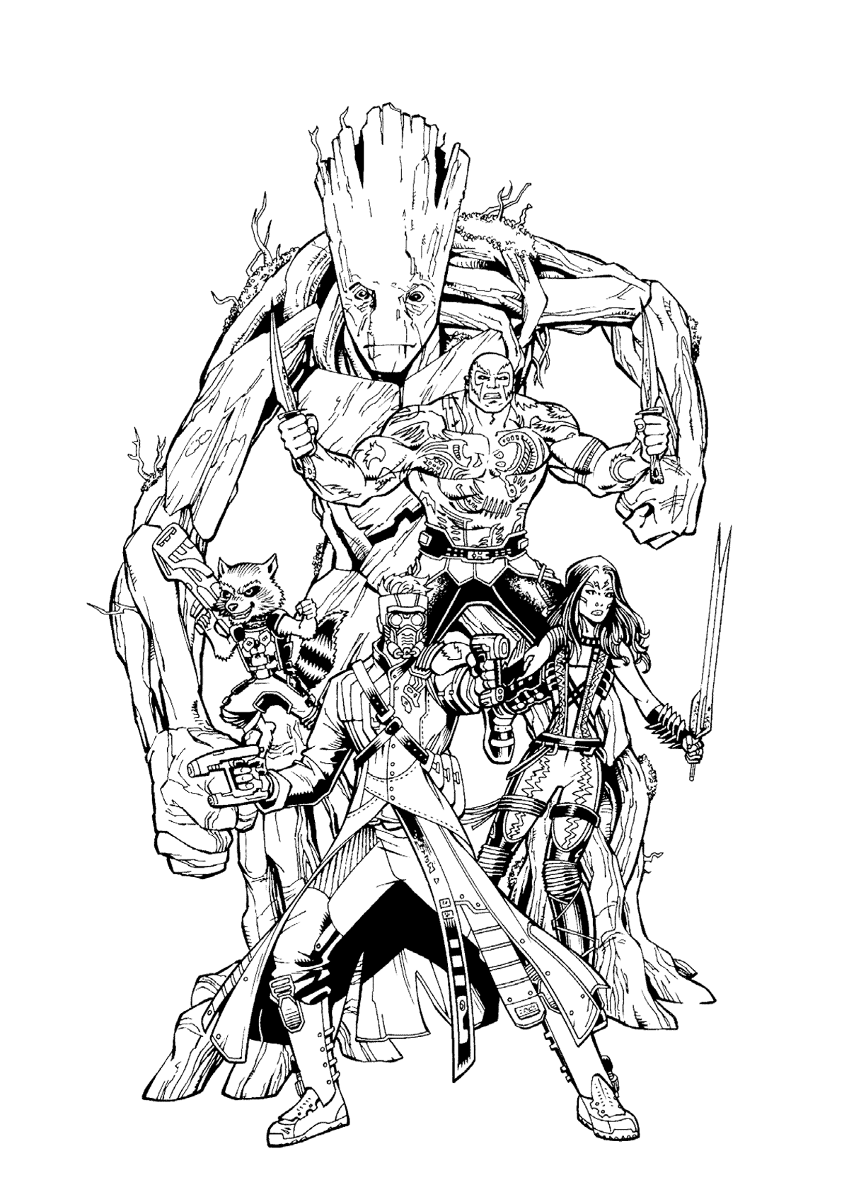 На нашем сайте Вы совершенно бесплатно можете скачать и распечатать раскраску Стражи галактики в хорошем качестве. Стражи галактики это команда супергероев, противостоящая различным вселенским угрозам. В их состав часто входят неординарные персонажи, но он постоянно меняется. Среди них известен Реактивный Енот, Грут, Гамора, Дракс Разрушитель и прочие могущественные существа. Они часто ссорятся между собой, но объединяются в момент опасности для общей победы. В процессе раскрашивания развивается моторика рук и улучшается мозговая деятельность ребенка.