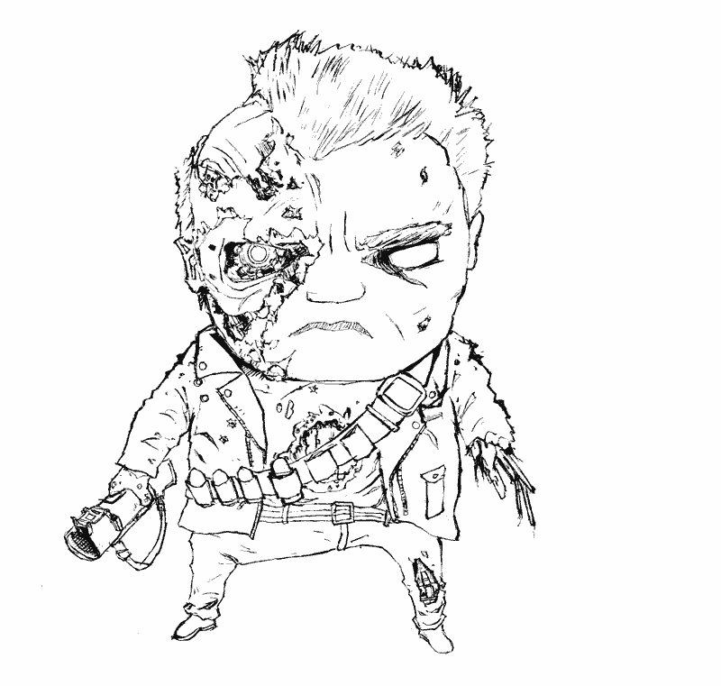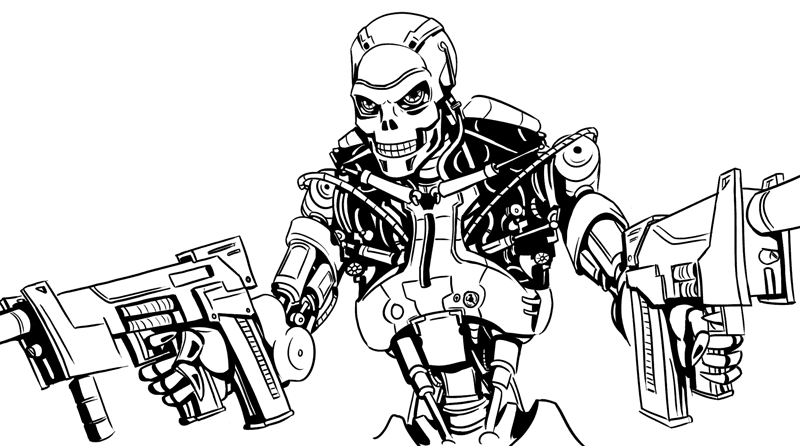 На нашем сайте Вы совершенно бесплатно можете скачать и распечатать раскраску терминатор в хорошем качестве. Терминатор это робот, представляющий собой человекоподобное создание. Согласно сюжету фильма, они вышли из-под контроля людей в будущем, организовав масштабную войну. По развитию событий, один из них был послан в прошлое, чтобы защитить мальчика, которому было суждено стать великим командиром и возглавить силы сопротивления против восстания машин. В момент раскрашивания развивается моторика рук и улучшается мозговая деятельность ребенка.