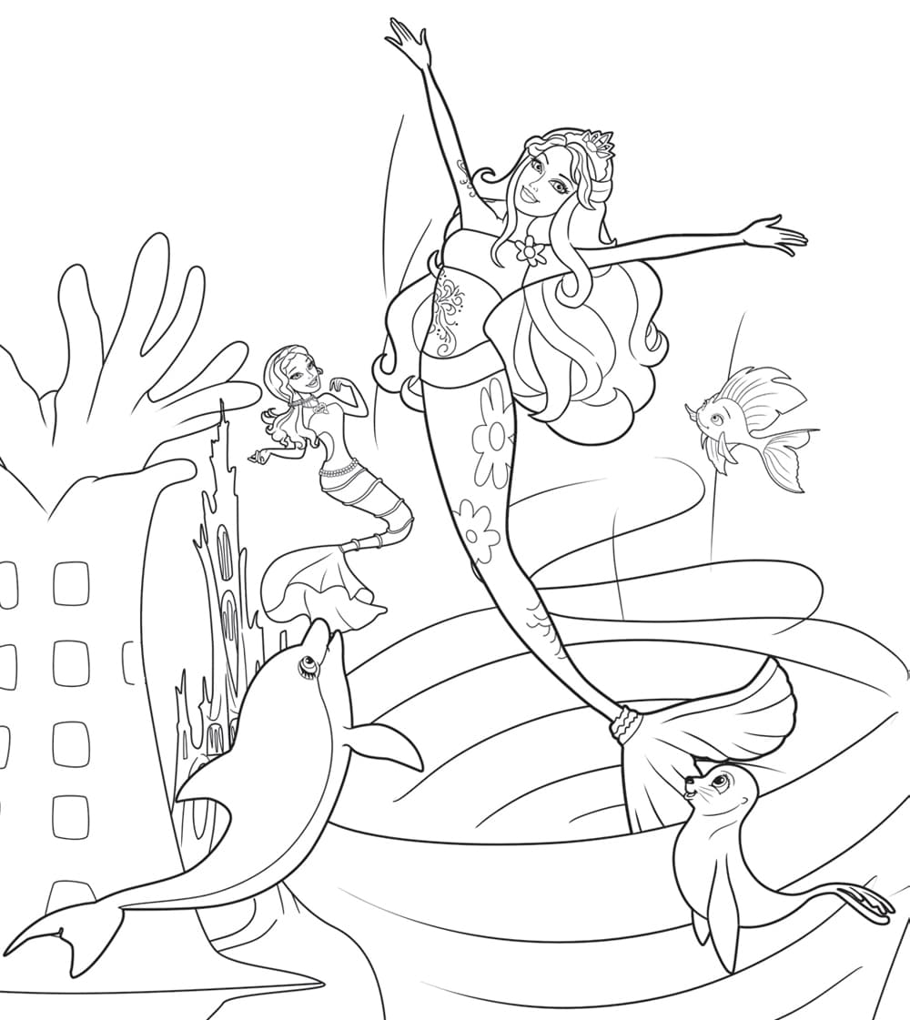 На этой странице Вы абсолютно бесплатно можете скачать и распечатать раскраски Барби Русалки в хорошем качестве. С Барби происходит множество невероятных историй, в том числе волшебных. Так, в одной истории Барби оказывается на дне морском в образе русалки. Она даже помогает новым друзьям победить зло. Барби-русалка – популярная кукла. Девочкам нравится придумывать с ней свои истории. Причем Барби бывает не только с обычным тряпичным хвостом, под которым спрятаны ноги, но и с пластмассовым, в который встроены лампочки. Они очень красиво переливаются. Такая Барби умеет плавать. В процессе раскрашивания развивается моторика рук и улучшается мозговая деятельность ребенка.