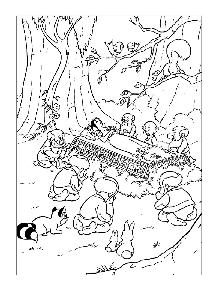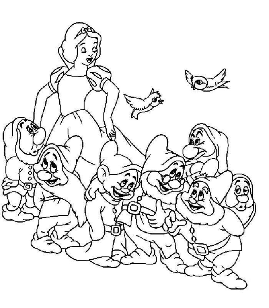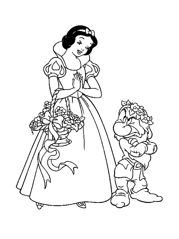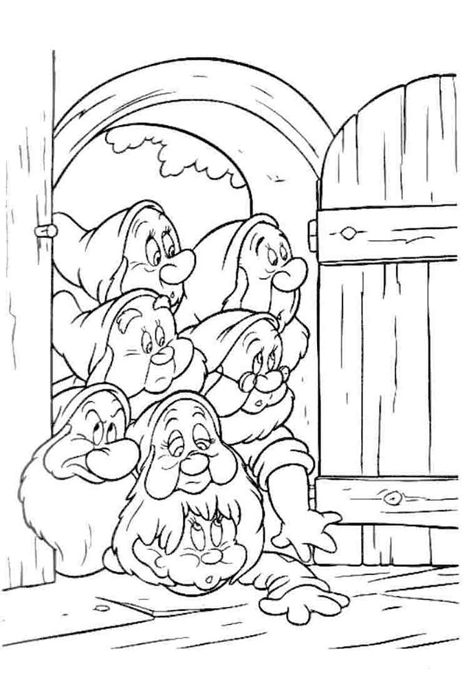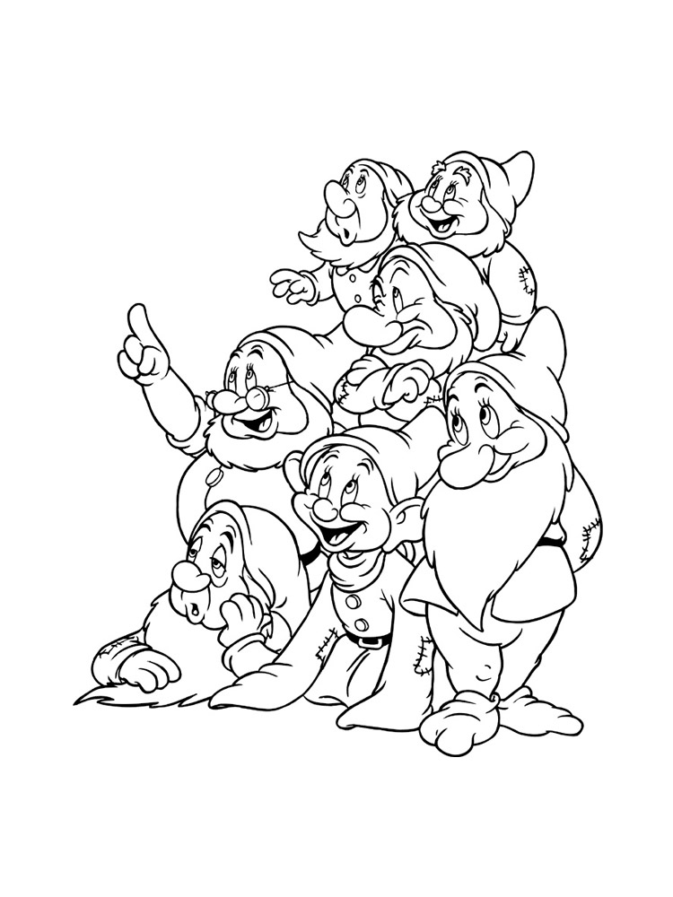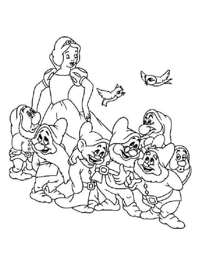 На нашем сайте Вы совершенно бесплатно можете скачать и распечатать раскраску Белоснежка и семь гномов. Это история про Белоснежку, которая известна каждому. Главная героиня была отправлена на верную смерть из-за завистливой мачехи. После того, как она сбежала, ей предстоит найти свой путь. Она встречается с семью гномами, начиная жить с ними и активно помогать в повседневных делах. У Белоснежки была завистливая мачеха, которой не нравилась красота и молодость первой. В результате падчерицу отправили в лес, чтобы убить. Палач не смог этого сделать, поэтому помог девочке сбежать. Так начинаются приключения Белоснежки и ее знакомство с гномами.