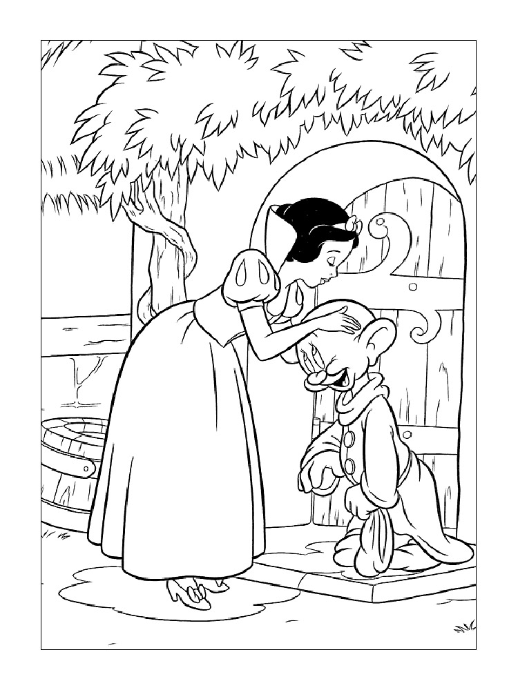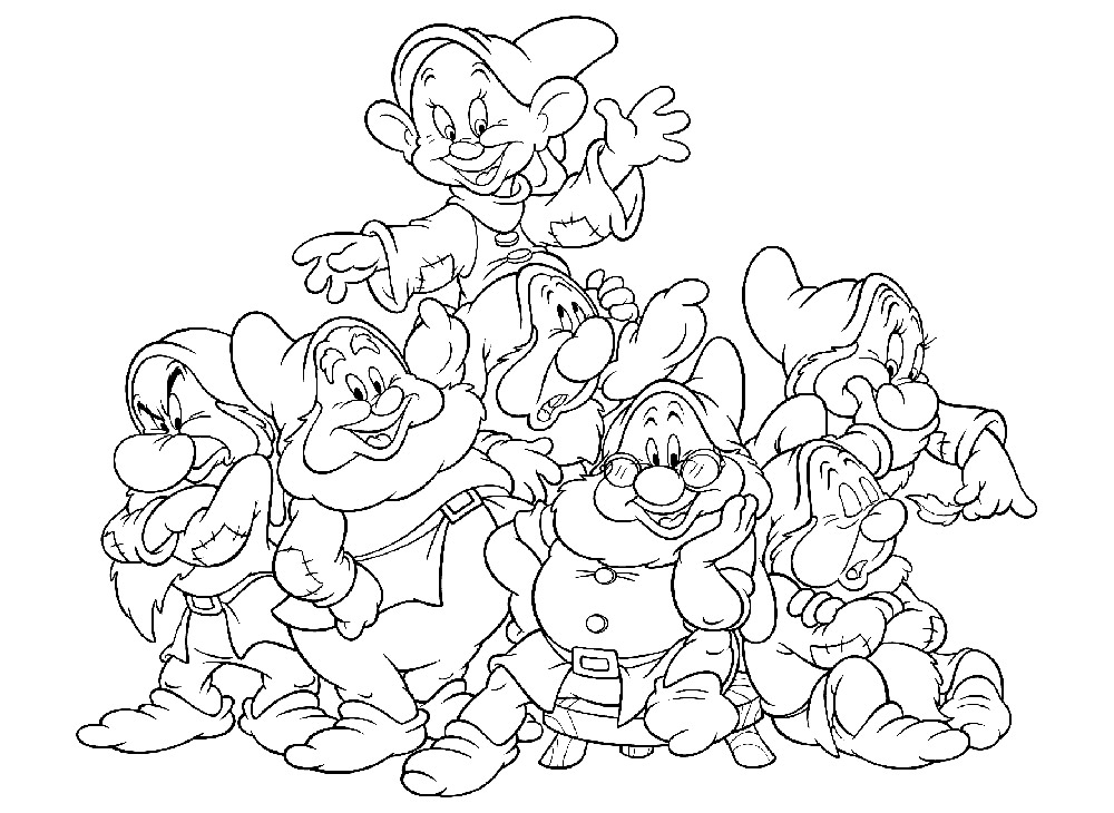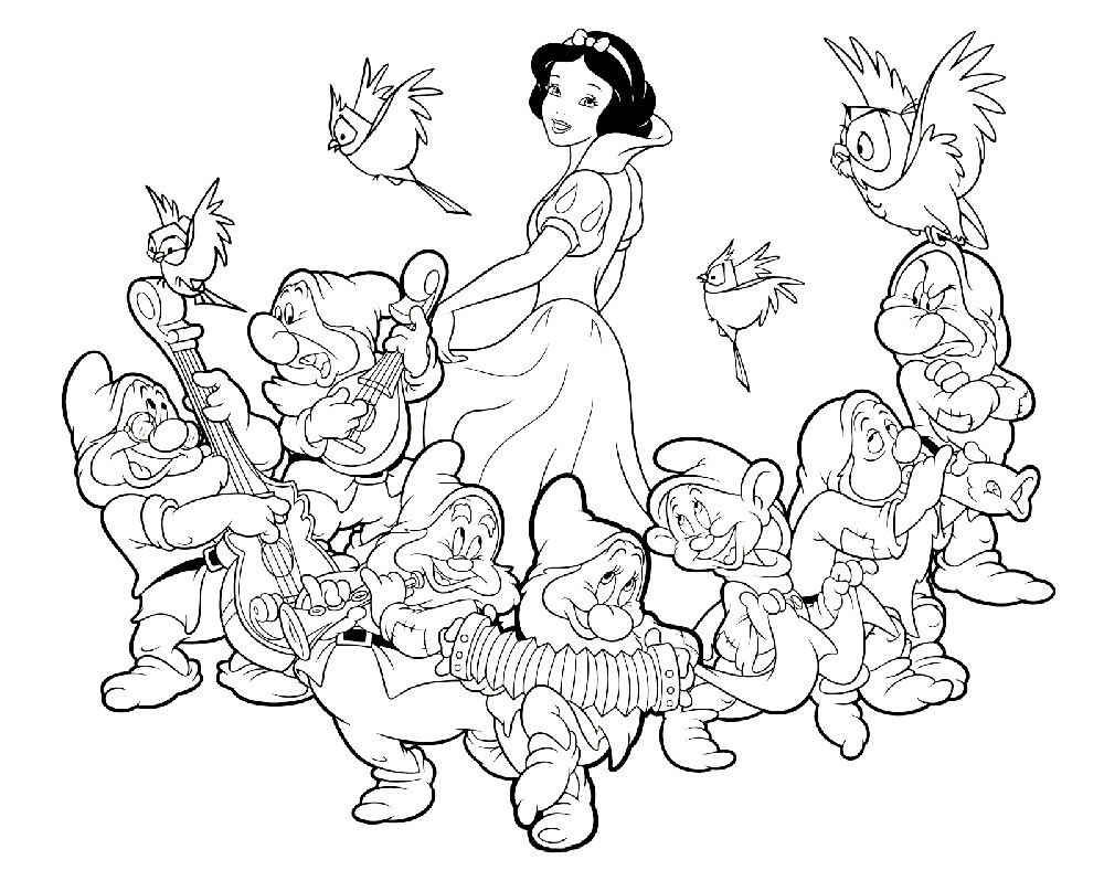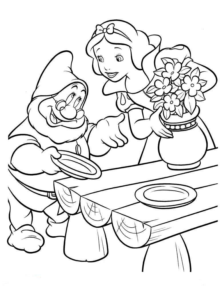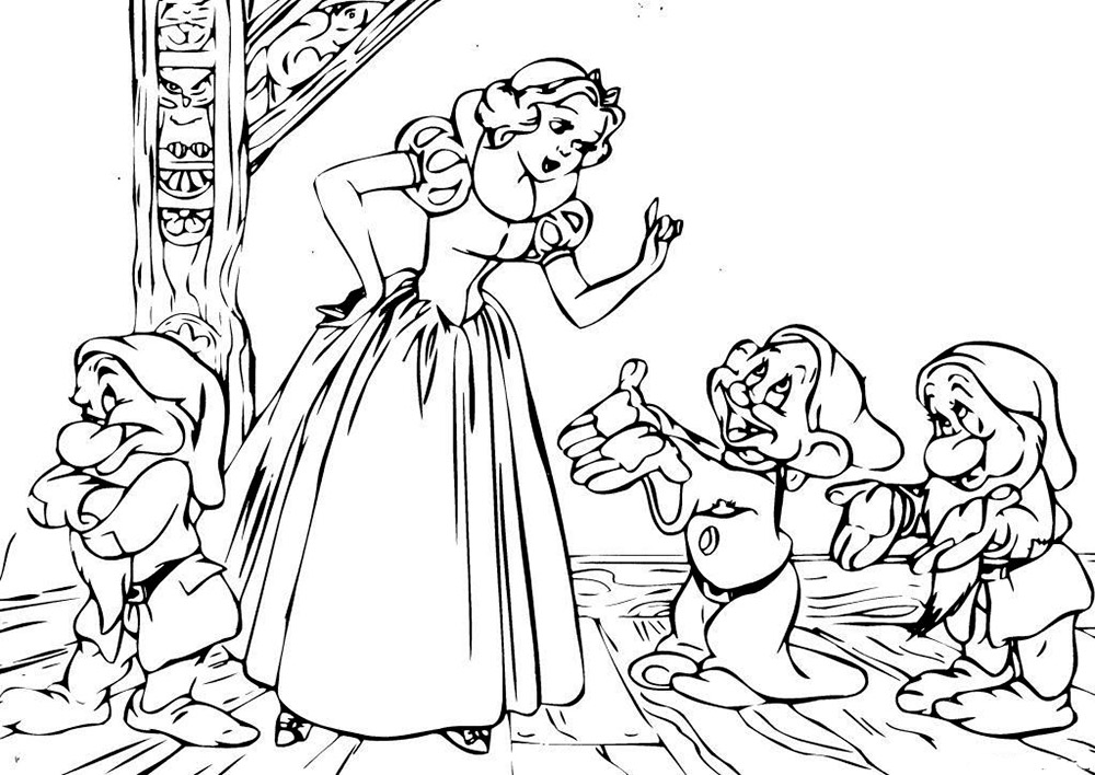 На нашем сайте Вы совершенно бесплатно можете скачать и распечатать раскраску Белоснежка и семь гномов. Это история про Белоснежку, которая известна каждому. Главная героиня была отправлена на верную смерть из-за завистливой мачехи. После того, как она сбежала, ей предстоит найти свой путь. Она встречается с семью гномами, начиная жить с ними и активно помогать в повседневных делах. У Белоснежки была завистливая мачеха, которой не нравилась красота и молодость первой. В результате падчерицу отправили в лес, чтобы убить. Палач не смог этого сделать, поэтому помог девочке сбежать. Так начинаются приключения Белоснежки и ее знакомство с гномами.