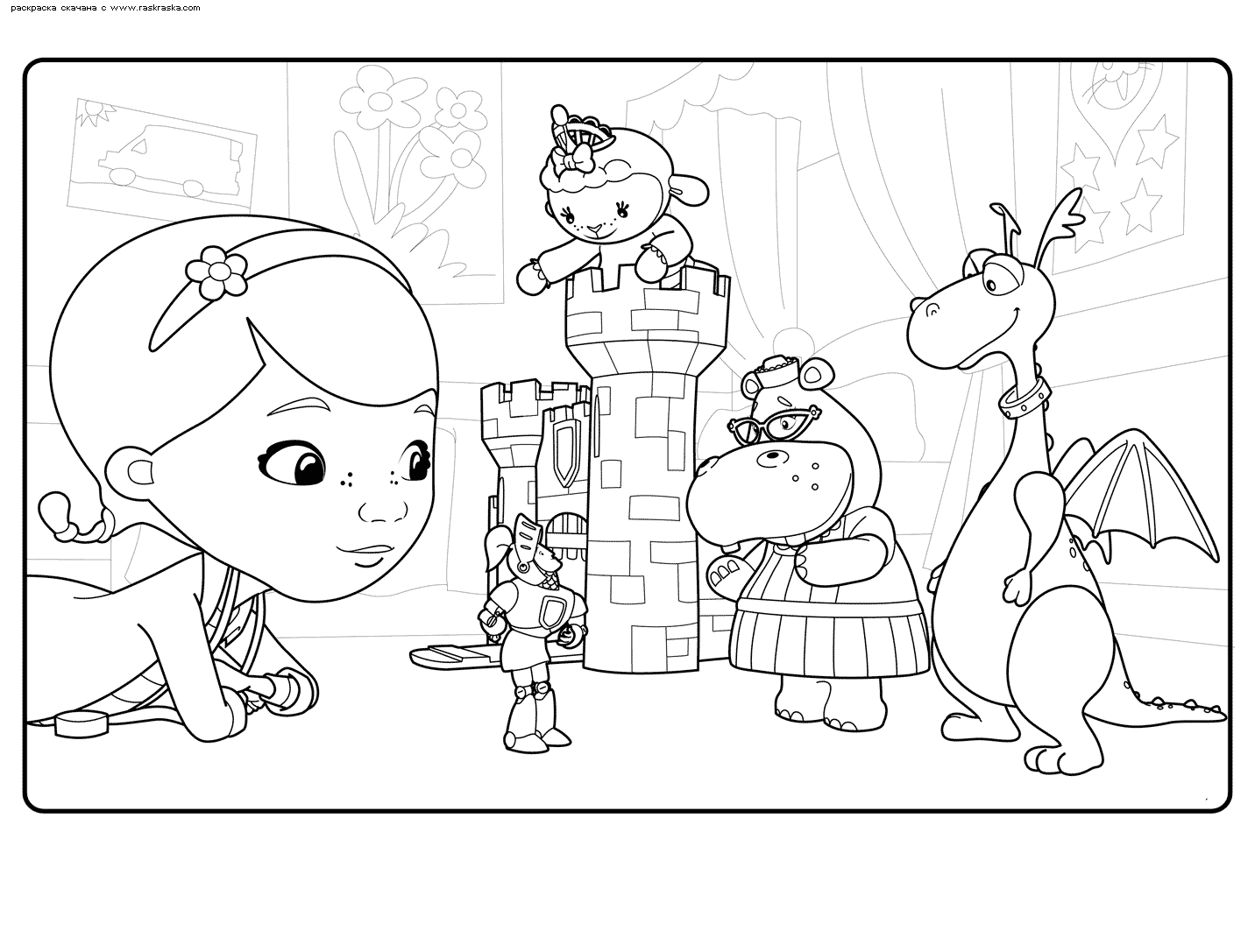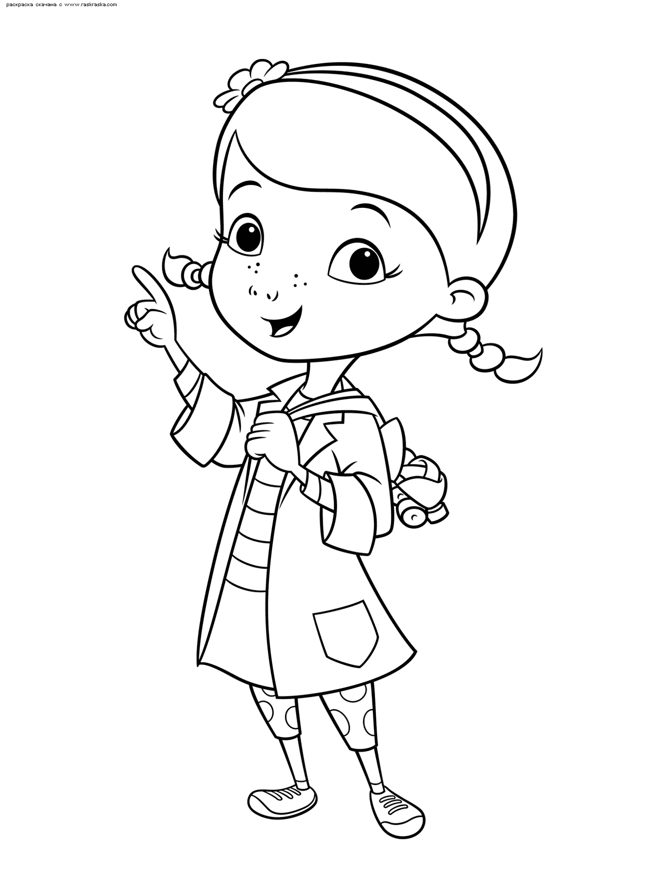 На нашем сайте Вы совершенно бесплатно можете скачать и распечатать раскраску Доктор Плюшева. Главный герой истории – девочка, которая хочет стать доктором в будущем. Она выбрала свою будущую профессию из-за матери. Увидев желание своей дочери, мама купила все необходимые игрушки. Однажды девочка получила стетоскоп. Он оказался необычным, а волшебным. Приключения только начинаются. В процессе разукрашивания у ребенка развивается моторика рук, а так же улучшается мозговая активность.