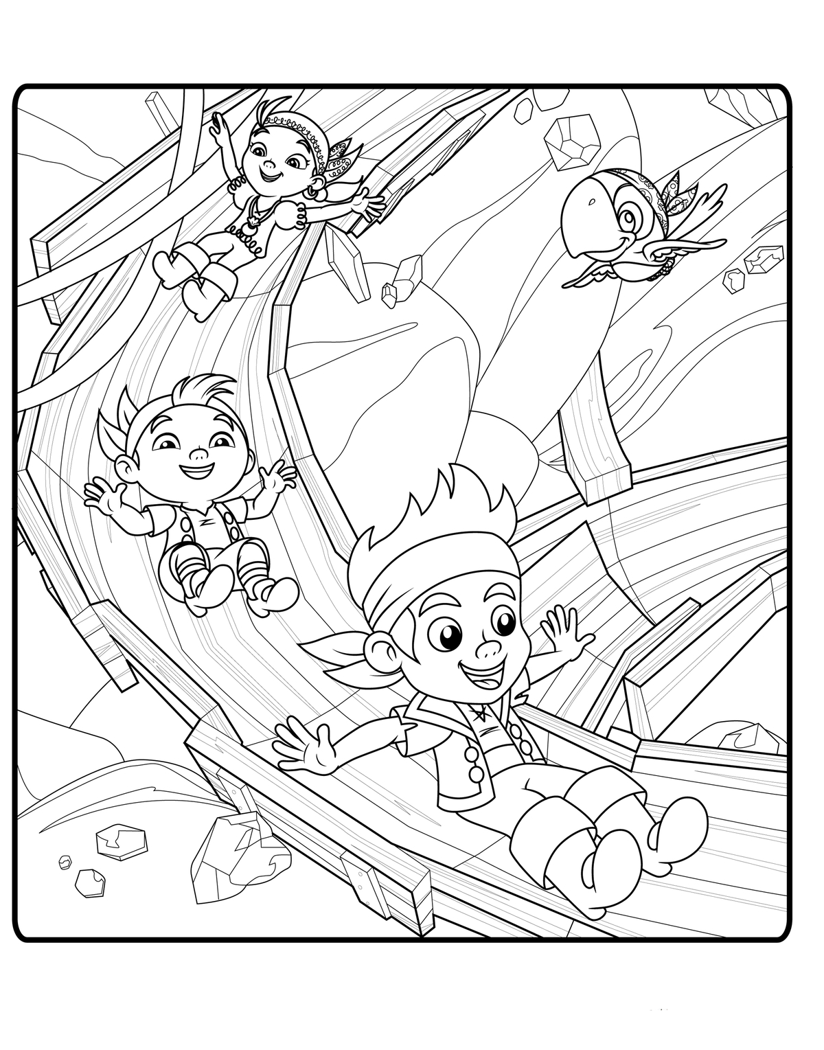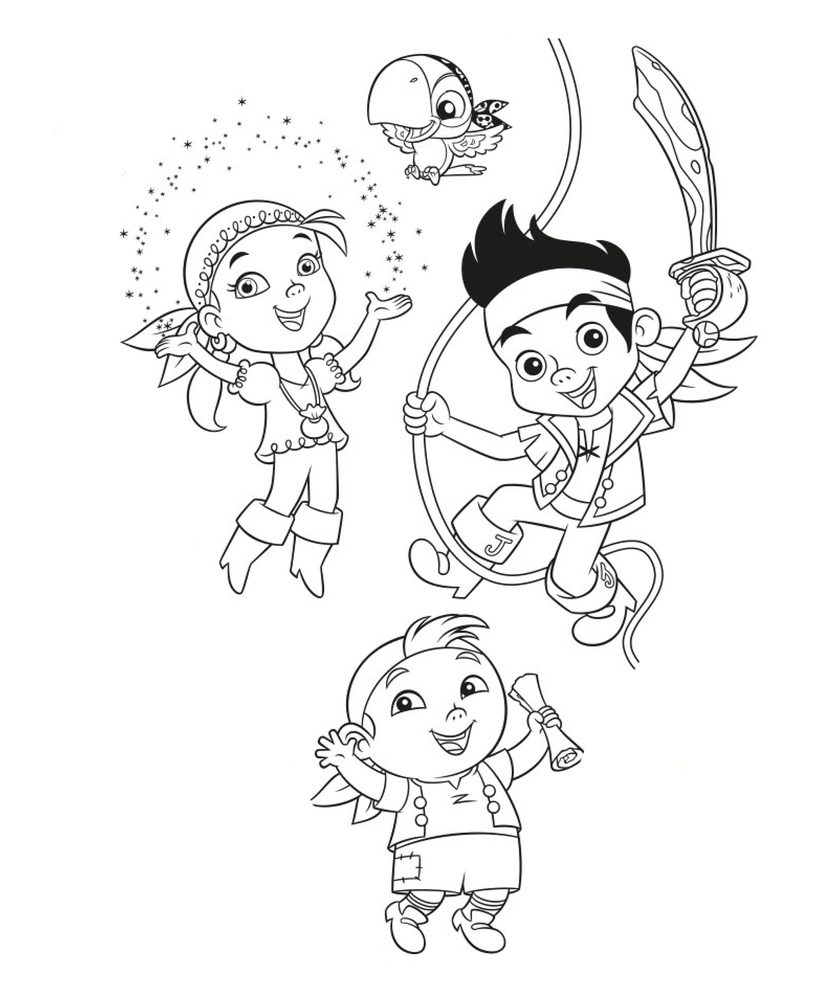 На нашем сайте Вы совершенно бесплатно можете скачать и распечатать раскраски Джейк и пираты Нетландии в хорошем качестве. Это невероятная история про пиратов, которая поражает воображение маленьких зрителей. Пришло время отправиться в путь на самом большом и быстром корабле. Командование на себя взял маленький паренек Джейк. В его команде – только отважные герои, которые отправляются на поиски сокровищ. В момент разукрашивания у ребенка развивается моторика рук, а так же улучшается мозговая активность.