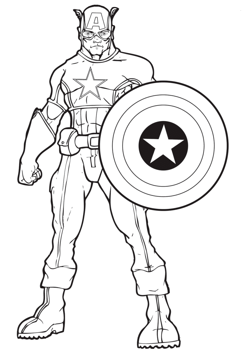 На нашем сайте Вы совершенно бесплатно можете скачать и распечатать раскраску Капитан Америка в хорошем качестве. Капитан Америка это один из старейших супергероев вселенной Marvel. Он появился ещё в 1940-е годы. По сути, это образцовый солдат объединения Щ.И.Т., постоянно противостоящий своему исконному врагу Красному Черепу. Он имеет практически полную неуязвимость, а также неразрушимый щит, разукрашенный в цвета американского флага. В момент раскрашивания развивается моторика рук и улучшается мозговая деятельность ребенка.