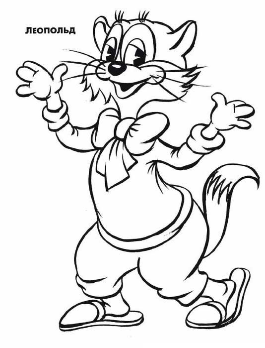 На нашем сайте Вы совершенно бесплатно можете скачать и распечатать раскраску Кот Леопольд в хорошем качестве. Кот Леопольд – легендарный мультсериал с поучительным сюжетом и интересными историями. В центре сюжета – кот Леопольд. Это холостой мужчина-интеллигент, который живет в хорошем районе. Он всегда носит чистую и опрятную одежду. Но есть двое мышей-хулиганов, которым не нравится такой расклад. В процессе раскрашивания у детей развивается моторика рук, а так же улучшается мозговая активность.