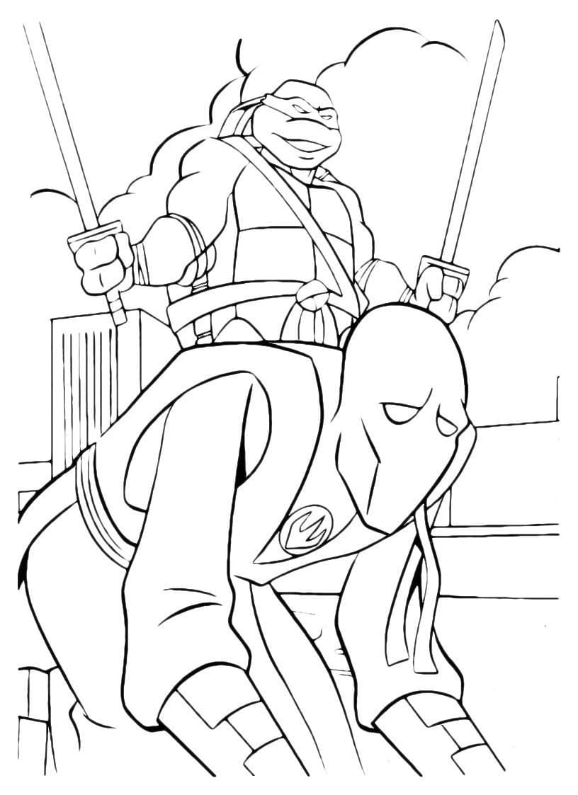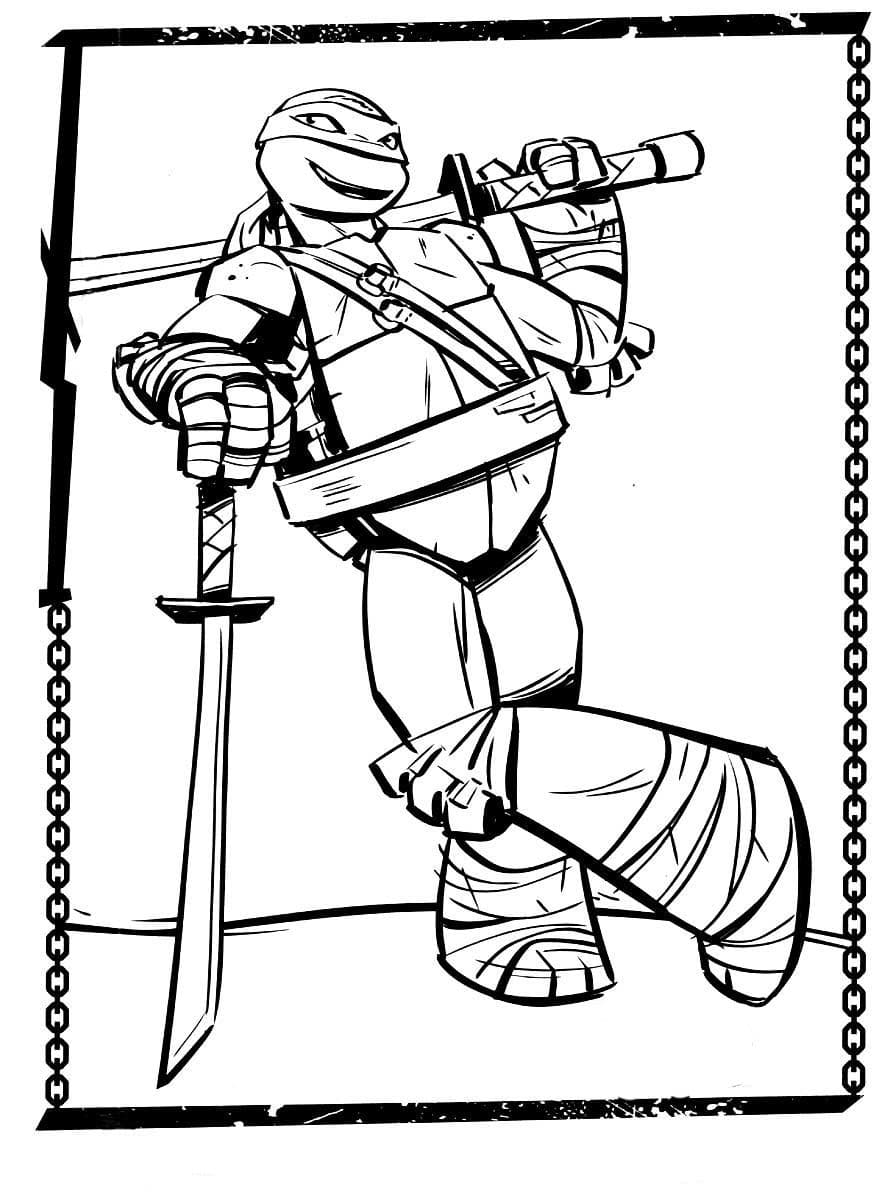 На нашем сайте Вы абсолютно бесплатно можете скачать и распечатать раскраску Леонардо в хорошем качестве. Леонардо это черепашка-ниндзя с голубой повязкой на глазах. В качестве оружия в бою с неприятелем он использует пару мечей-катан, носимых за панцирем. Он самый храбрый из всей четвёрки, что делает его отъявленным лидером и разработчиком всех планов. Он всегда придерживается японского кодекса чести воина, называемого бусидо. Во время раскрашивания развивается моторика рук и улучшается мозговая деятельность ребенка.