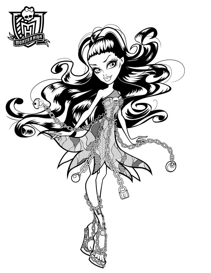На нашем сайте Вы совершенно бесплатно можете скачать и распечатать раскраску Монстр Хай в хорошем качестве. Монстер Хай начались с серии кукол, где фигурировали подростки с паранормальными способностями. Затем последовал выпуск интересного журнала об их приключениях, а уже после этого появился мультипликационный сериал. Образы главных героев построены на известных стереотипных чудовищах. Во время раскрашивания ребенок развивает моторику рук и улучшает свою мозговую активность.