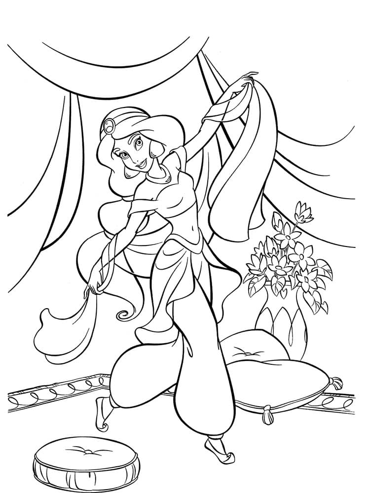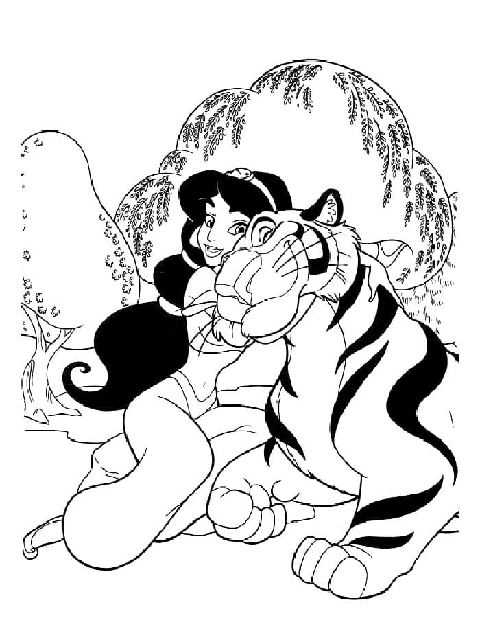 Любую раскраску можно распечатать бесплатно "Раскраска принцесса Жасмин". Категория:
