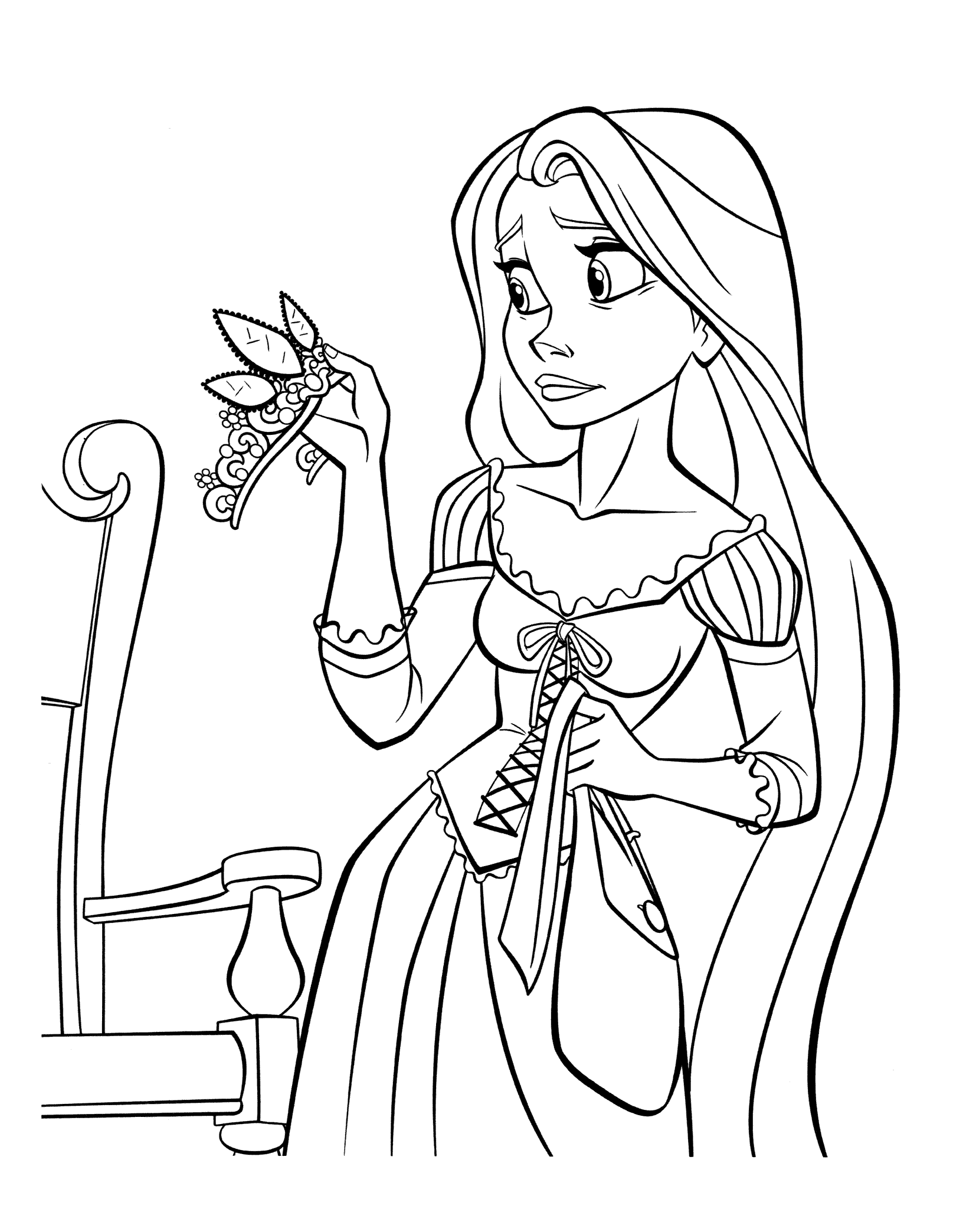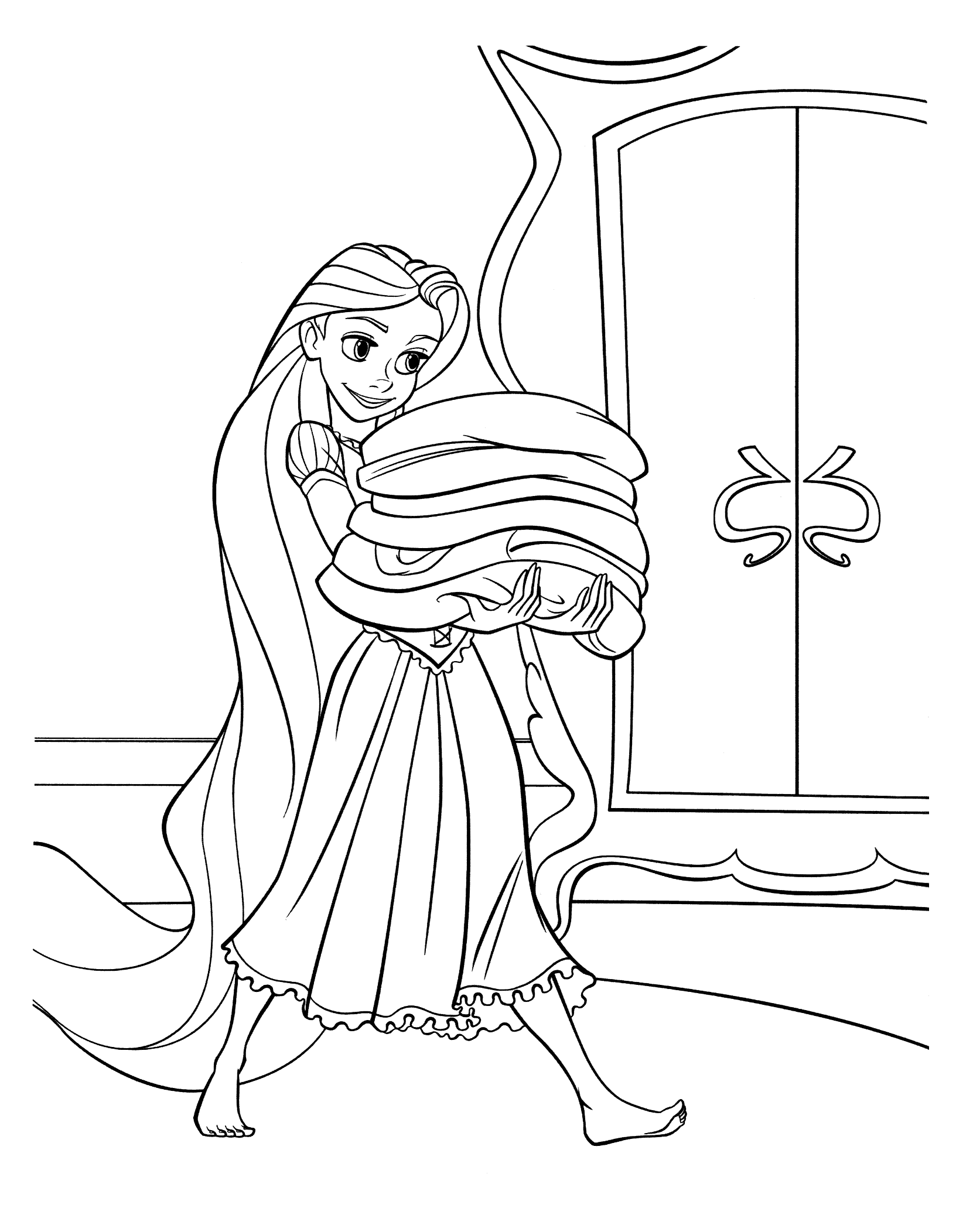 На этой странице Вы совершенно бесплатно можете скачать и распечатать раскраску Рапунцель в хорошем качестве. Рапунцель – это девушка, проживающая вдали от всего мира. Она живет в компании маленького хамелеона в пределах небольшой комнаты. Ее волосы обладают необычными свойствами, поэтому они могут стать причиной войн. Однажды девушка решает сбежать из дома. Отсюда начинаются ее приключения. Во время раскрашивания у ребенка развивается моторика рук и улучается мозговая активность, как доказали ученые.