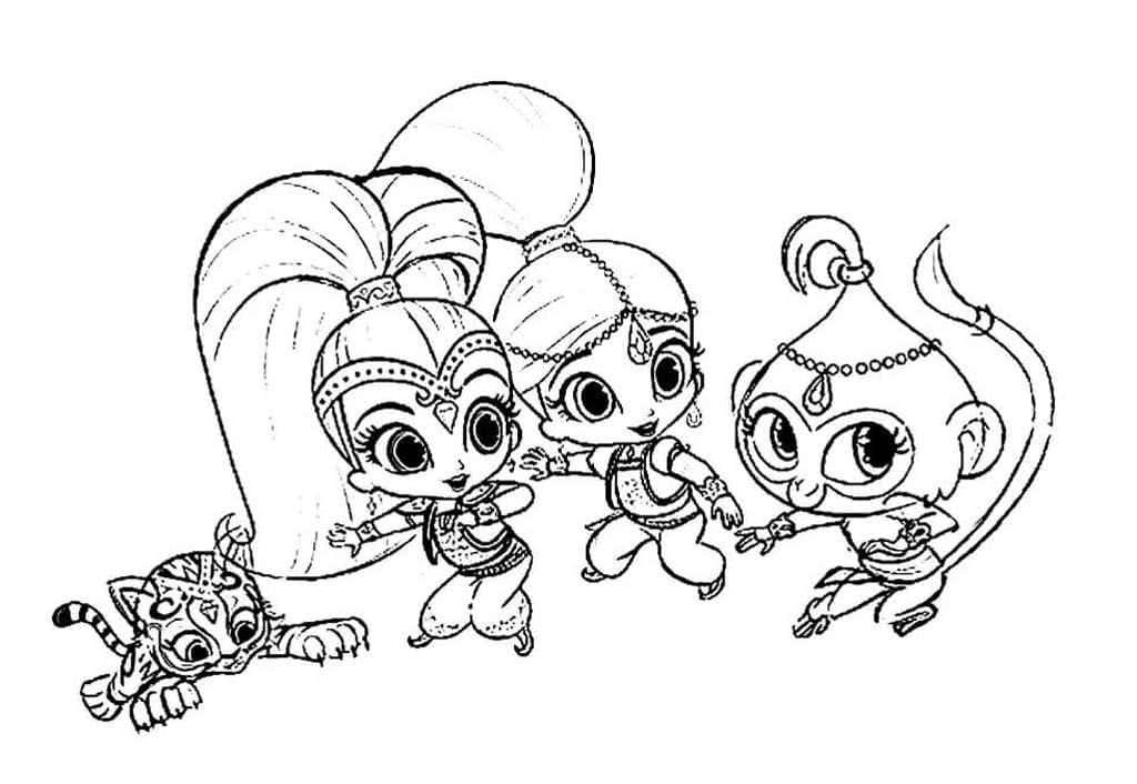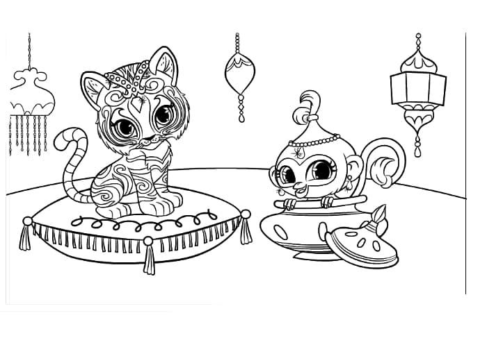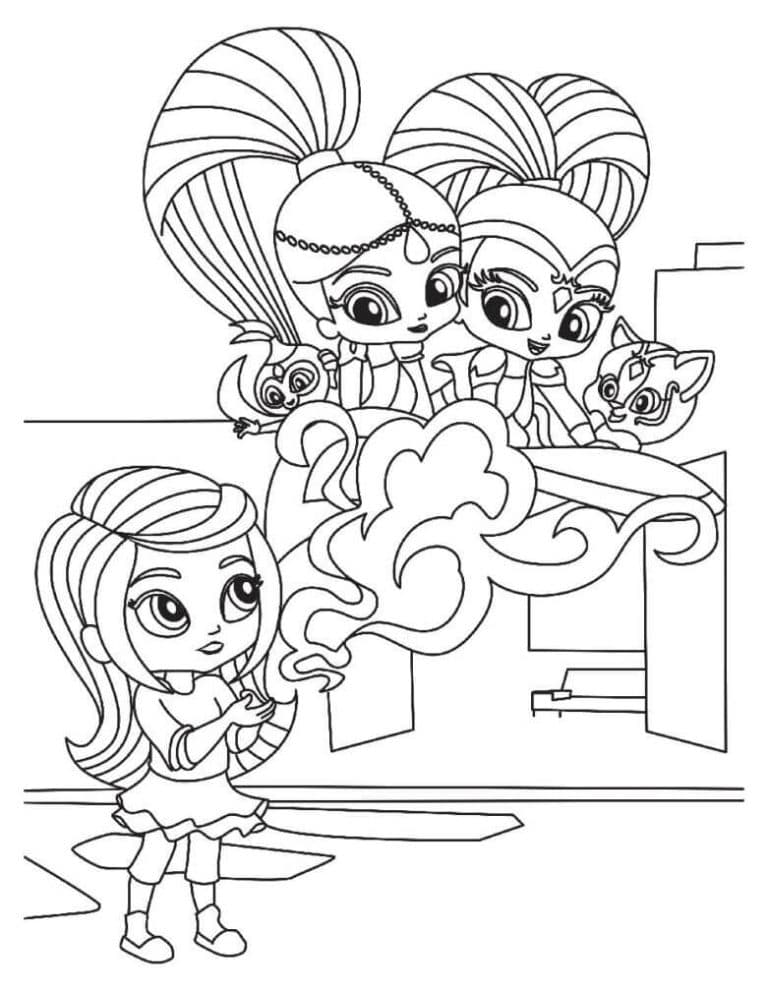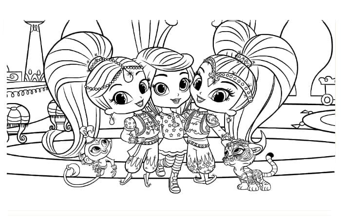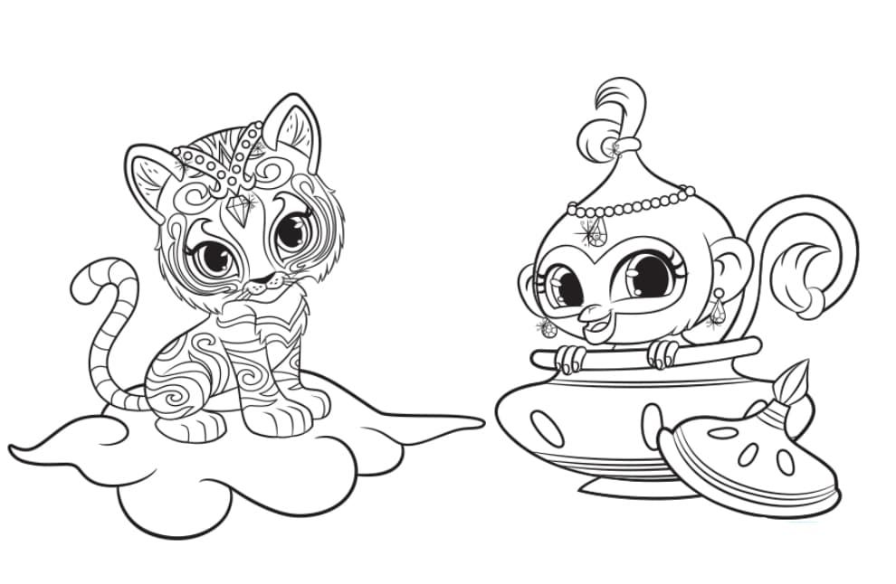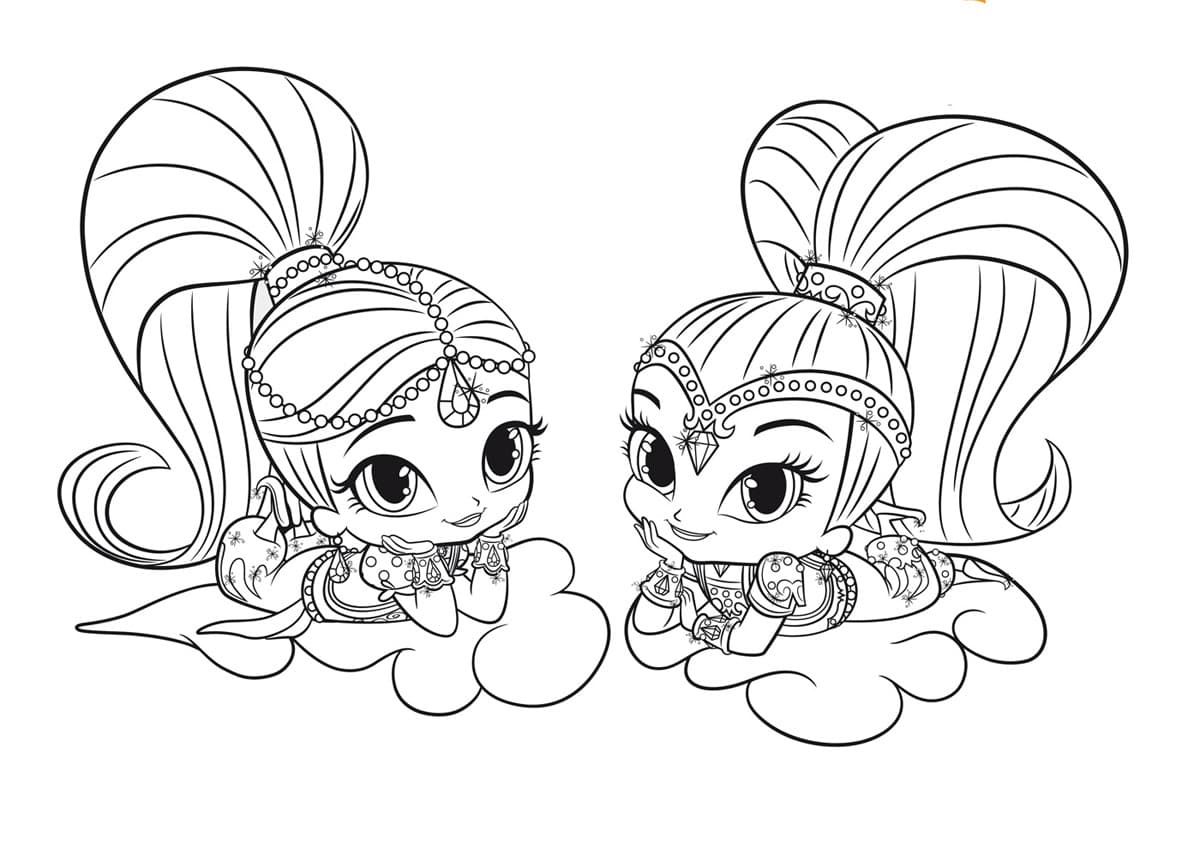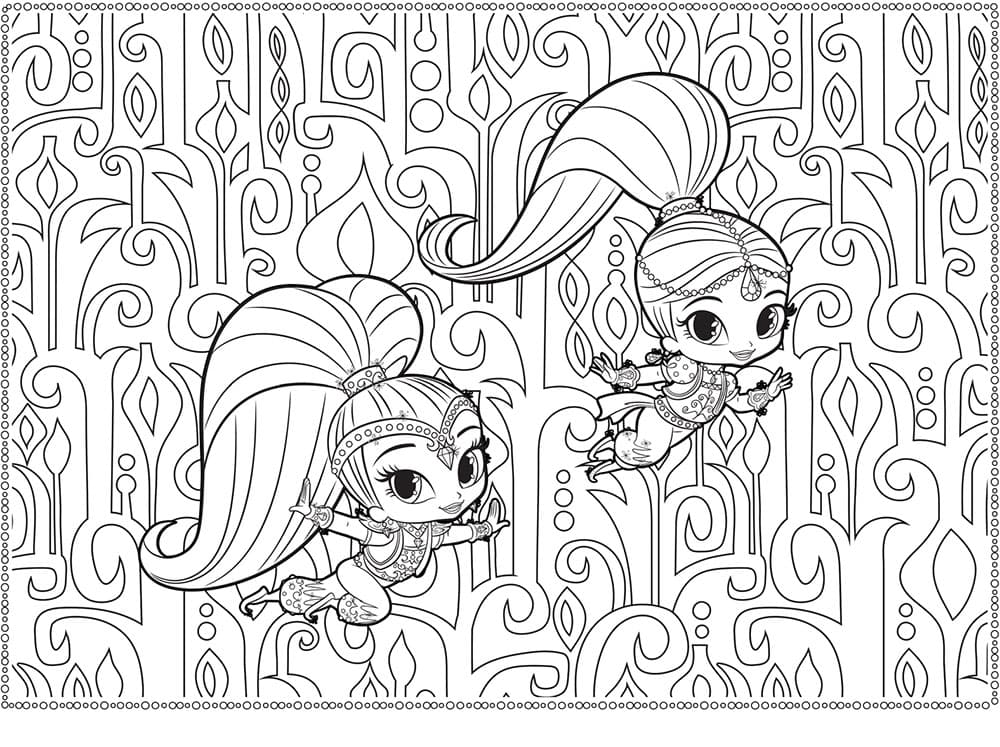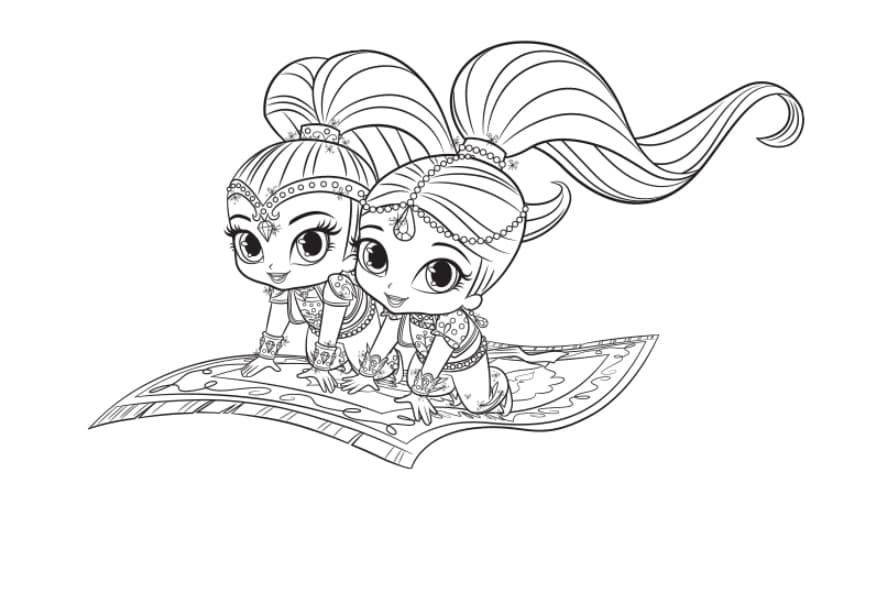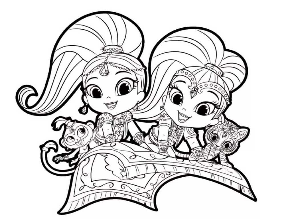 На нашем сайте Вы совершенно бесплатно можете скачать и распечатать раскраску Шиммер и Шайн в отличном качестве. Шиммер и Шайн это две необычные сестры. Внешне они не отличаются от маленьких девочек, но на самом деле это два могущественных джинна, способных осуществлять любые желания, а также останавливать злые силы. Делают они это вместе со своими домашними питомцами, также обладающими особой силой. В момент разукрашивания улучшается мозговая активность ребенка и развивается моторика рук.