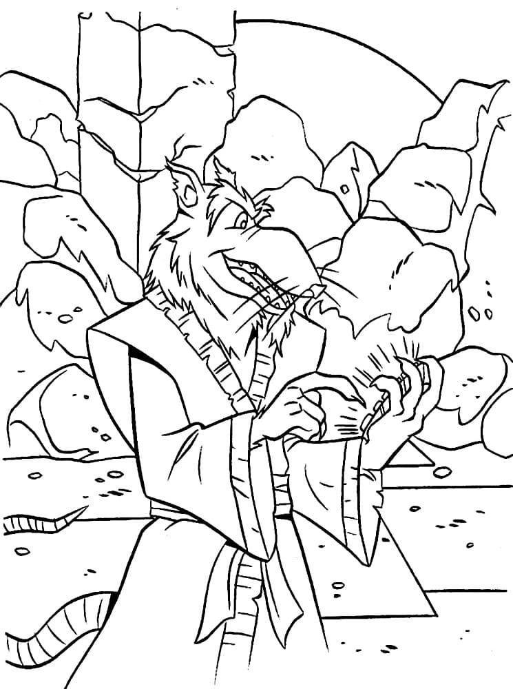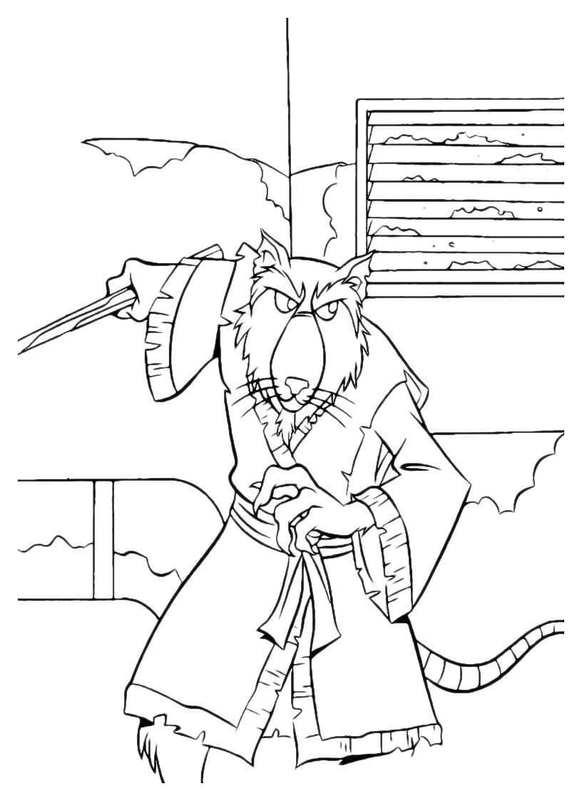 На нашем сайте Вы совершенно бесплатно можете скачать и распечатать раскраску сплинтер в хорошем качестве. Сплинтер это старая и мудрая человекоподобная крыса из вселенной историй про черепашек-ниндзя. Он подобрал черепашат в канализации, вырастив из них настоящих супергероев. Как и его подопечные, он пострадал от действия неизвестного мутагена, протёкшего в канализационные стоки. Этот персонаж обладает мудростью, а одевается подобно мастерам Кунг-Фу. В процессе раскрашивания развивается моторика рук и улучшается мозговая деятельность ребенка.