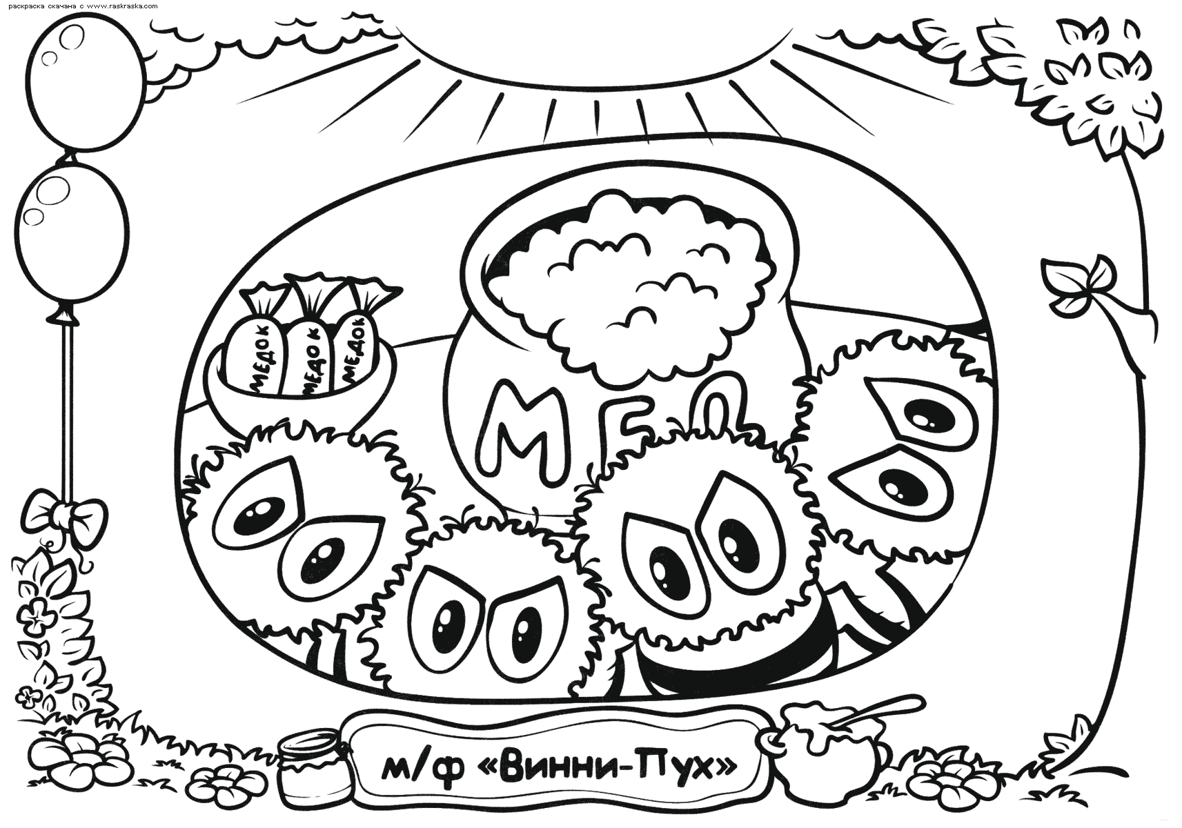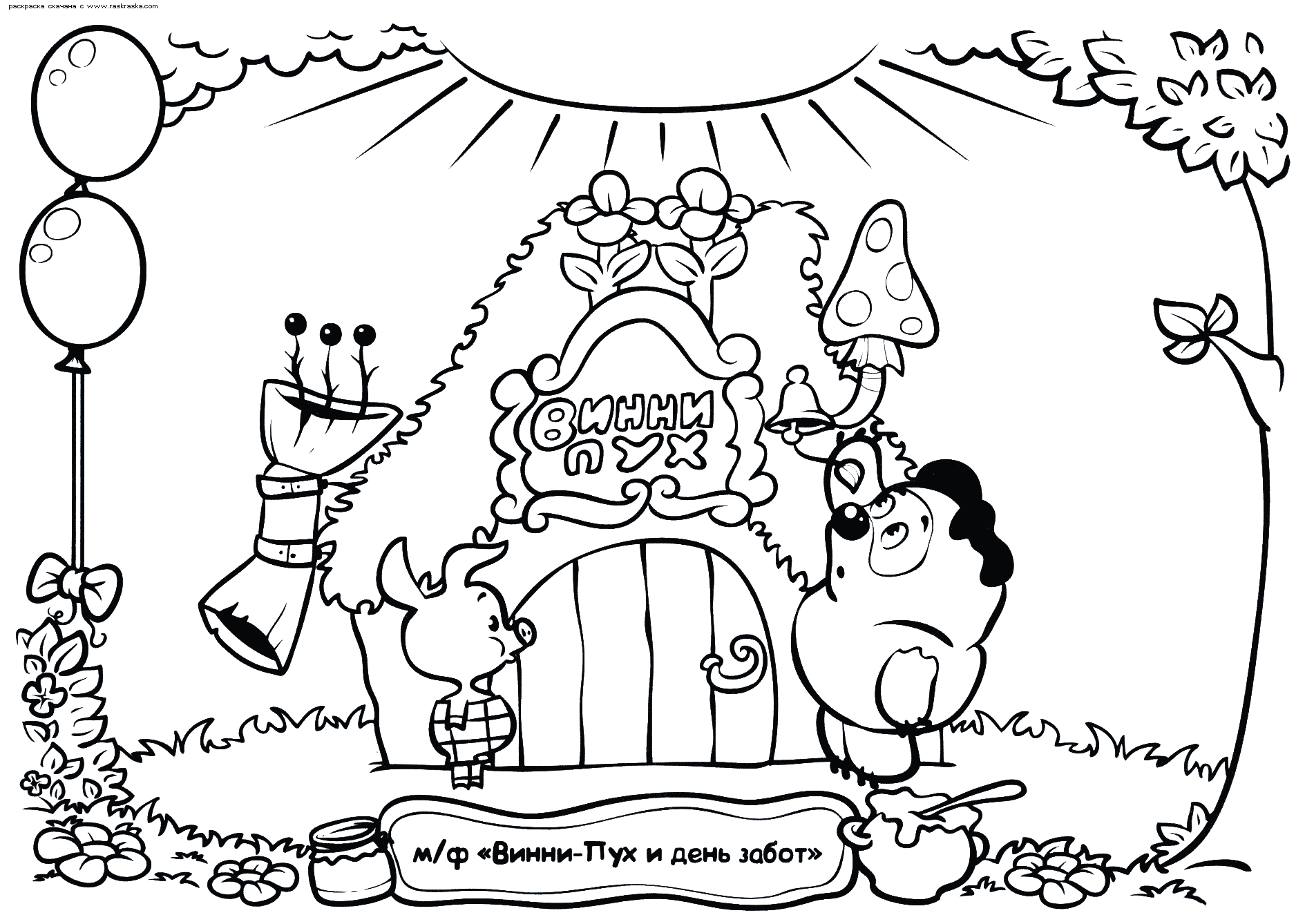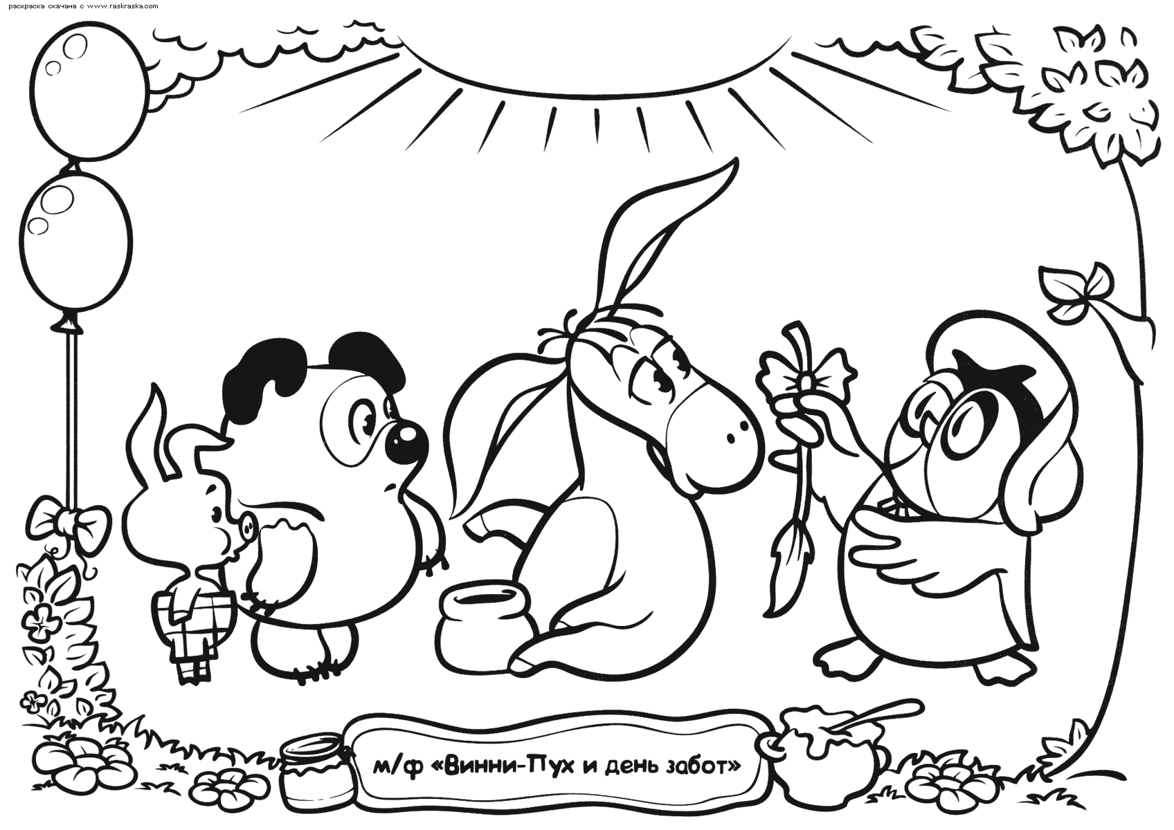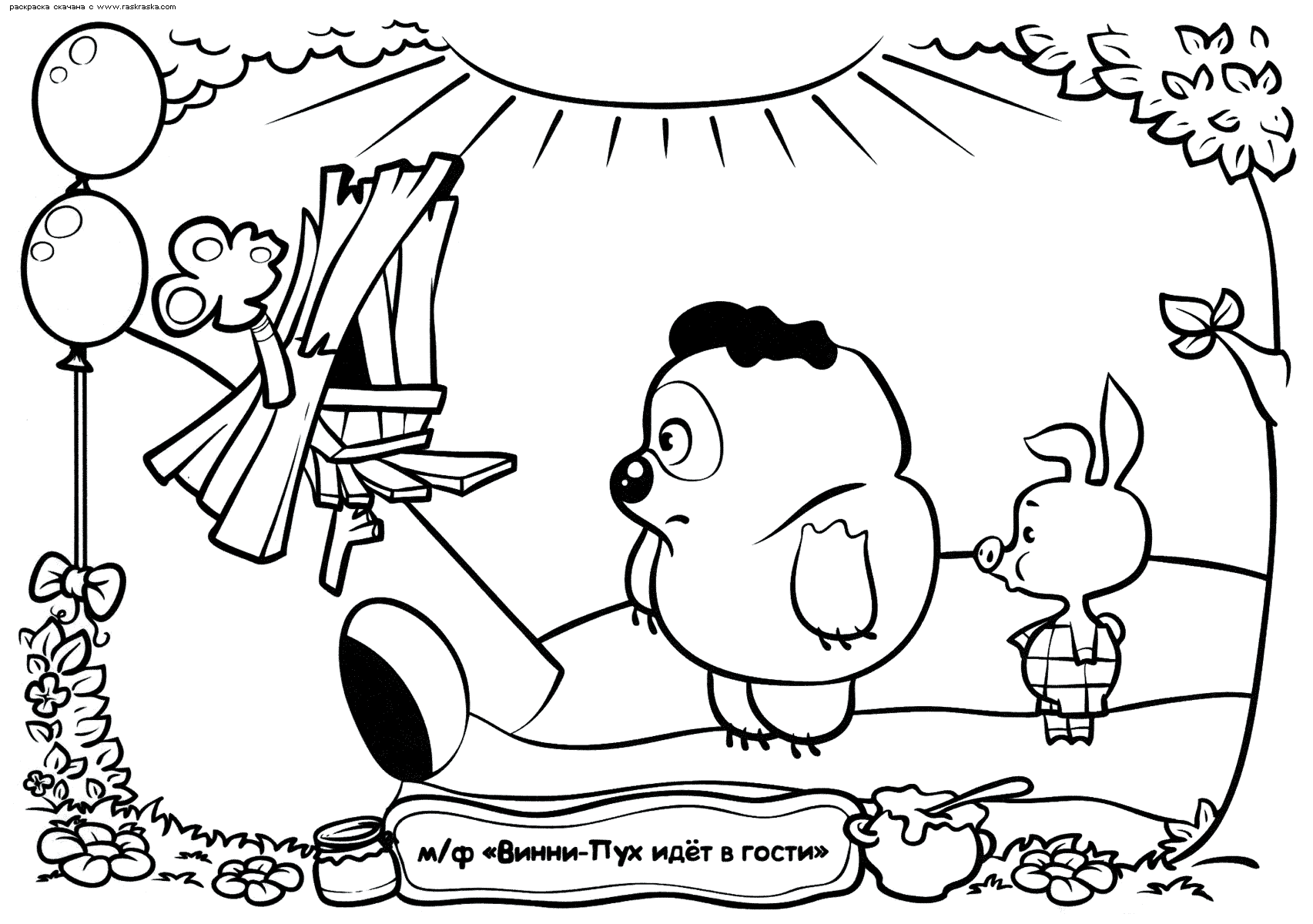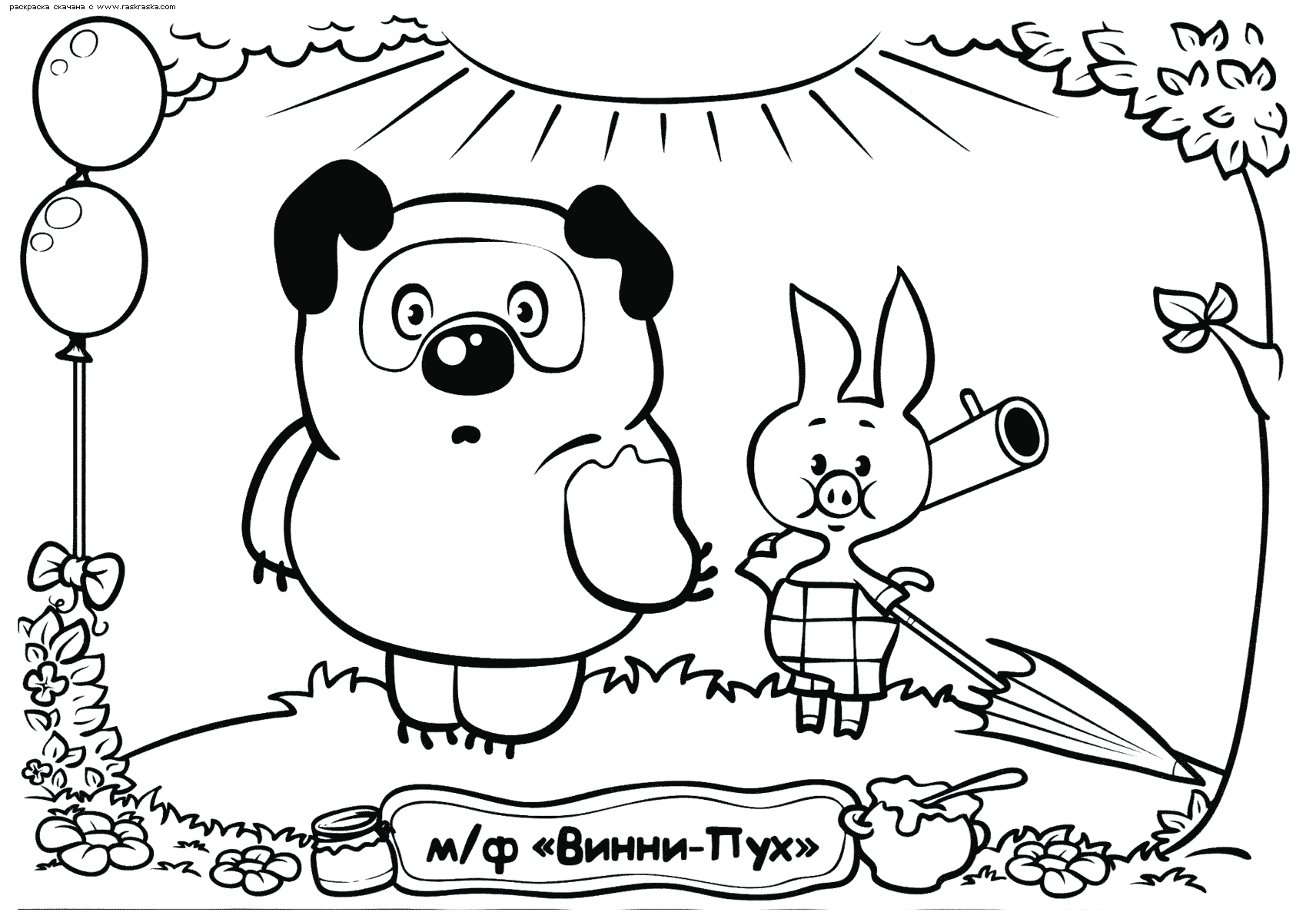 На нашем сайте Вы совершенно бесплатно можете скачать и распечатать раскраску Винни Пух в отличном качестве. Винни-Пух это забавный и немного печальный медвежонок, придуманный Аланом Милном. Он опубликовал книгу о персонаже только по просьбе своей племянницы, но никто не ожидал подобного успеха. Позже было снято множество мультфильмов с его участием в главной роли. Во время раскрашивания улучается мозговая деятельность и развивается моторика рук.