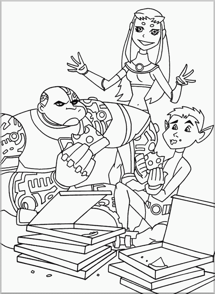 На этой странице Вы абсолютно бесплатно можете скачать и распечатать раскраску Юные Титаны в хорошем качестве. Это современный мультсериал, повествующий о жизни супергероев. При этом у каждого из них есть свои жизни и проблемы. Они сталкиваются с подростковыми проблемами, пытаются решить их самостоятельно. Это история о дружбе, общении со сверстниками и проблемами, знакомыми каждому. Во время раскрашивания улучается мозговая активность, а так же развивается моторика рук.