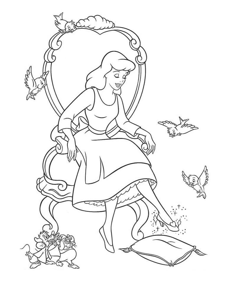 На нашем сайте Вы можете скачать и распечатать раскраску золушка в хорошем качестве, абсолютно бесплатно. После смерти отца Золушка осталась с злобной мачехой и ее вредными дочерями, которые издевались над сиротой, загружали ее непосильной работой. Но добрая фея крестная помогла Золушке попасть на бал во дворец. Фея наколдовала красивое платье и хрустальные туфельки. Однако волшебство действовало только до 12 часов ночи, к этому времени девушка должна была вернуться домой. Золушка так торопилась, что потеряла туфельку. Ее нашел принц, а потом нашел и Золушку. В момент раскрашивания развивается моторика рук ребенка и улучшается мозговая деятельность.