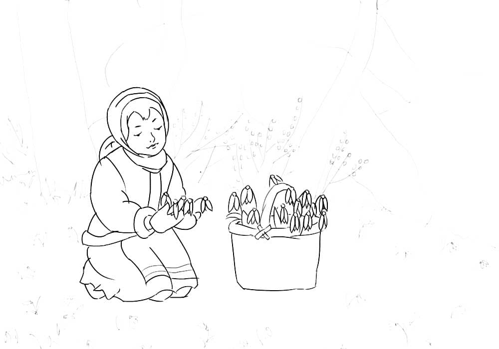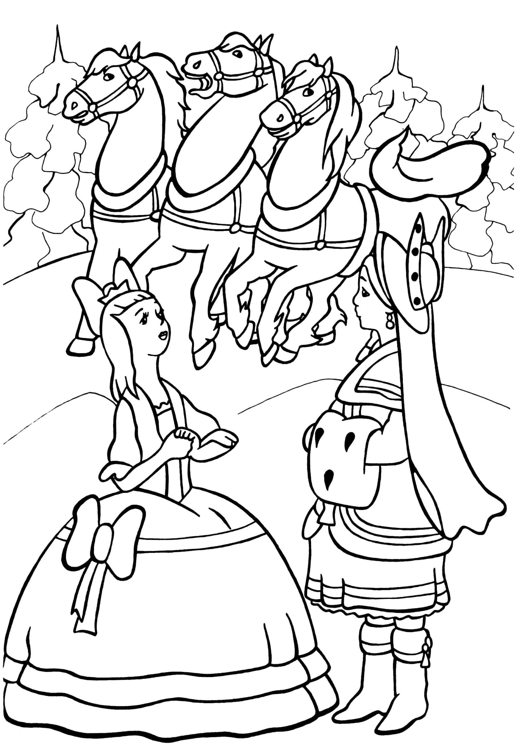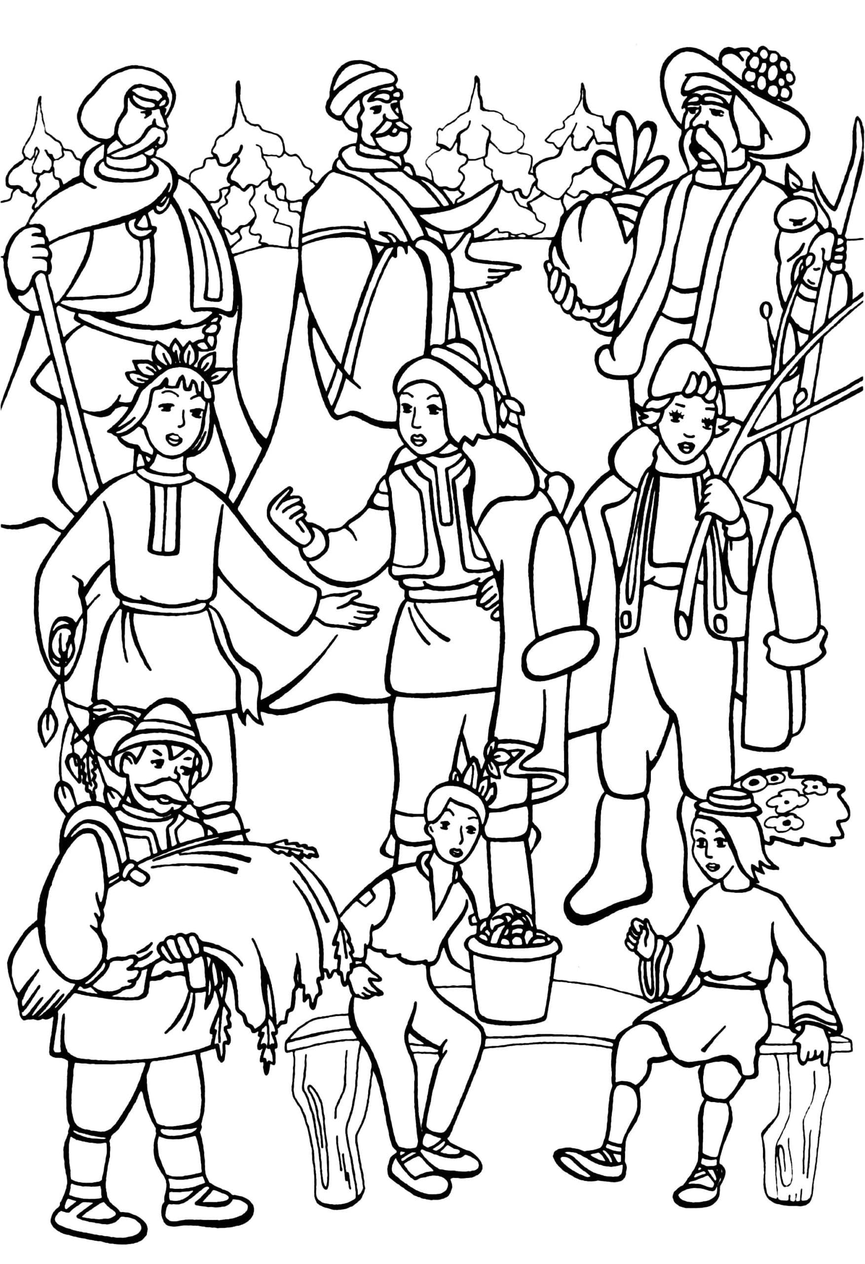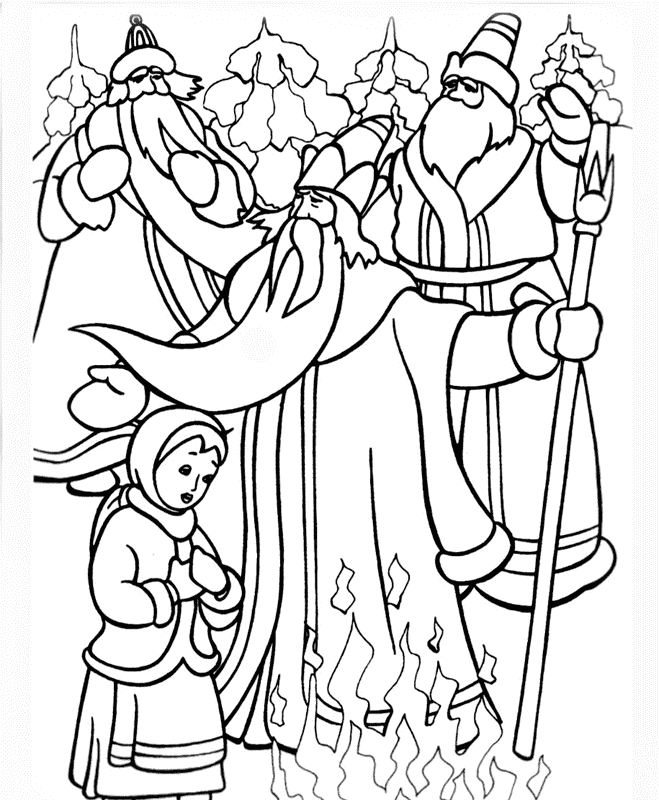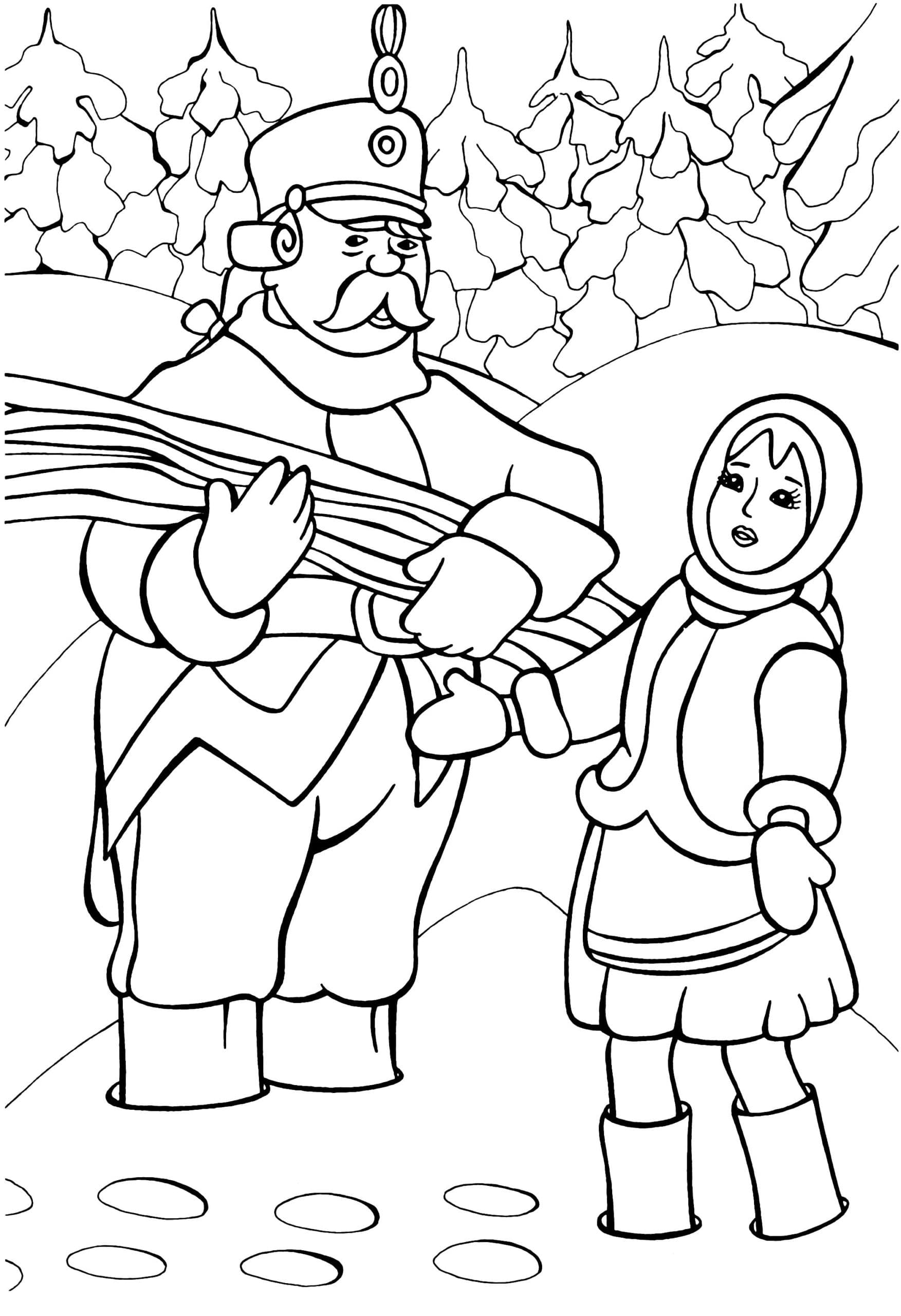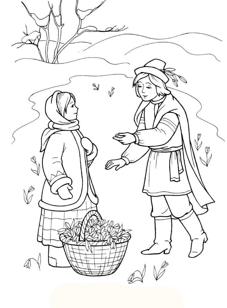 Молодая и красивая девушка по имени Мария отправляется зимой в холодный лес, чтобы выполнить невыполнимые задания своей злой мачехи. Она должна получить весенние фиалки, летнюю клубнику и осенние яблоки в середине зимы в качестве подарков для своей сводной сестры на день рождения. Девушка отваживается выйти в метель и в конце концов встречает 12 персонифицированных месяцев у теплого костра в лесу. Когда она подходит и вежливо спрашивает, Можно ли ей погреть руки у их костра, они спрашивают, почему она здесь, и когда она рассказывает им о своей приемной семье и о том, что она ищет, Духи помогают ей. Детский дух марта создает фиалки, юный июнь-клубнику, а выращенные в сентябре яблоки-по указанию пожилого января. Мачеха и сестра берут вещи, не говоря ни слова благодарности. Когда злая сводная сестра приходит искать двенадцать месяцев сама в снегу, надеясь на свои собственные дары, духи исчезают, забирая свой огонь и оставляя сводную сестру холодной и голодной, ищущей вечность. Та же участь ожидала и злую мачеху. Она тоже позволила жадности ускользнуть вместе с собой и по сей день все еще ищет в недружественном лесу дорогу обратно к своему дому. Добрая сестра осталась в своем доме и жила долго и счастливо. На нашем сайте вы можете бесплатно скачать и распечатать раскраску 12 месяцев.