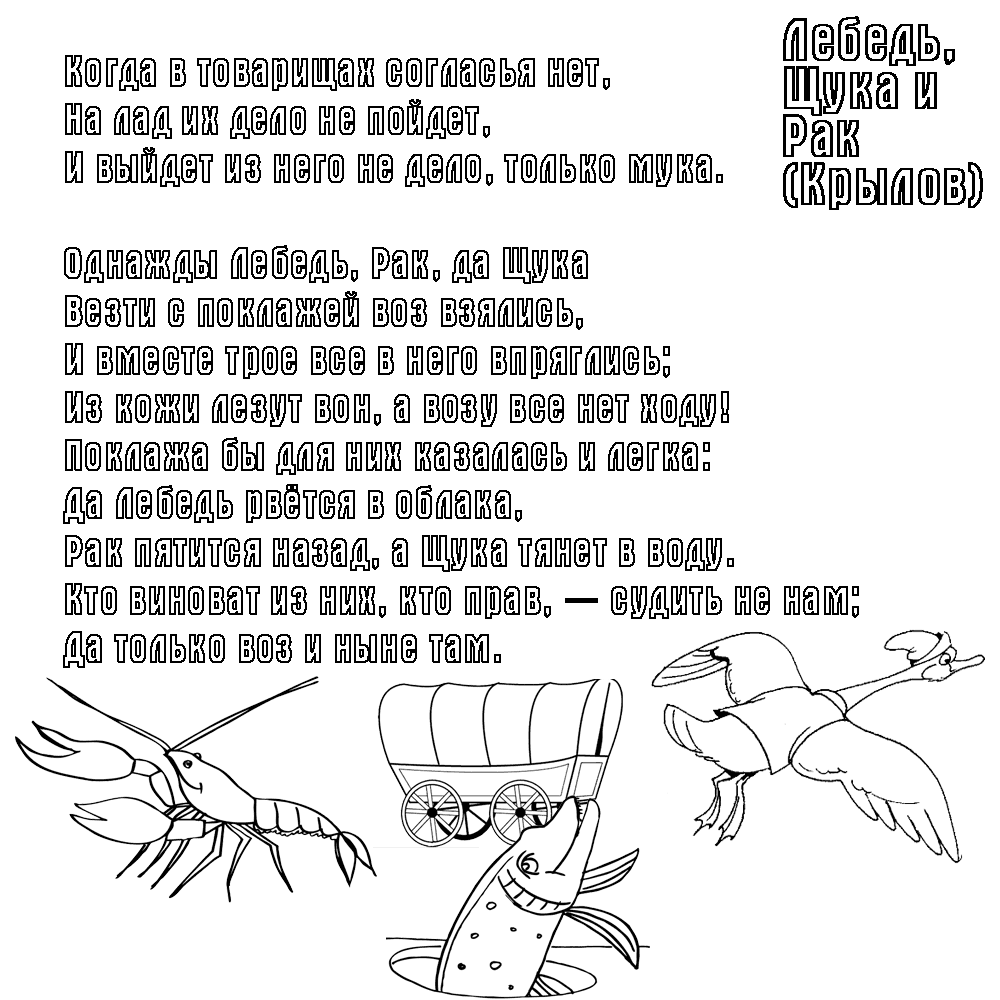 Рожденный в бедной семье, Крылов имел мало формального образования и с девяти лет начал работать клерком. Еще подростком он писал оперы, комедии и трагедии. После 1789 года он пользовался некоторым успехом как сатирический журналист, пока не вмешалась правительственная цензура. В 1805 году он начал переводить басни Жана де Лафонтена, но обнаружил, что его истинным медиумом было сочинение собственных басен. Публикация его первой книги басен в 1809 году принесла ему покровительство императорской семьи и фактически официальную синекуру-должность в СВ. Петербургская публичная библиотека, которую Крылов содержал в течение 30 лет. Он выпустил еще восемь книг басен, все написанные в стихах, и получил множество наград. На этой странице Вы можете бесплатно скачать и распечатать раскраску басни Крылова.