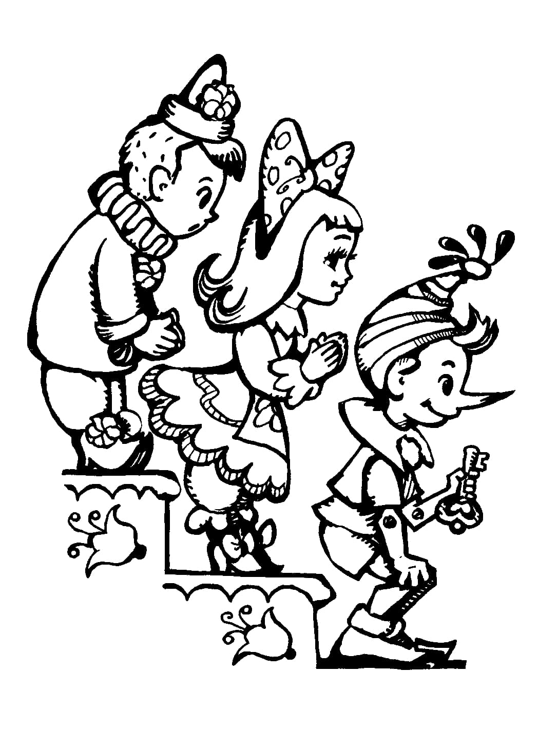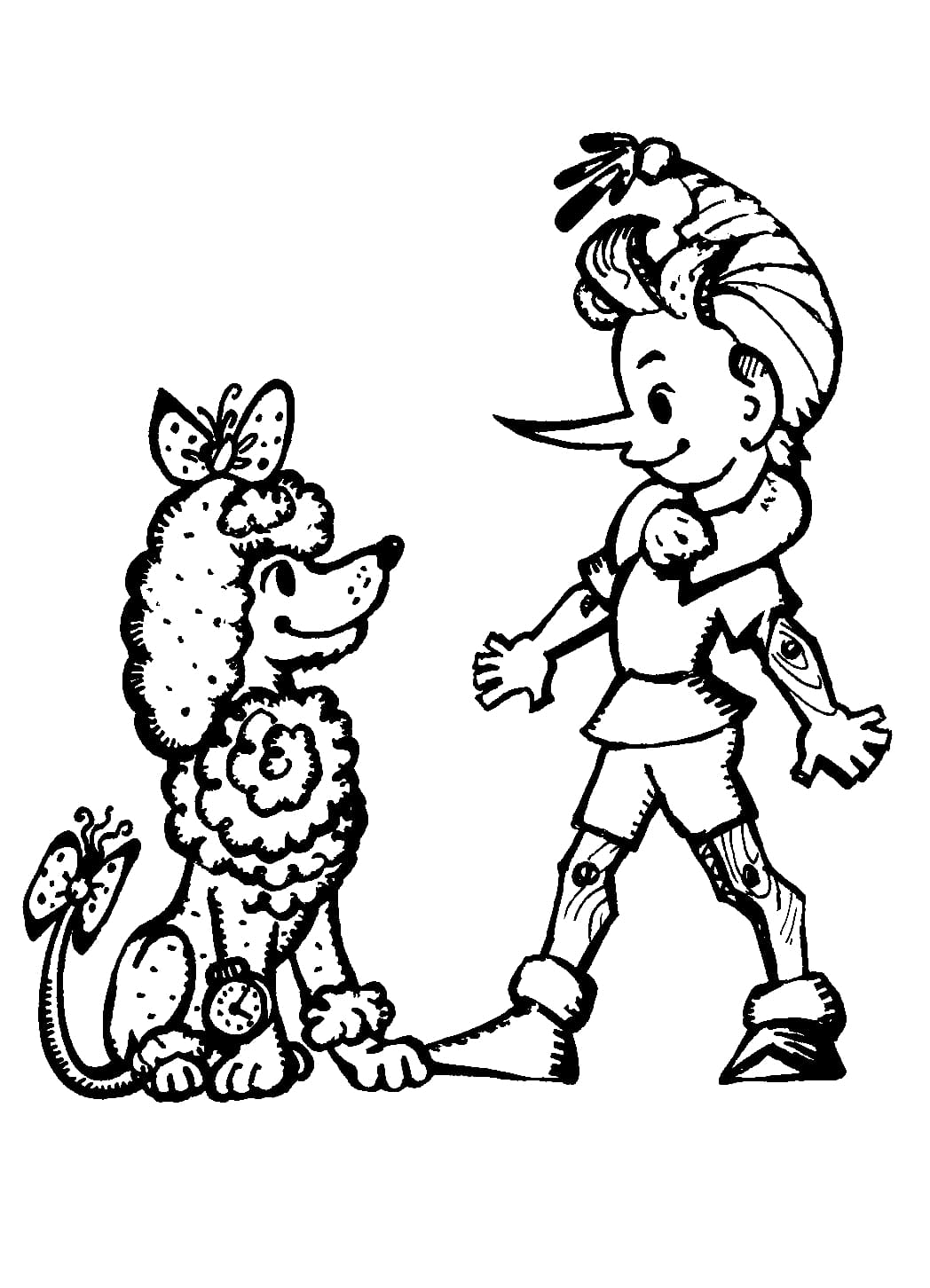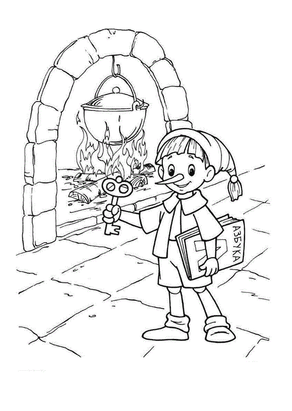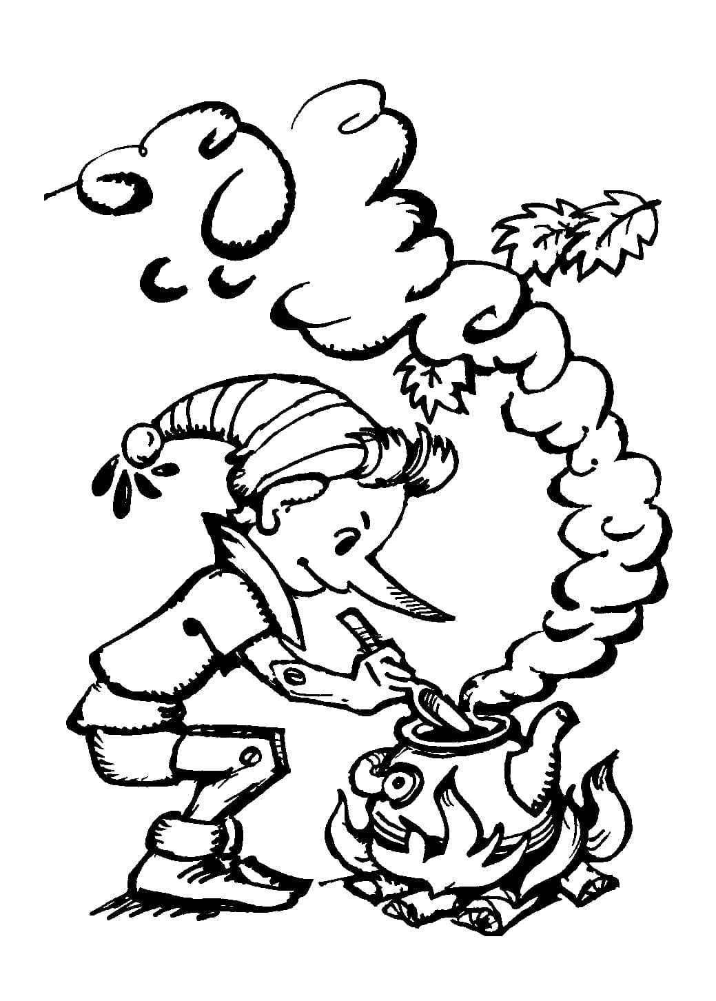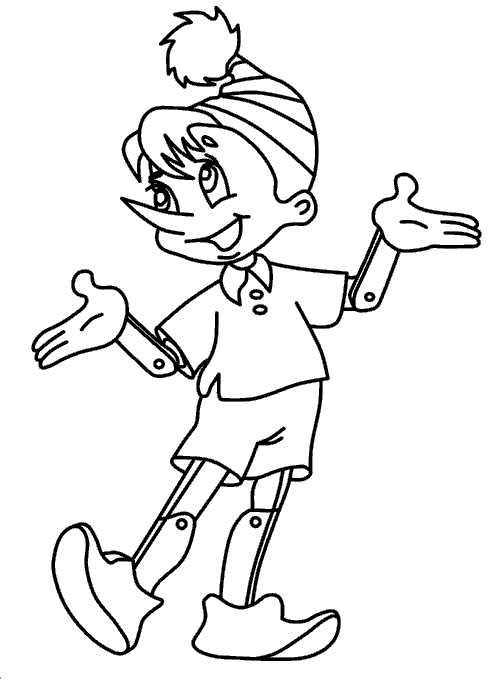 Буратино был вырезан из куска дерева старым резчиком по дереву Папой Карло. Буратино ведет себя как настоящий ребенок: он часто попадает в неприятности и часто бывает импульсивным и озорным. Когда он говорит неправду, его нос становится длиннее, а когда он говорит правду, его нос возвращается к своему нормальному размеру. Добрая Фея наконец исполняет его желание стать настоящим маленьким мальчиком после того, как он научится заботиться о своем “отце” Папет Карло. На этой странице Вы совершенно бесплатно можете скачать и распечатать раскраску Буратино в хорошем качестве.