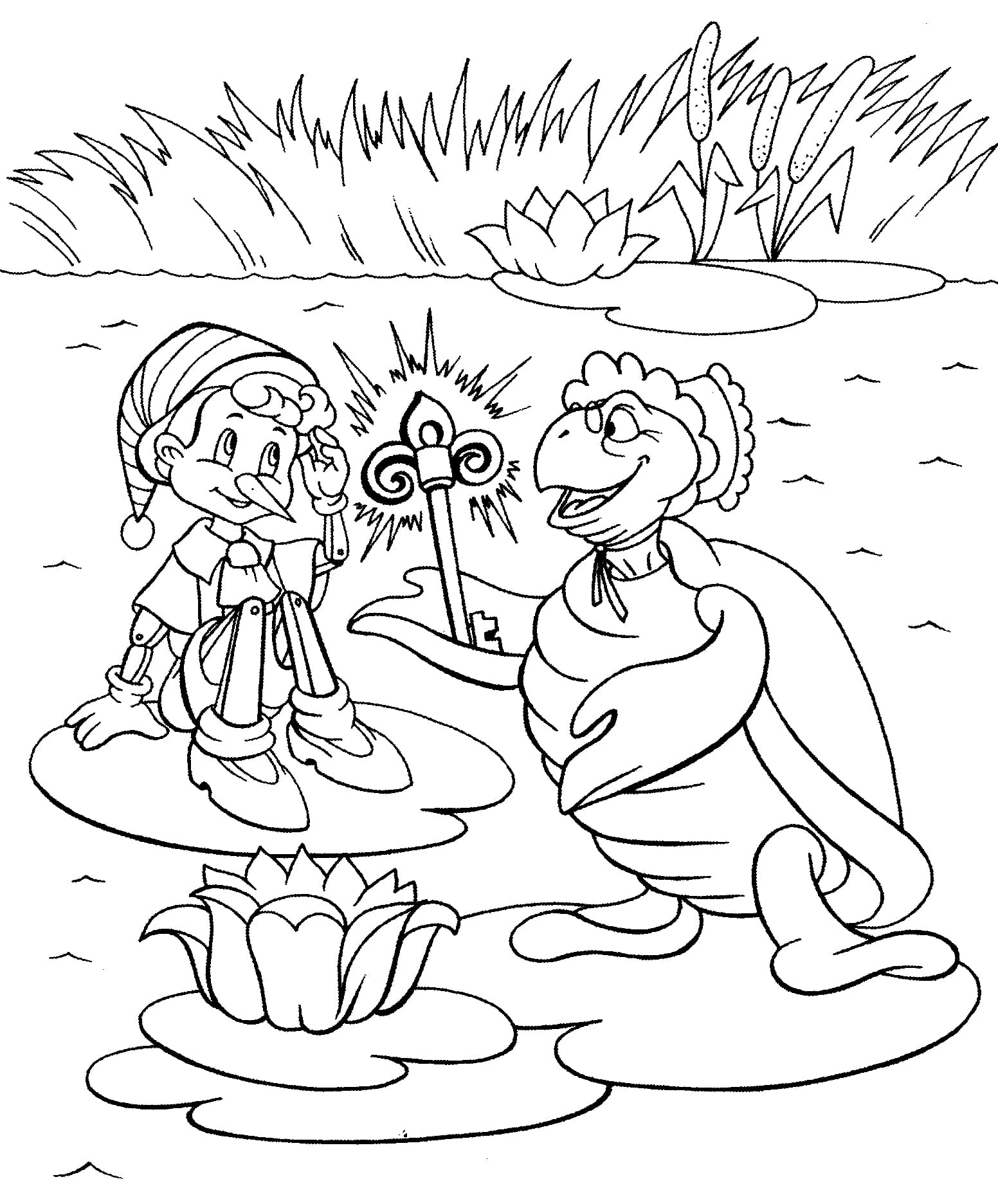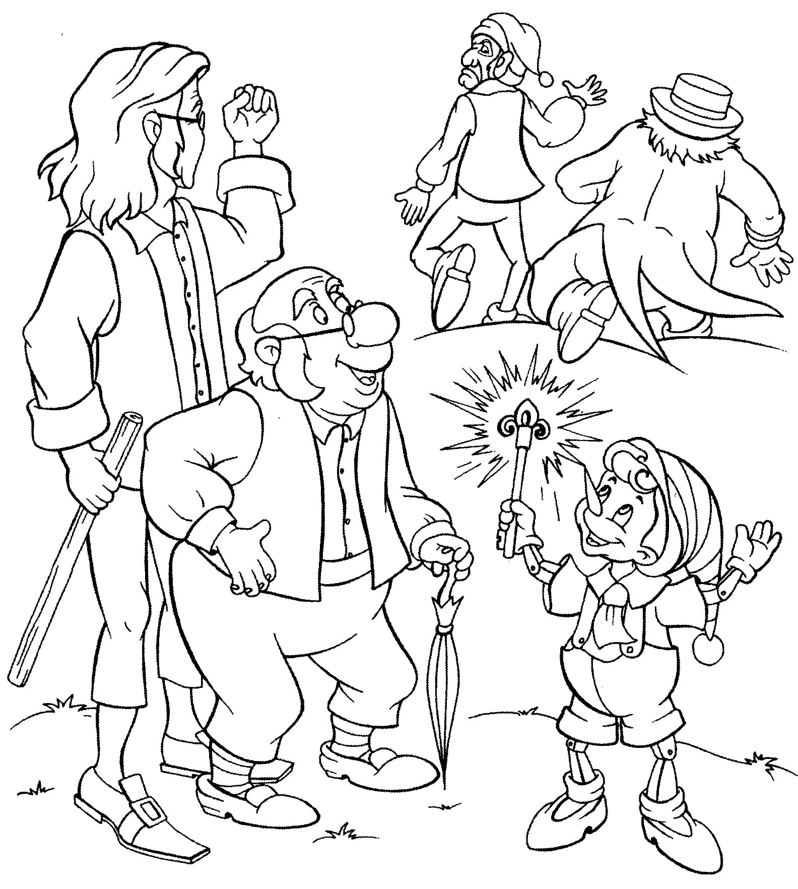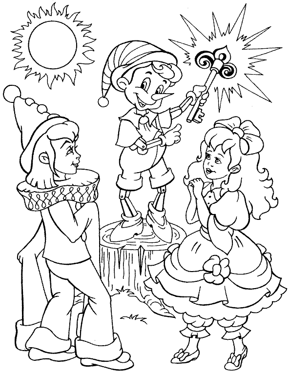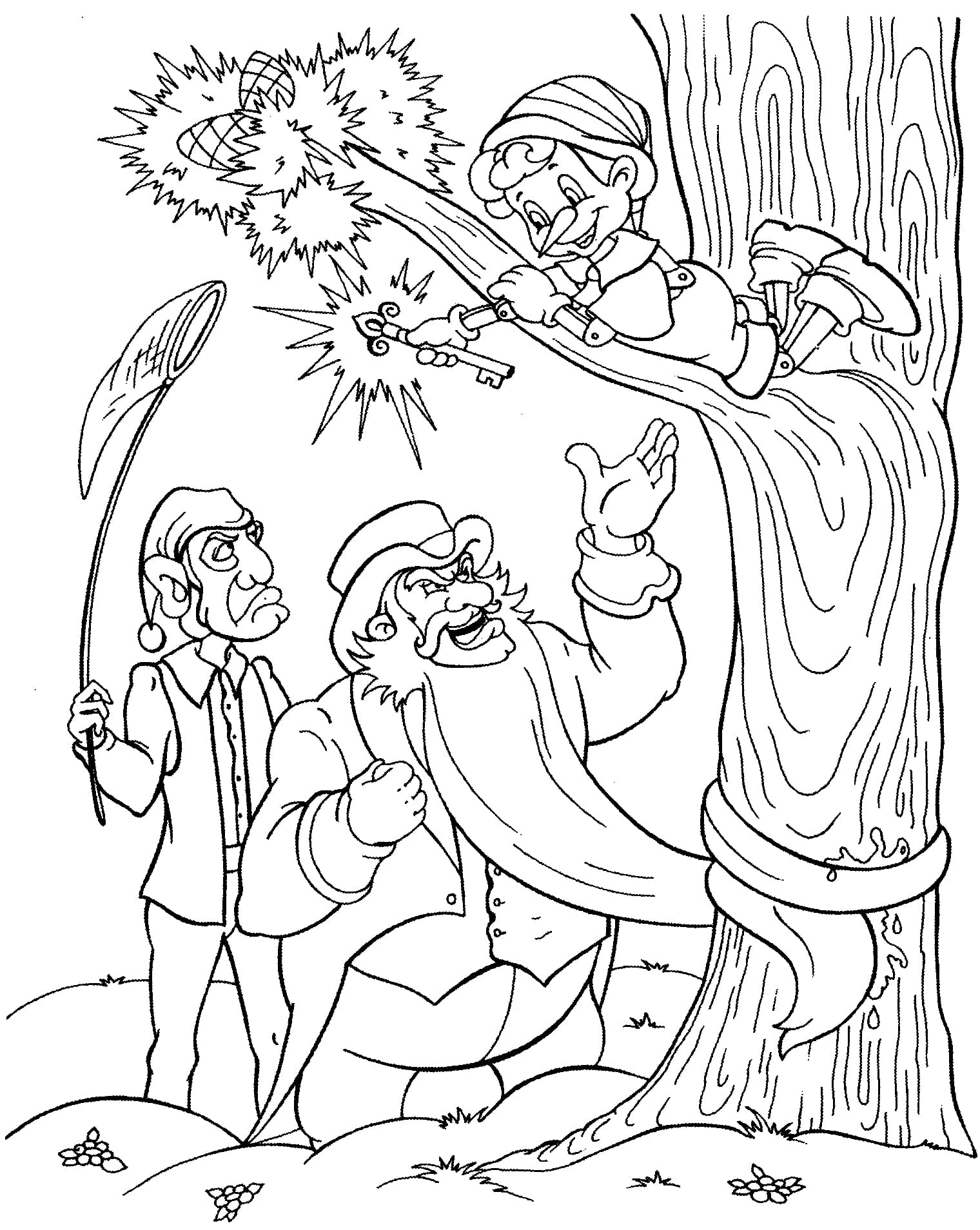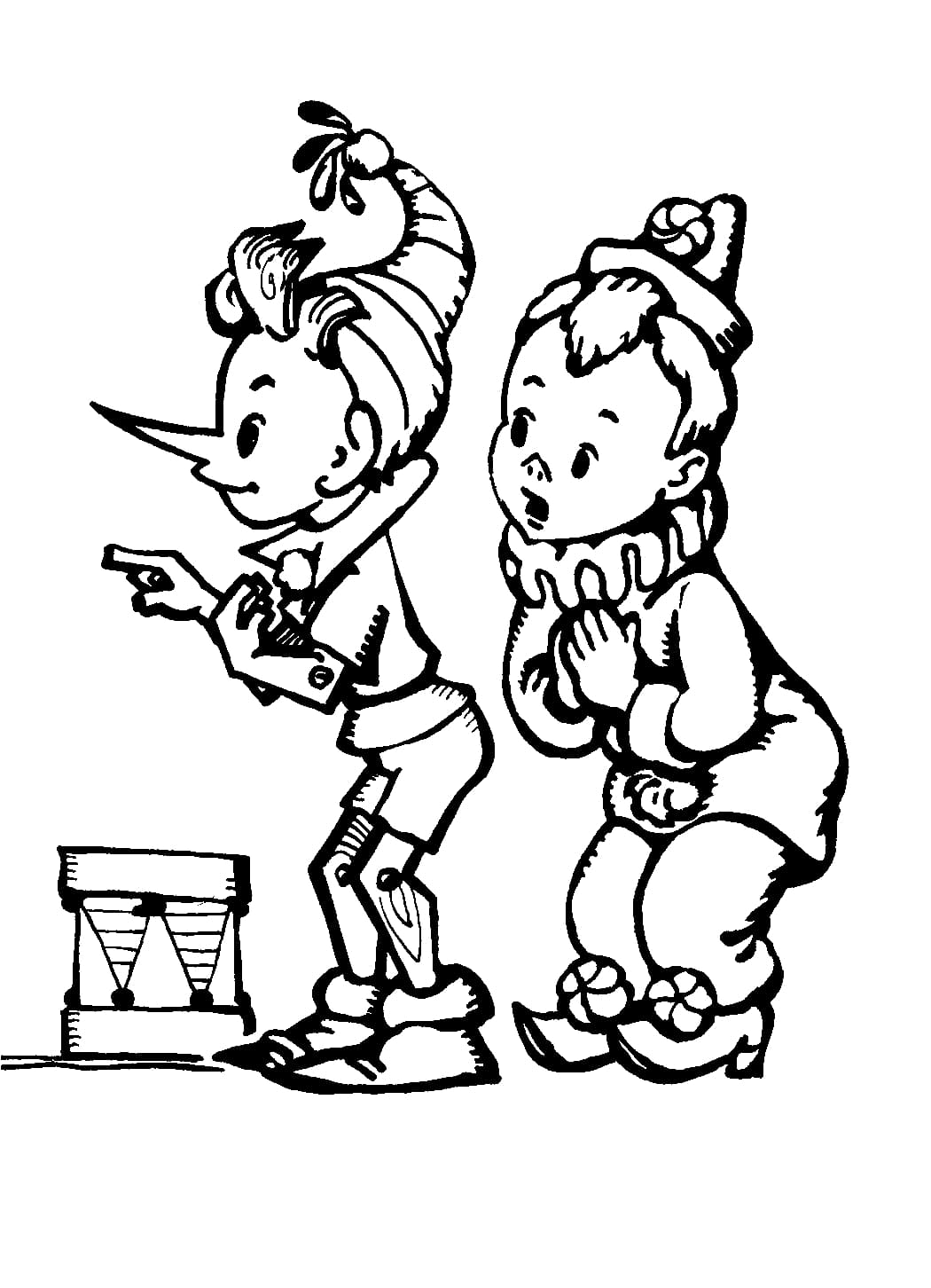 Буратино был вырезан из куска дерева старым резчиком по дереву Папой Карло. Буратино ведет себя как настоящий ребенок: он часто попадает в неприятности и часто бывает импульсивным и озорным. Когда он говорит неправду, его нос становится длиннее, а когда он говорит правду, его нос возвращается к своему нормальному размеру. Добрая Фея наконец исполняет его желание стать настоящим маленьким мальчиком после того, как он научится заботиться о своем “отце” Папет Карло. На этой странице Вы совершенно бесплатно можете скачать и распечатать раскраску Буратино в хорошем качестве.