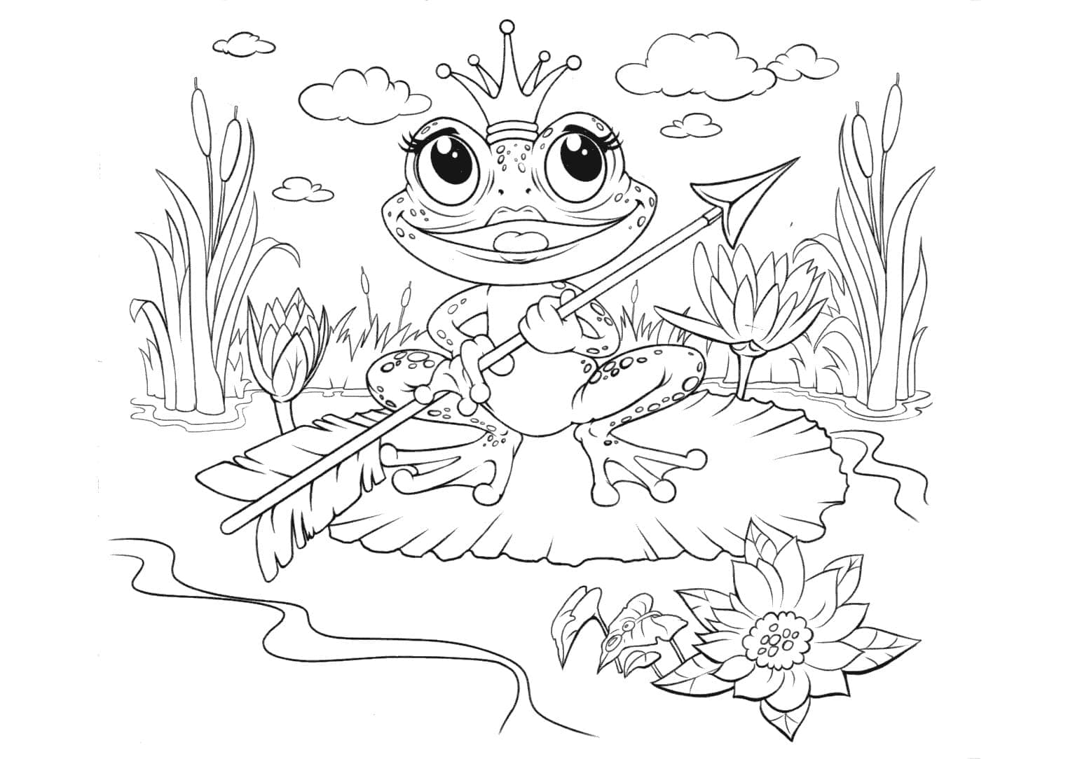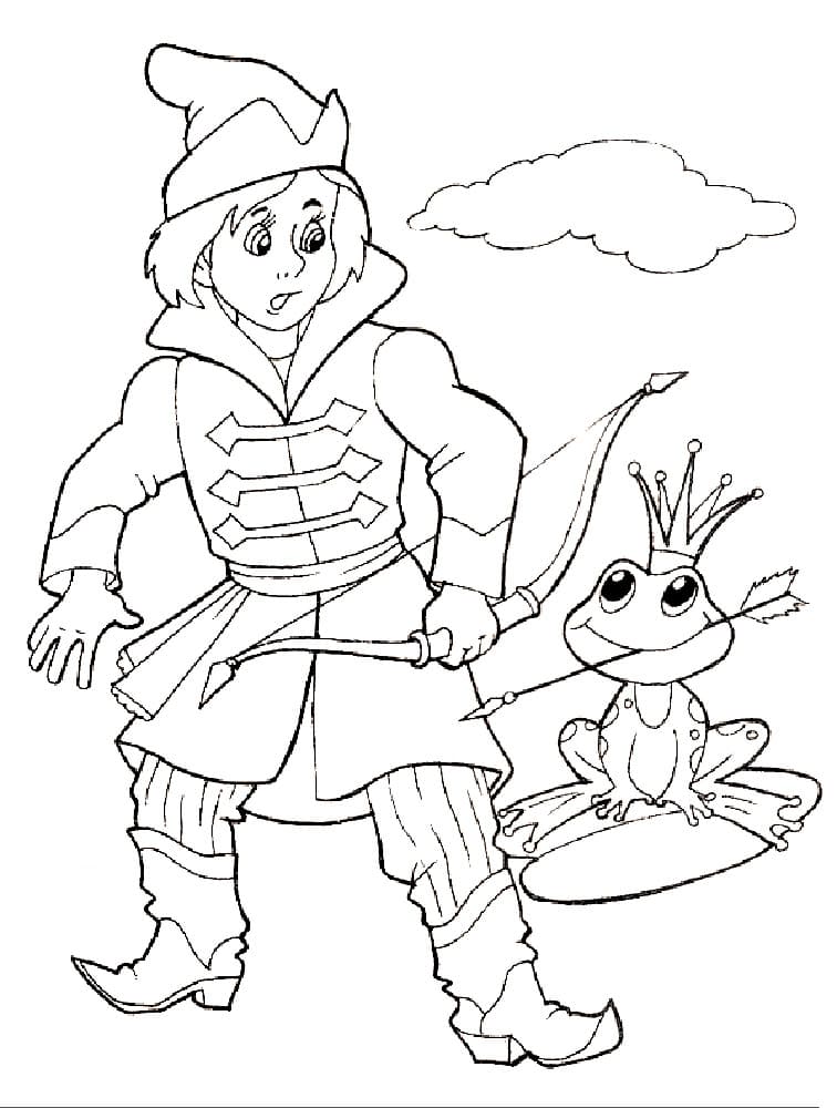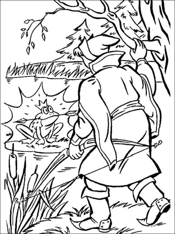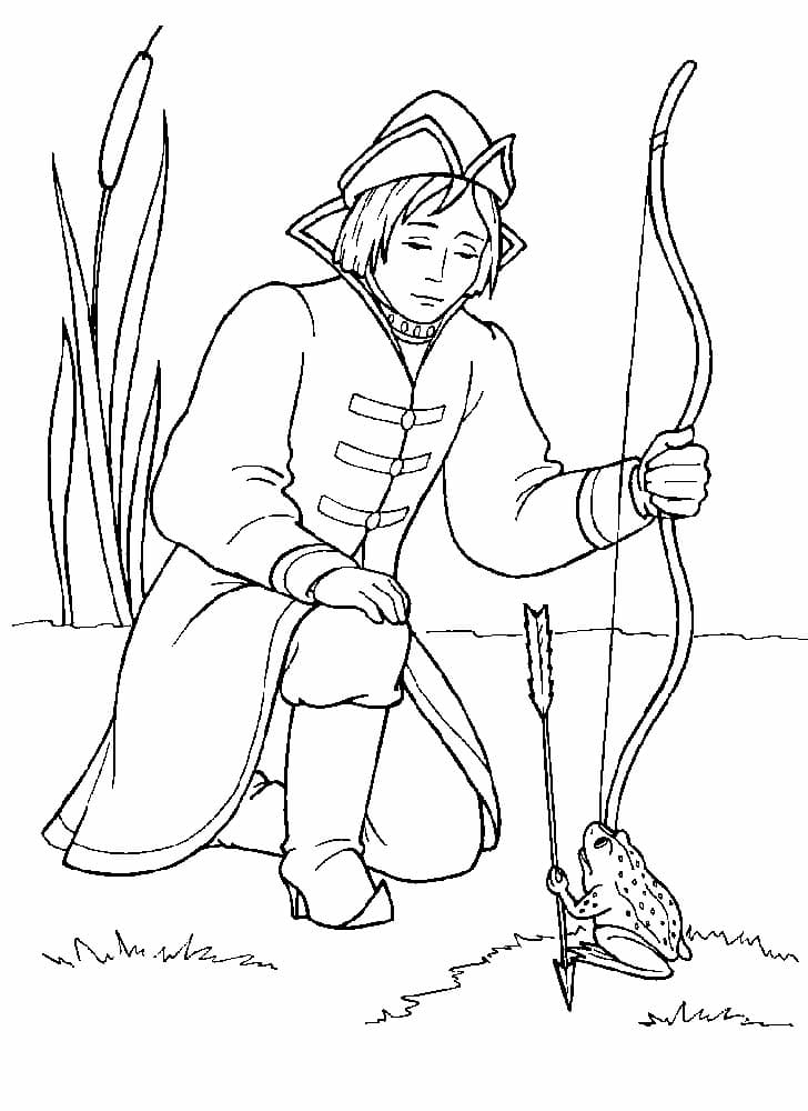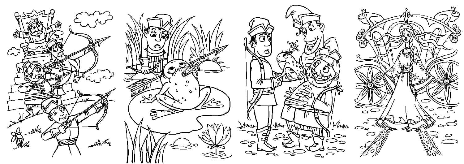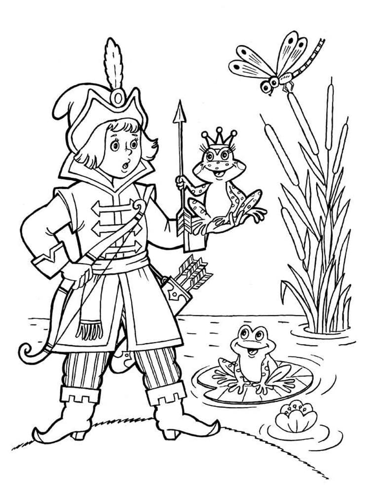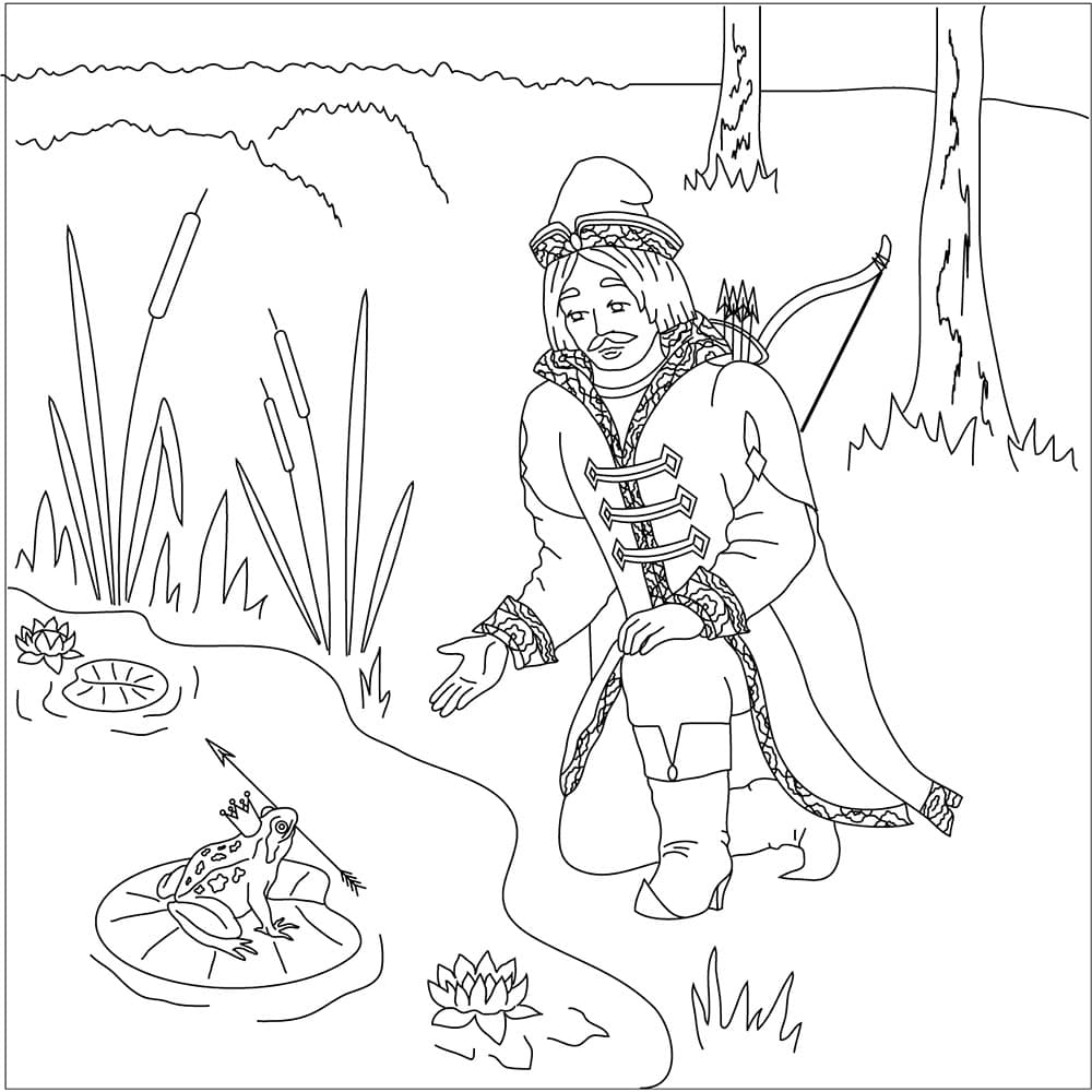 Король (или старая крестьянка, по версии Ланга) хочет, чтобы его три сына женились. Для достижения этой цели он создает тест, чтобы помочь им найти невест. Король велит каждому принцу выпустить стрелу. Согласно правилам короля, каждый принц найдет свою невесту там, где упадет стрела. Стрела младшего сына подхватывается лягушкой. Король поручает своим трем будущим невесткам различные задания, такие как прядение ткани и выпечка хлеба. В каждой задаче лягушка намного превосходит двух других ленивых будущих невест. В некоторых версиях лягушка использует магию для выполнения задач, и хотя другие невесты пытаются подражать лягушке, они не могут выполнять магию. И все же юный принц стыдится своей лягушачьей невесты, пока она волшебным образом не превращается в человеческую принцессу. На этой странице Вы можете бесплатно скачать и распечатать раскраску царевна лягушка.