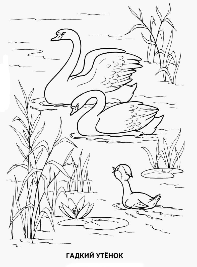 Гадкий утенок-это сказка в которой рассказывается о маленьком лебеде, который родился среди утят. В детстве все его считали непривлекательным утенком, так как он отличался от своих сверстников и никто не знал что он лебедь. Гадкого утенка все дразнили и оскорбляли, но когда он вырос, все увидели что это красивый и большой лебедь, а не гадкий утенок. С тех пор все начали им восхищаться, а красивый лебедь нашел свою стаю. Эта сказка учит детей быть добрыми и не обижать своих сверстников, даже если они чем-то отличаются внешне. На нашем сайте Вы можете абсолютно бесплатно скачать и распечатать раскраску гадкий утенок в хорошем качестве.