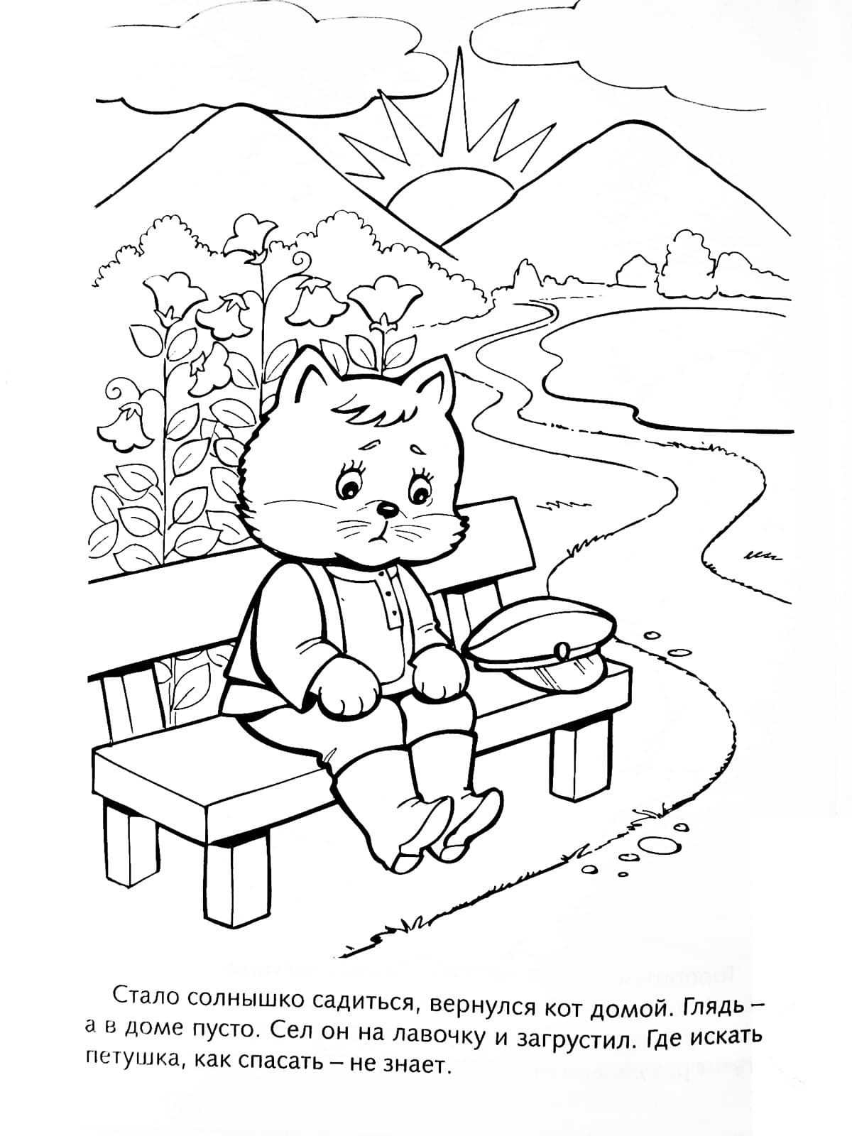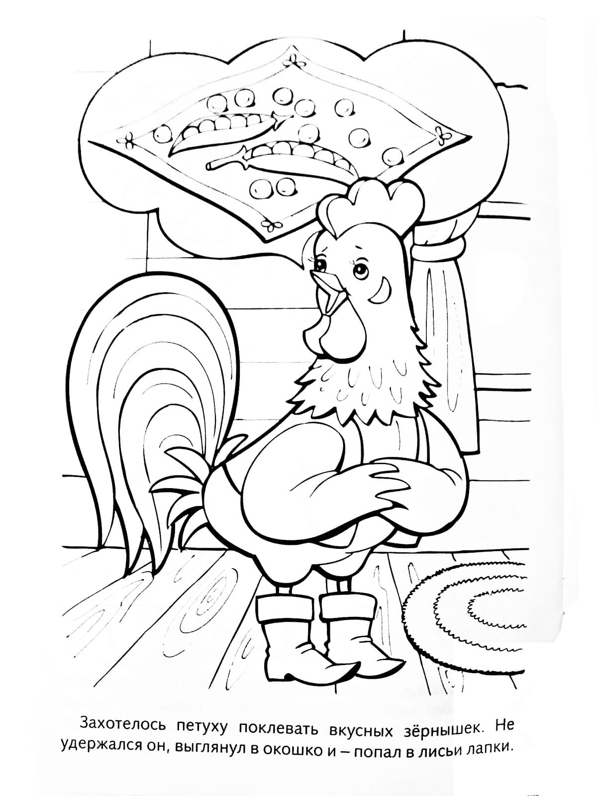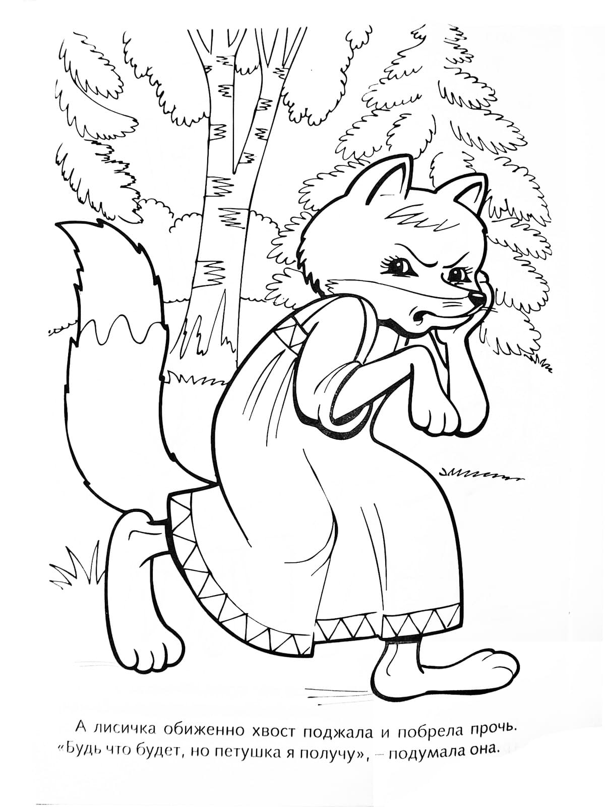 В этой сказке рассказывается о хитрой лисе и мудром коте, который спас петушка. Сказка учит детей дружбе и тому, что необходимо помогать другим в трудную минуту. На этой странице Вы можете найти раскраски Кота, Петуха и Лисы в разных вариациях. Например такие как: лиса убегает с петухом в лапах, добрый кот обнимает петуха, лисичка стучится в окошко к петуху и как кот спасает своего верного друга петуха. На нашем сайте Вы можете совершенно бесплатно скачать и распечатать раскраску кот, петух и лисица в хорошем качестве. Так же на каждой картинке есть текст самой сказки, поэтому скачав все раскраски у вас получится своя книжка.