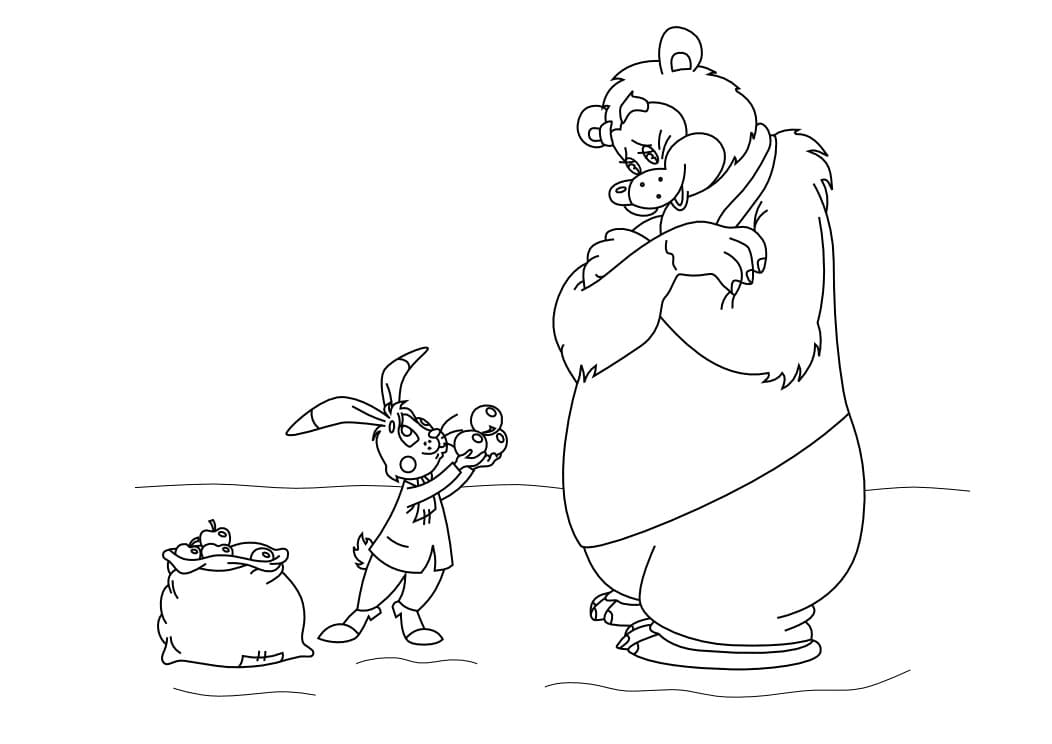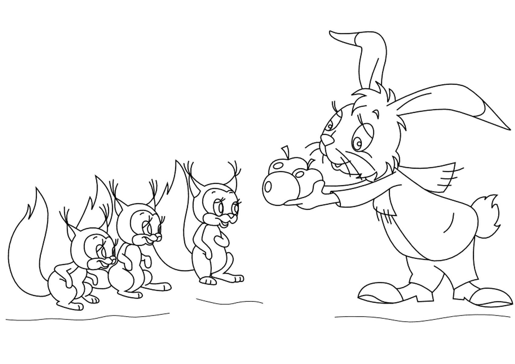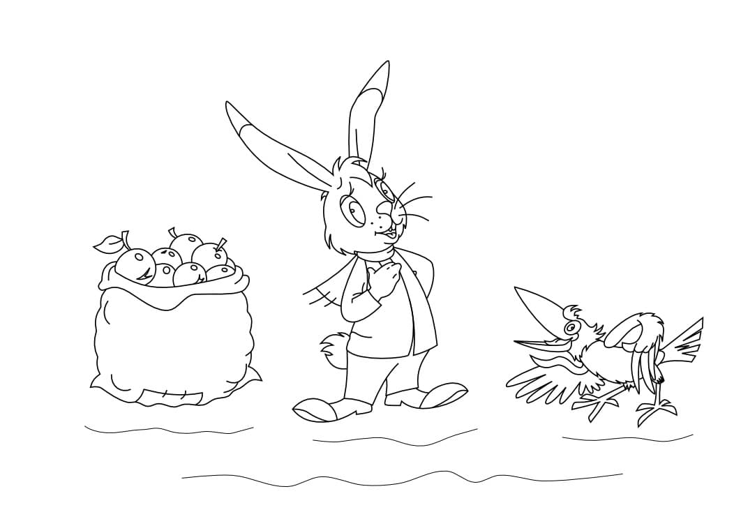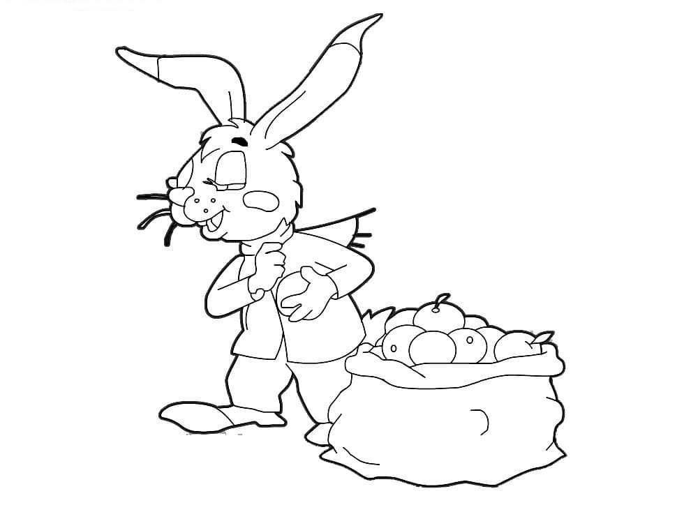 Мешок яблок - очень интересная сказка о храбром и добром зайце, который отправился собирать яблоки для своих зайчат и попал в неприятности. На пути зайчик поделился яблоками с лесными обитателями: медвежатами, ежиками и чуть не был съеден злым волком. Но к сожалению его мешок порвался и домой он возвращается без яблок. Добрые животные, с которыми он делился яблоками принесли к нему в дом свои гостинцы, поэтому зайчата смогли досыта покушать. На нашем сайте Вы совершенно бесплатно можете скачать и распечатать раскраску мешок яблок в хорошем качестве.