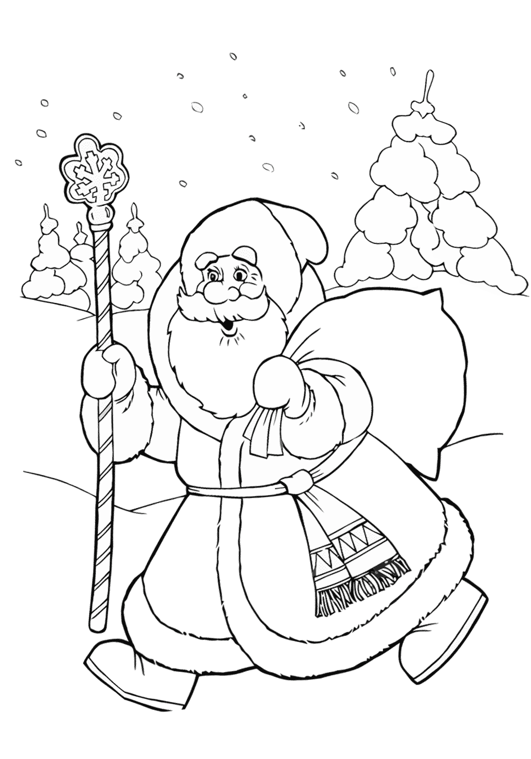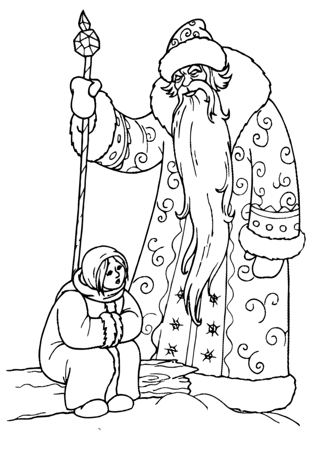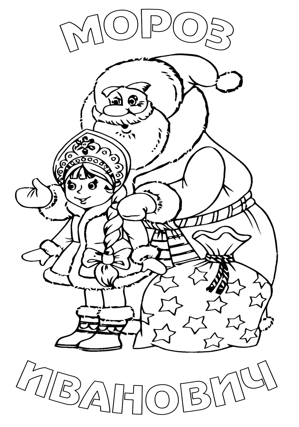 Мороз Иванович - так часто называют известного всем деда мороза. Он может воплотить Ваши мечты в реальность и положить под елку так давно желанный подарок. Дед мороз обычно разносит подарки на новый год или рождество тем детям, кто себя в течении года вел хорошо. Сопровождает деда мороза его внучка снегурка, а летают они на санях, в которые запряжены олени. На нашем сайте Вы абсолютно бесплатно можете скачать и распечатать раскраску Мороз Иванович в хорошем качестве, дети очень любят дедушку мороза.