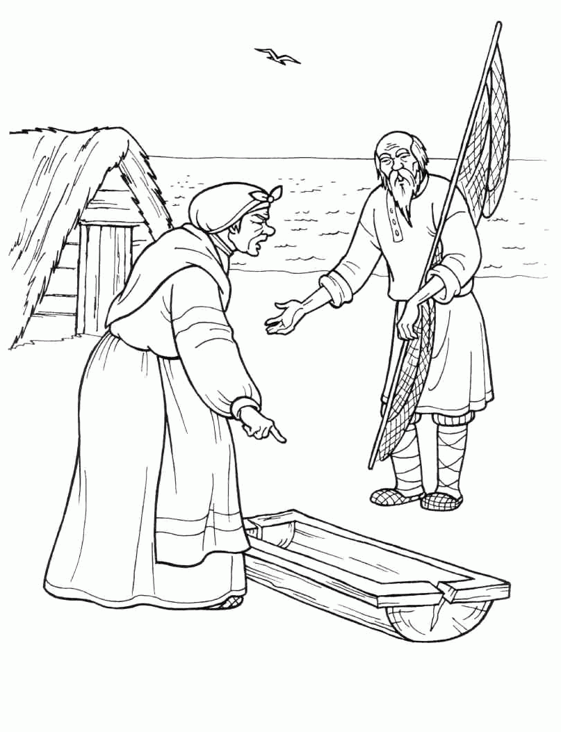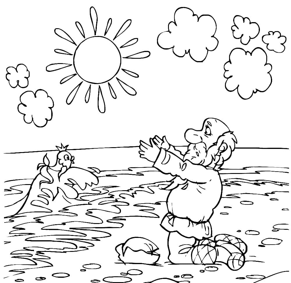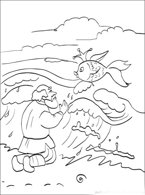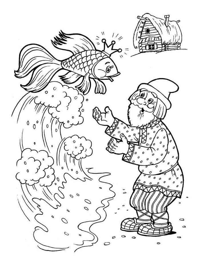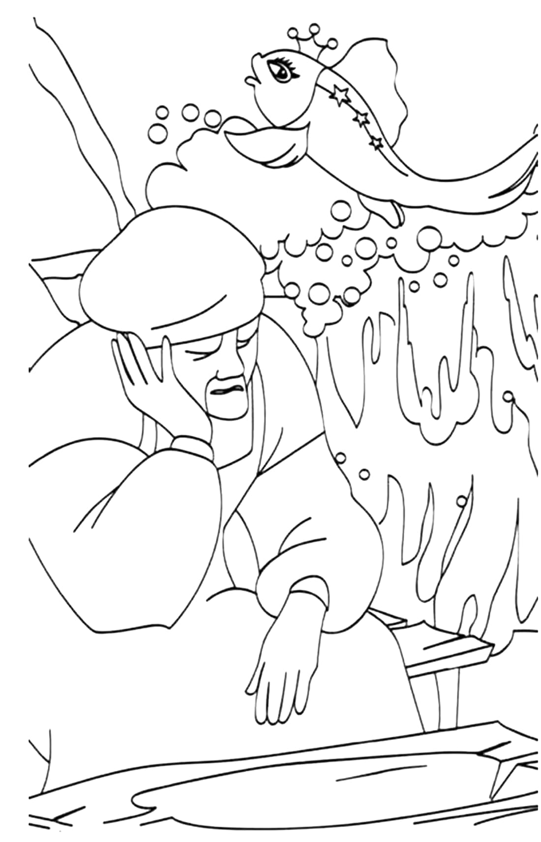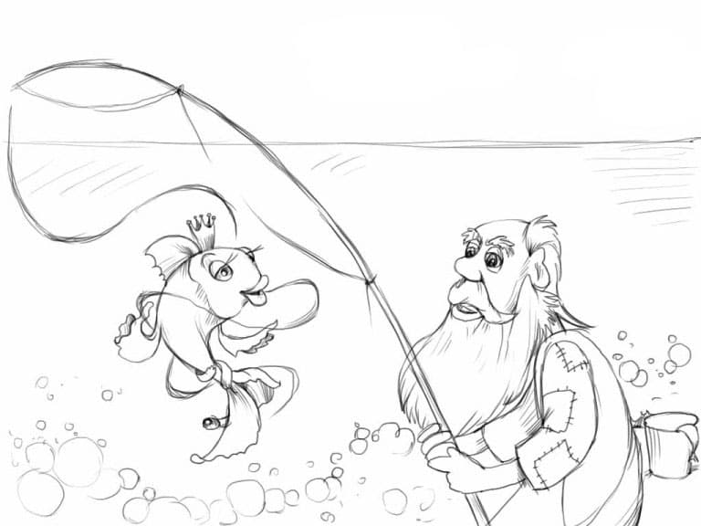 В сказке о рыбаке и рыбке рассказывается о старике, который благодаря неводу смог достать непростую рыбку из воды. Эта рыба была золотой и она могла исполнять желания, но все желания старик отдал старухе. Старуха требовала выполнять одно желание за другим, хотела все больше и больше, в итоге рыбка решила её наказать и оставила старуху у разбитого корыта. Сказка показывает к чему может привести человеческая жадность. На нашем сайте Вы можете совершенно бесплатно скачать и распечатать раскраску о рыбаке и рыбке в хорошем качестве. Такие раскраски подойдут как детям, так и подросткам.